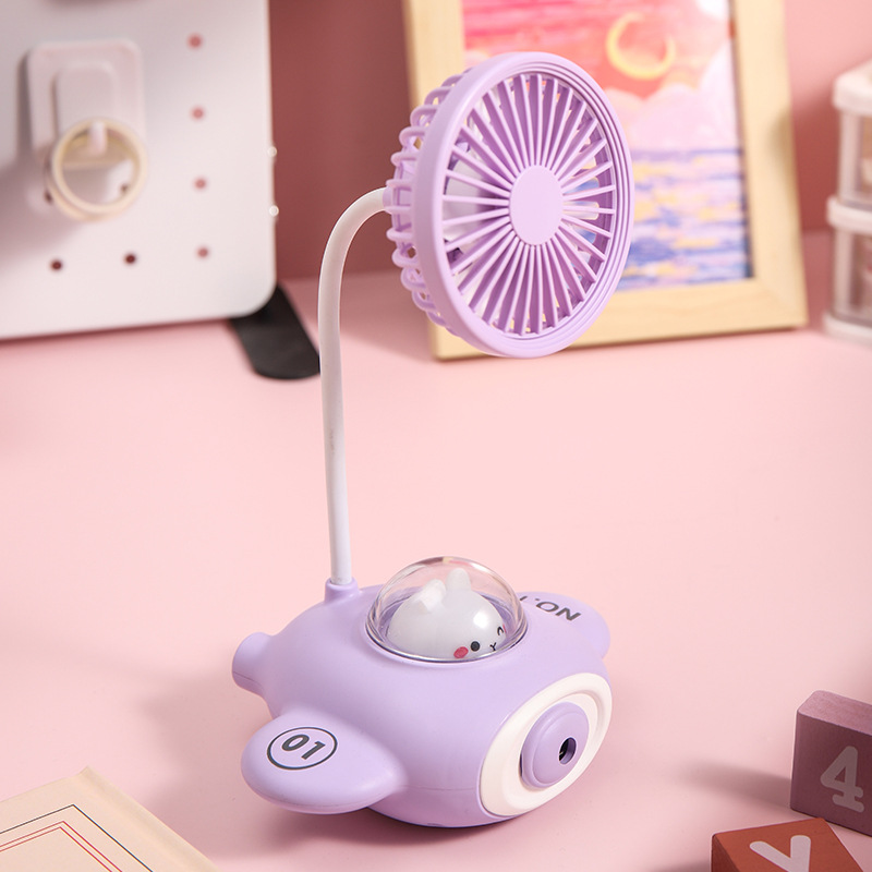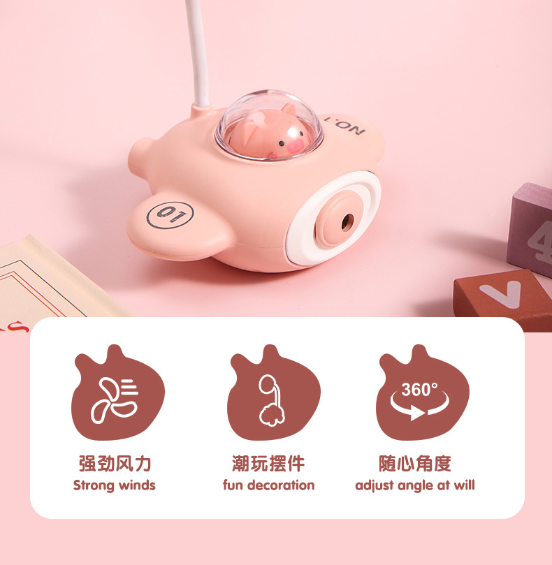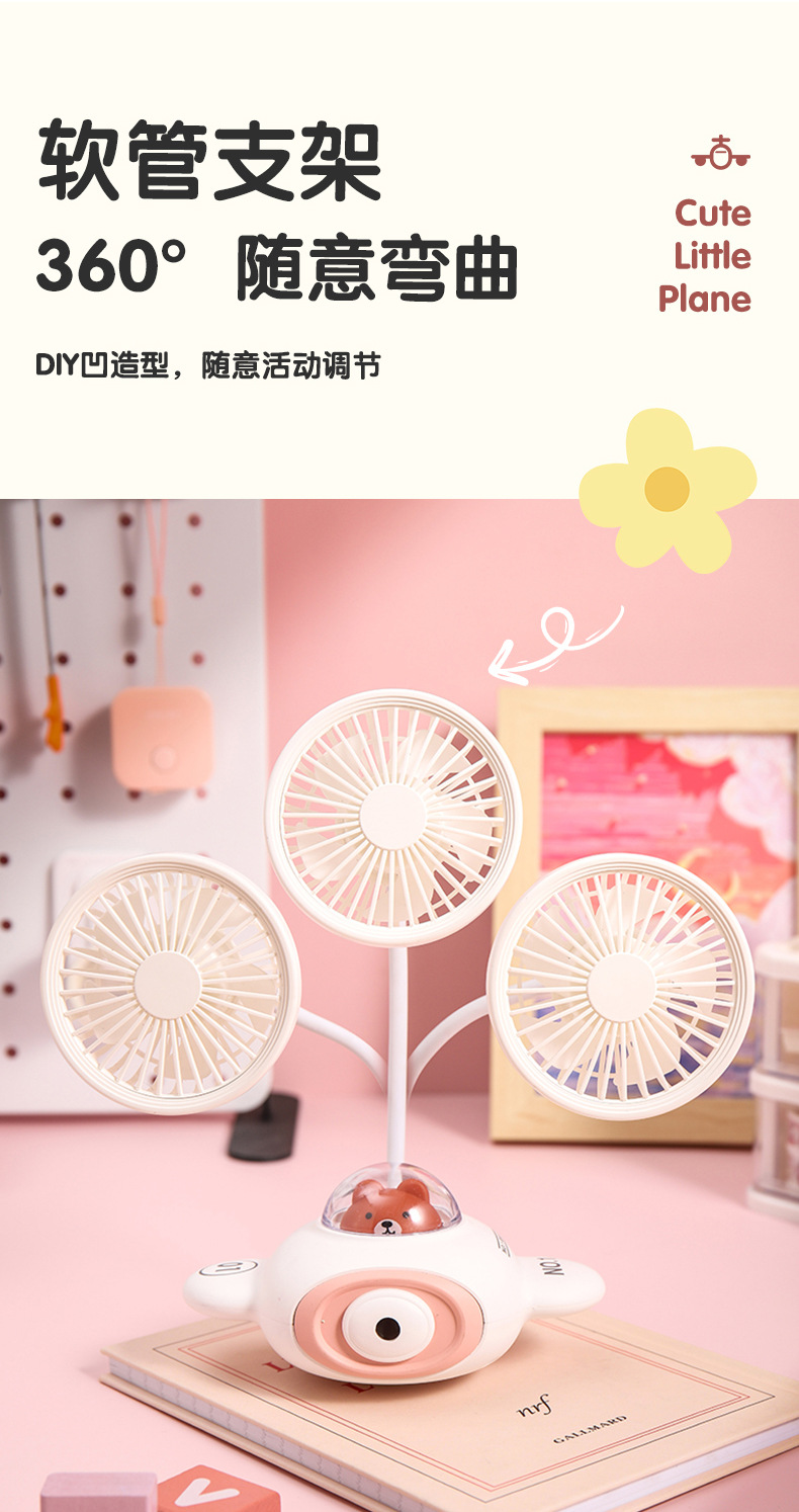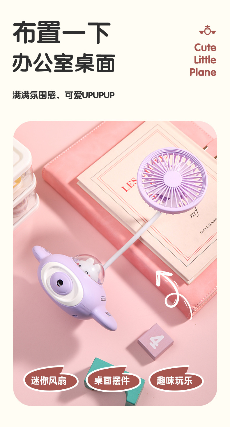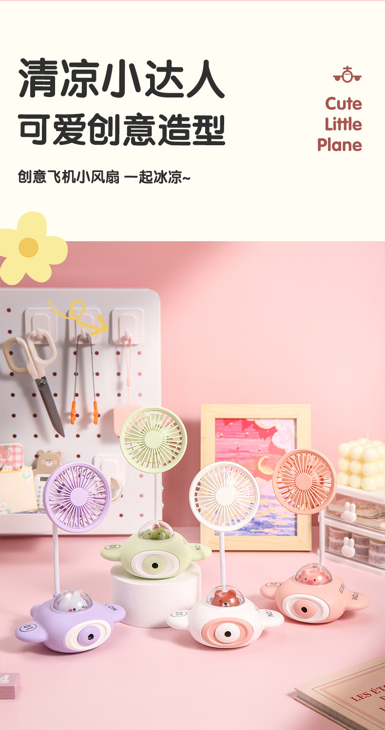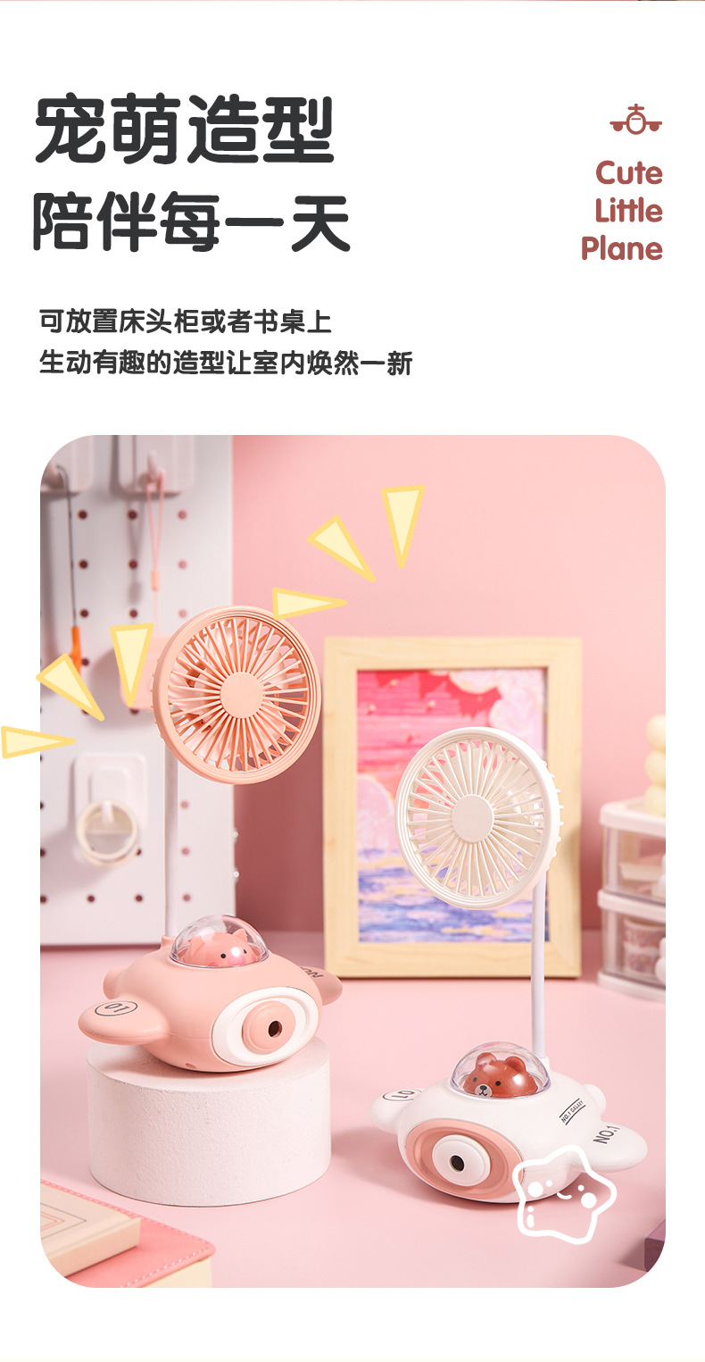 跨境多功能桌面小风扇儿童萌宠小飞机带氛围灯usb充电迷你电风扇