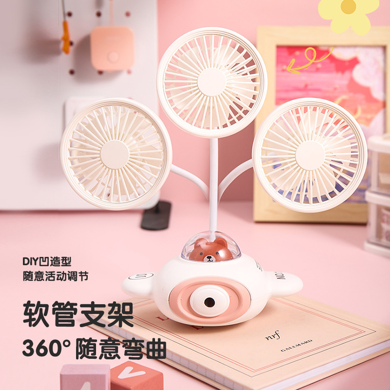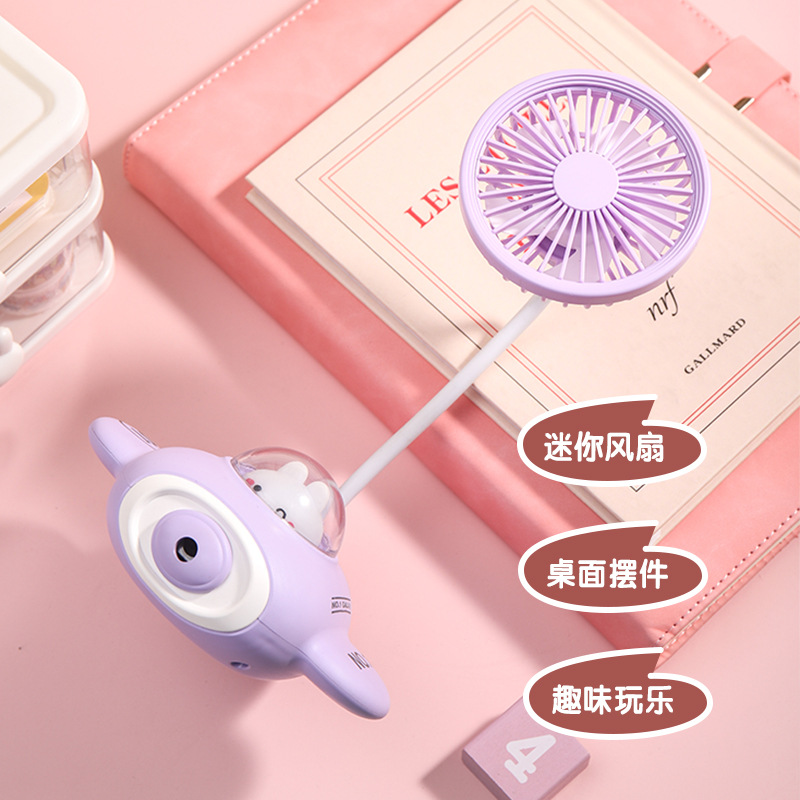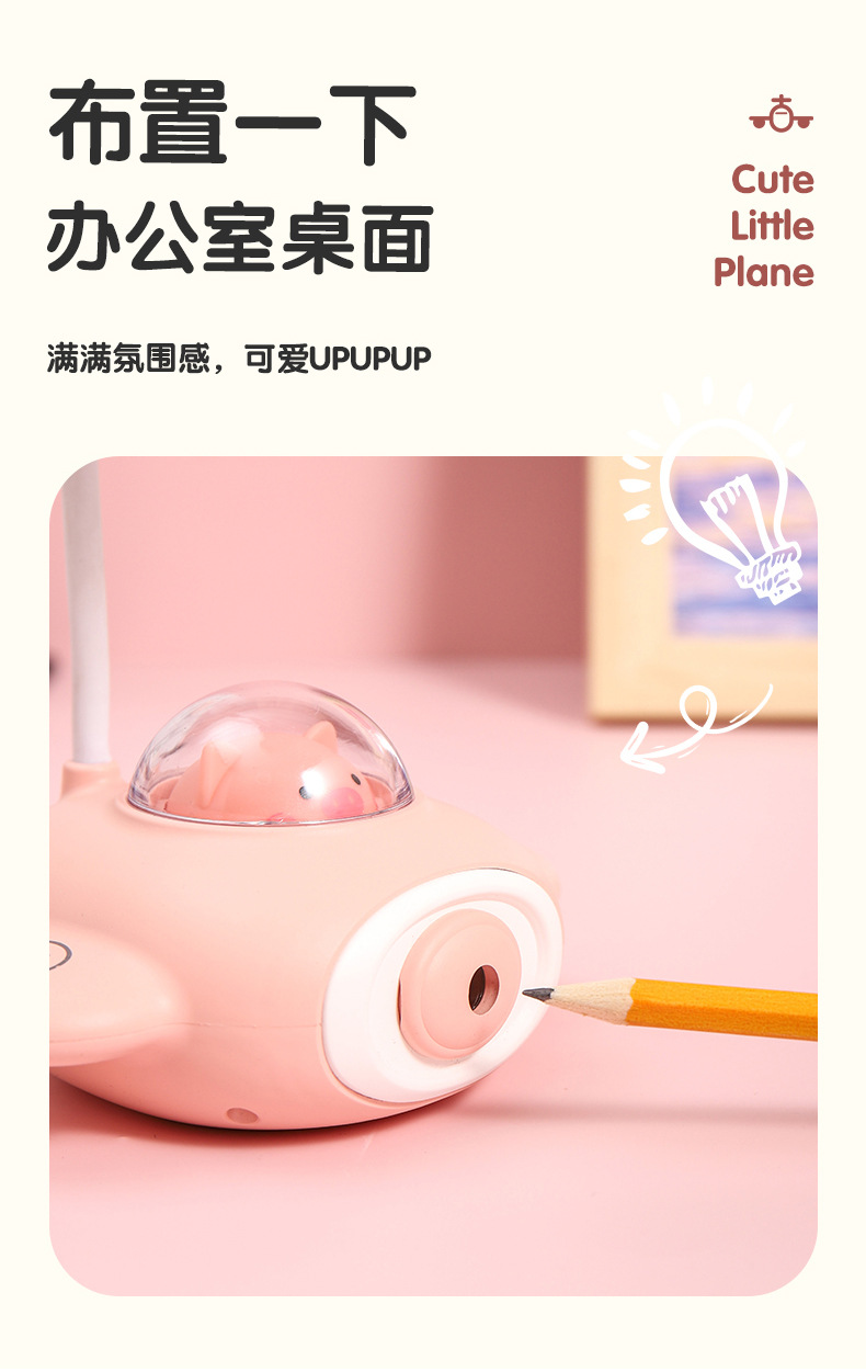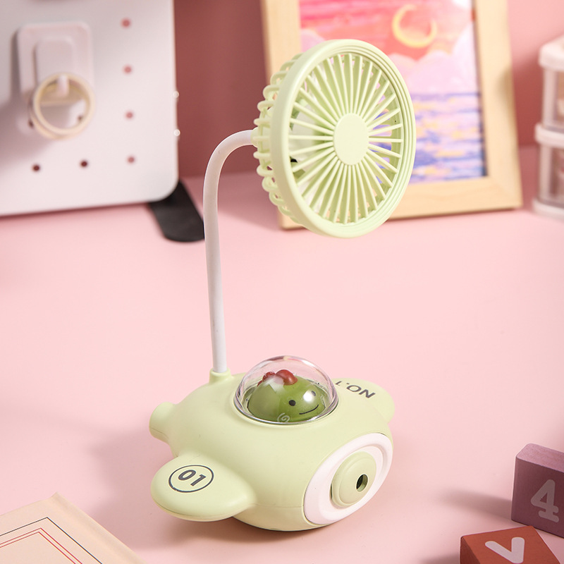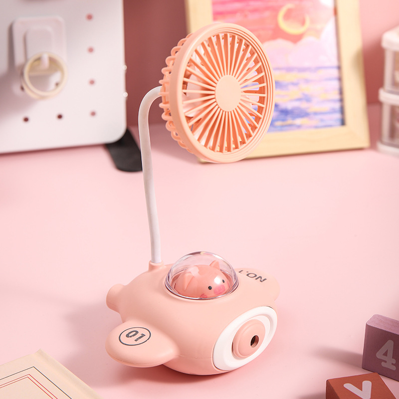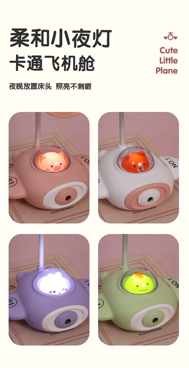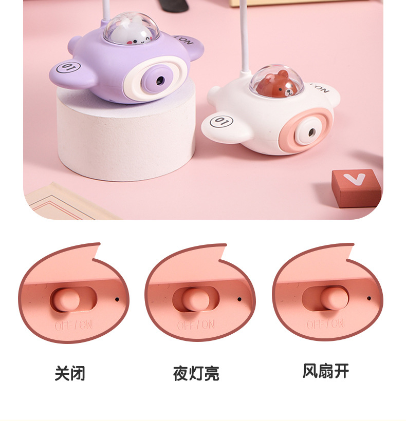 跨境多功能桌面小风扇儿童萌宠小飞机带氛围灯usb充电迷你电风扇