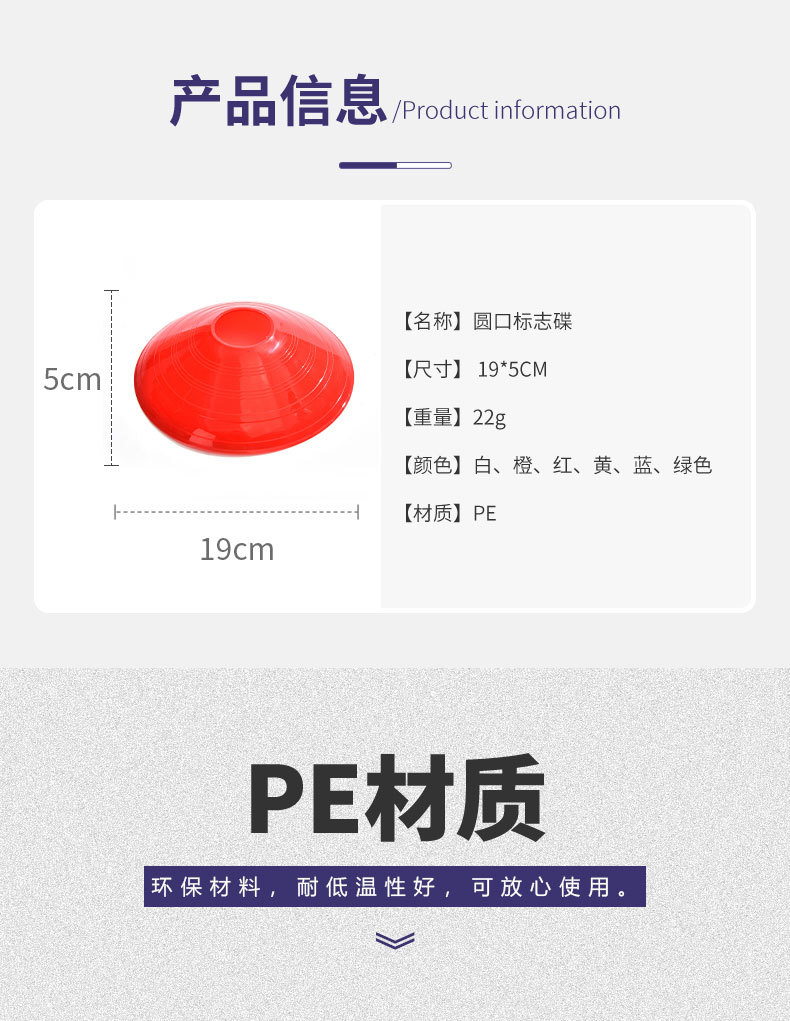 足球训练圆口标志碟足球训练装备标志盘彩色绕桩足球锥工厂直发