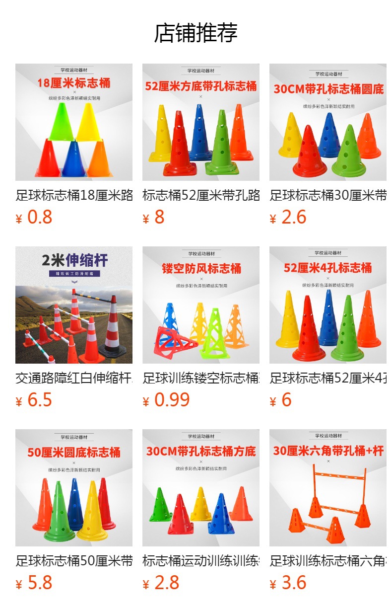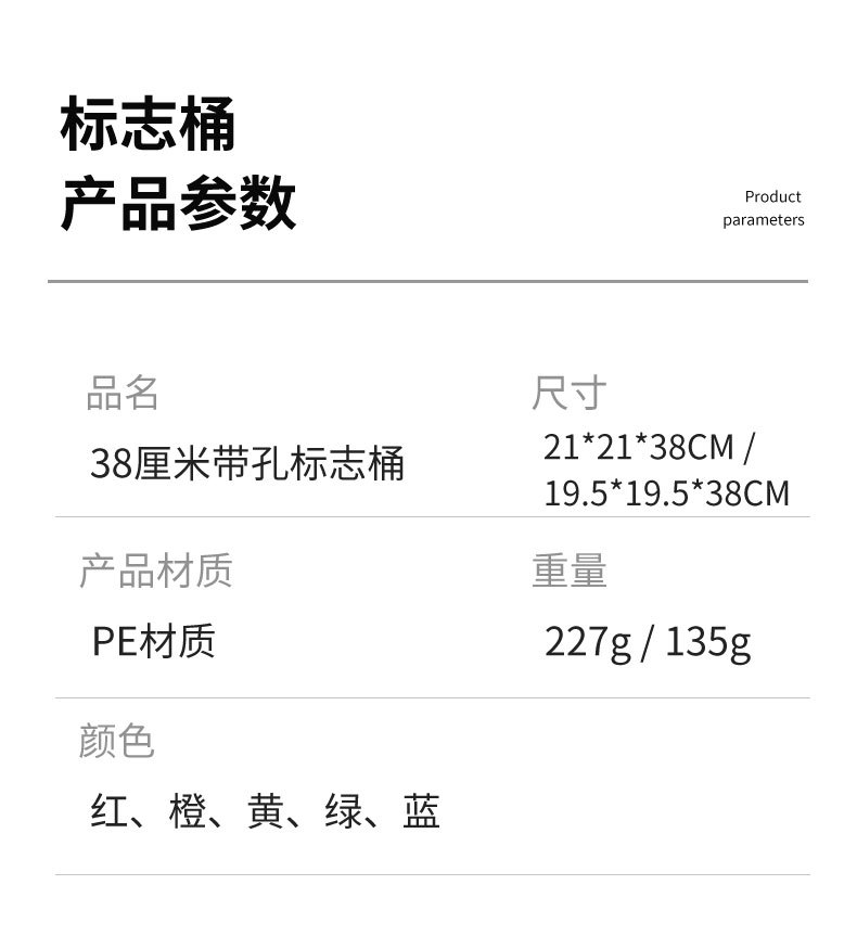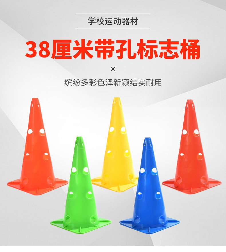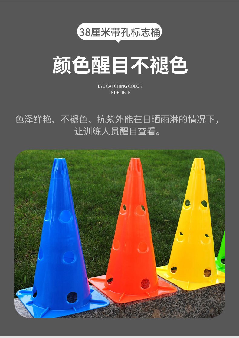足球训练标志桶38厘米方底带孔标志桶体能训练障碍桶彩色多功能桶