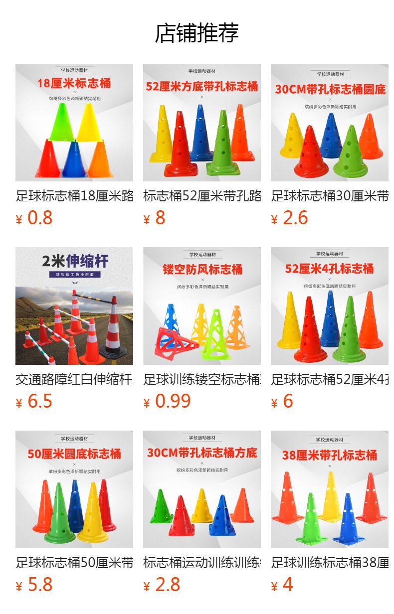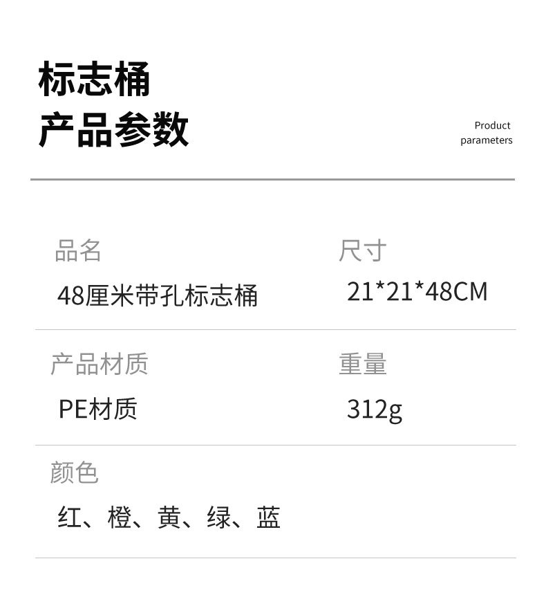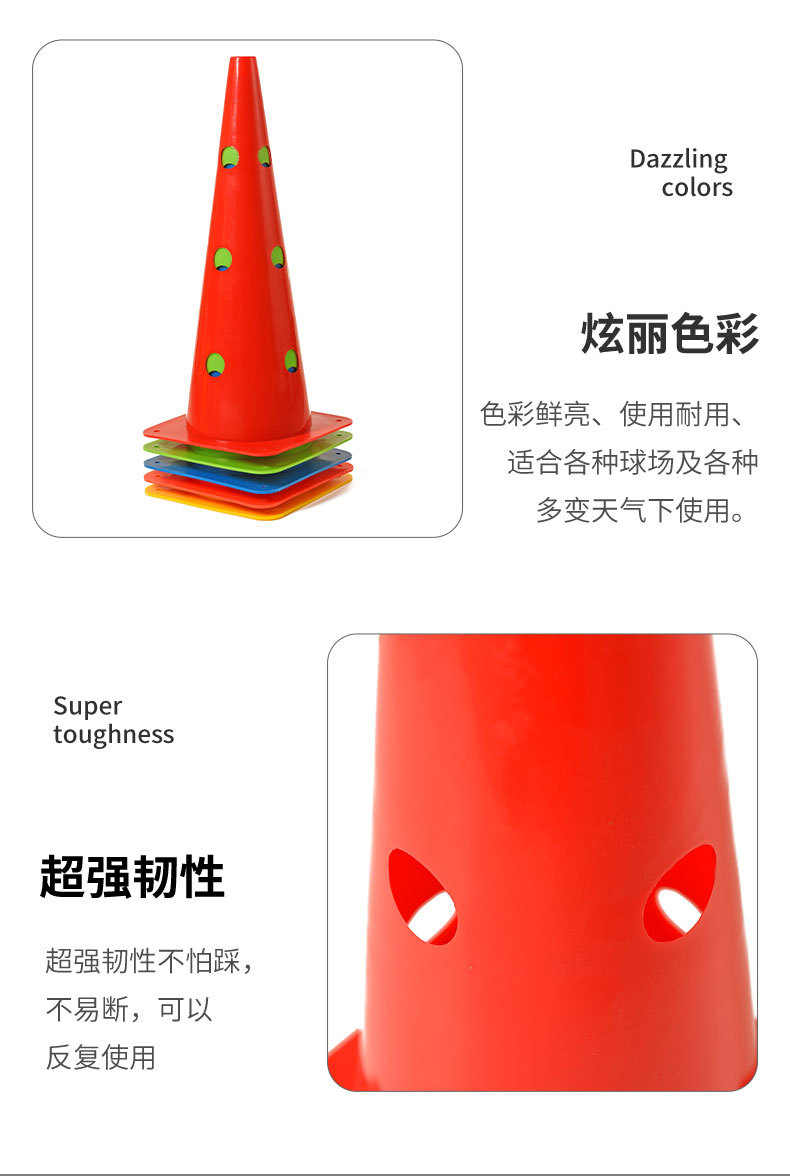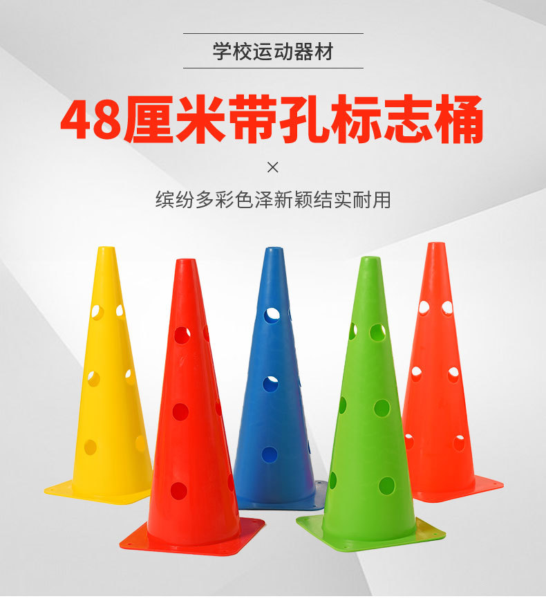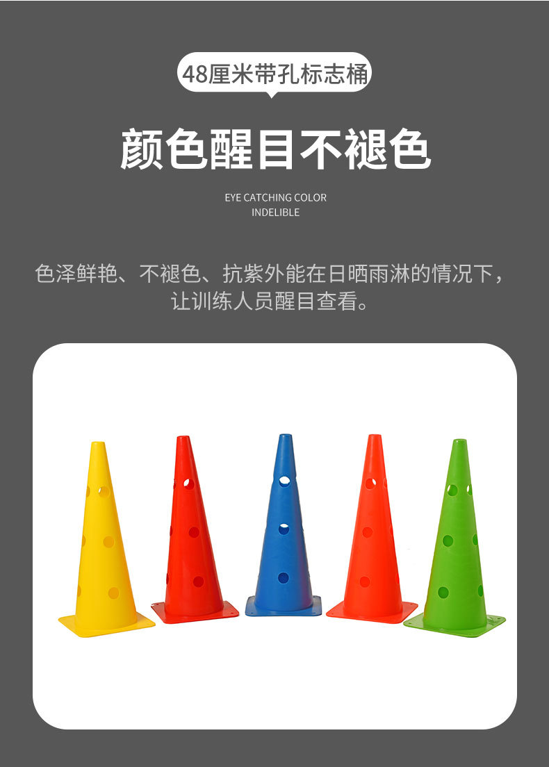 足球训练标志桶带孔方底标志桶48厘米防风障碍桶彩色体能标志锥
