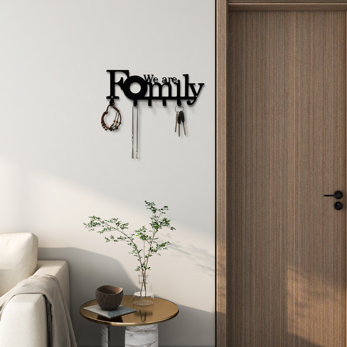 黑色金属钥匙挂钩创意纯色字母设计家居壁钩经典黑色家用墙壁挂钩