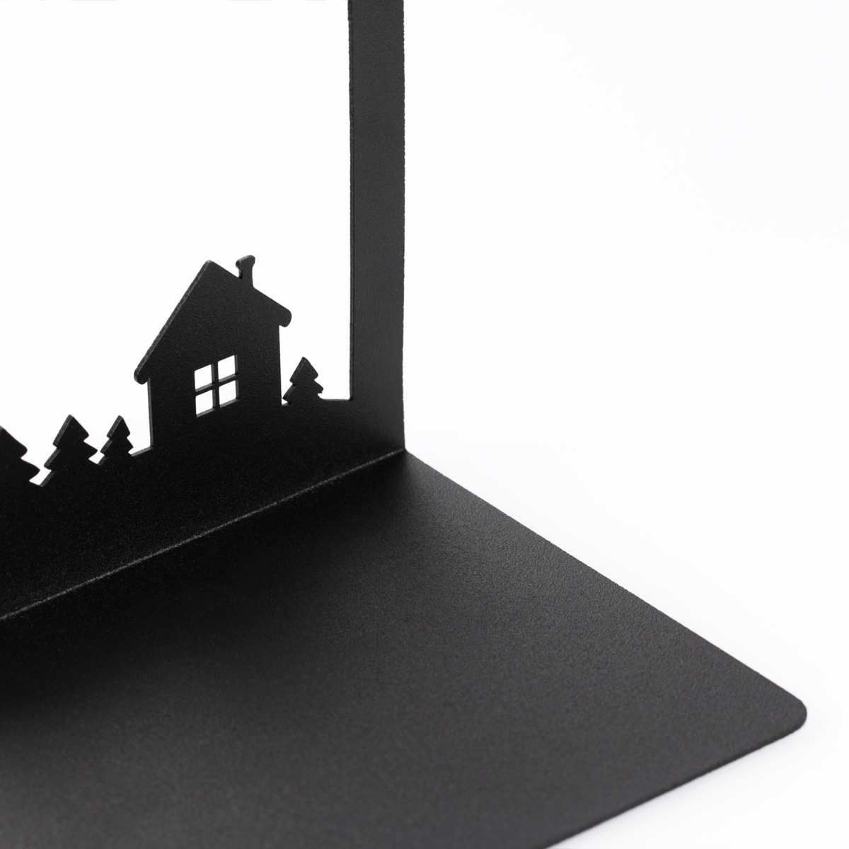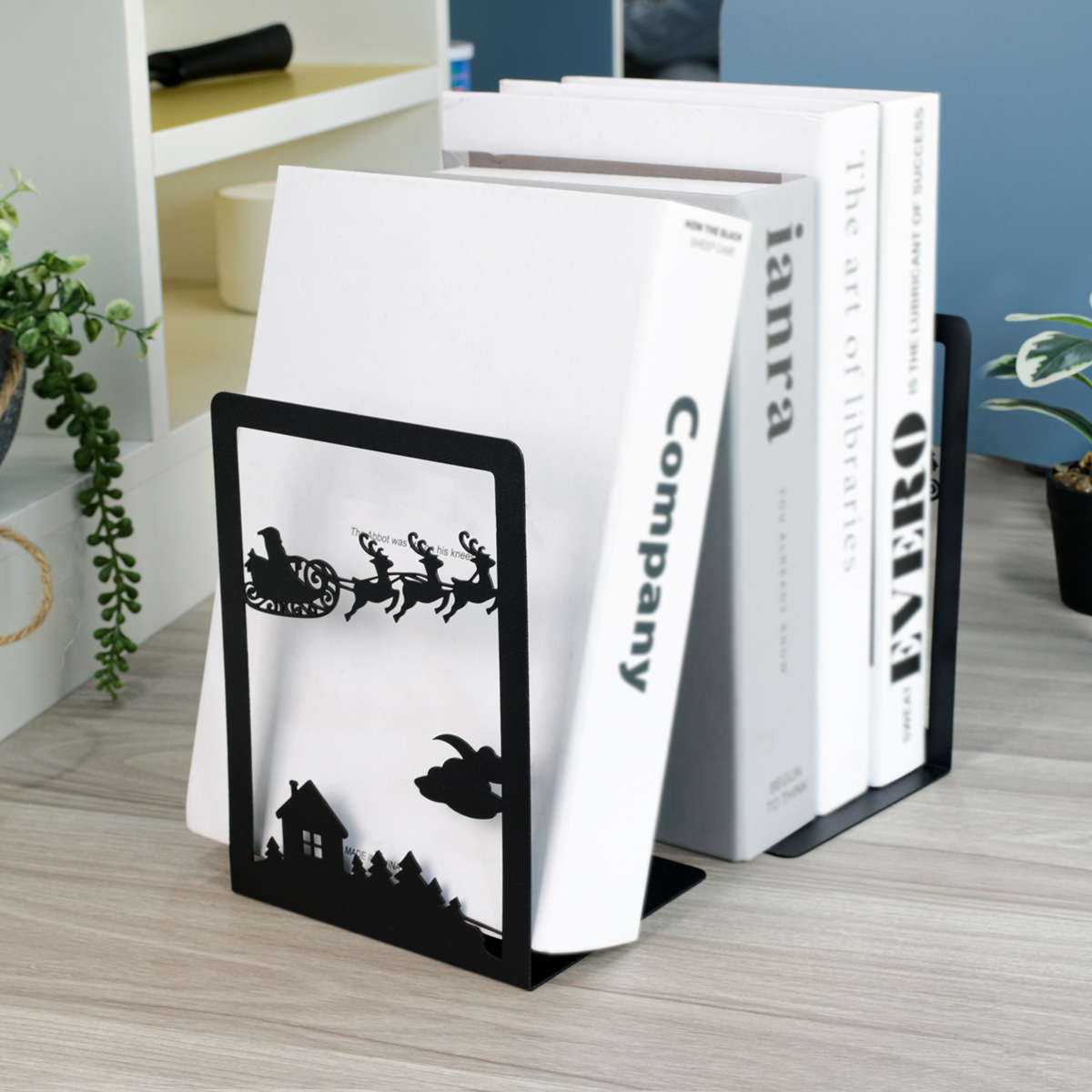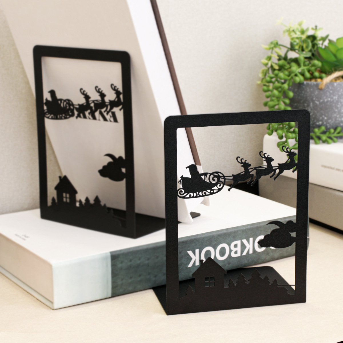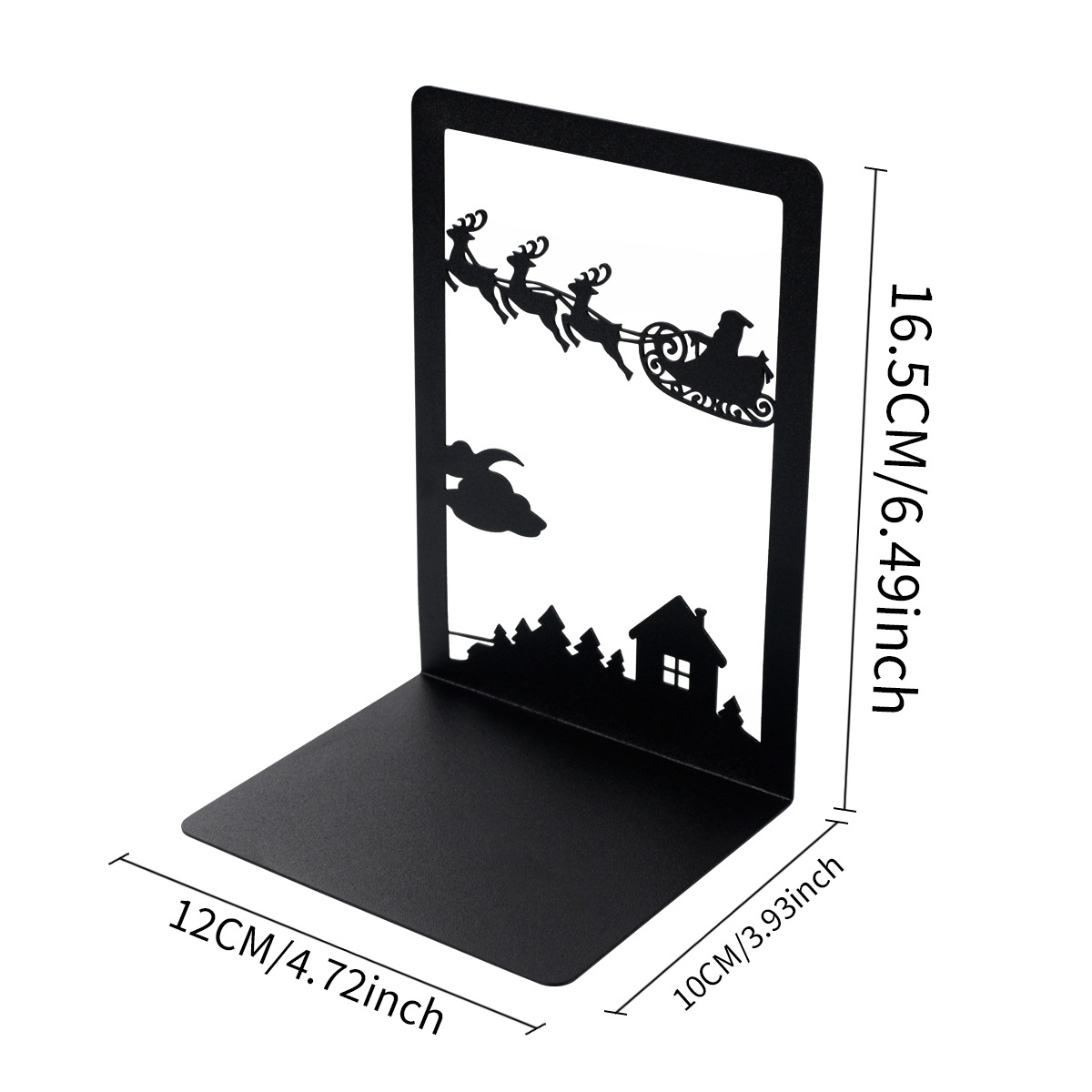 2PCS黑色金属装饰书立创意圣诞老人图案设计书档创意黑色金属书架