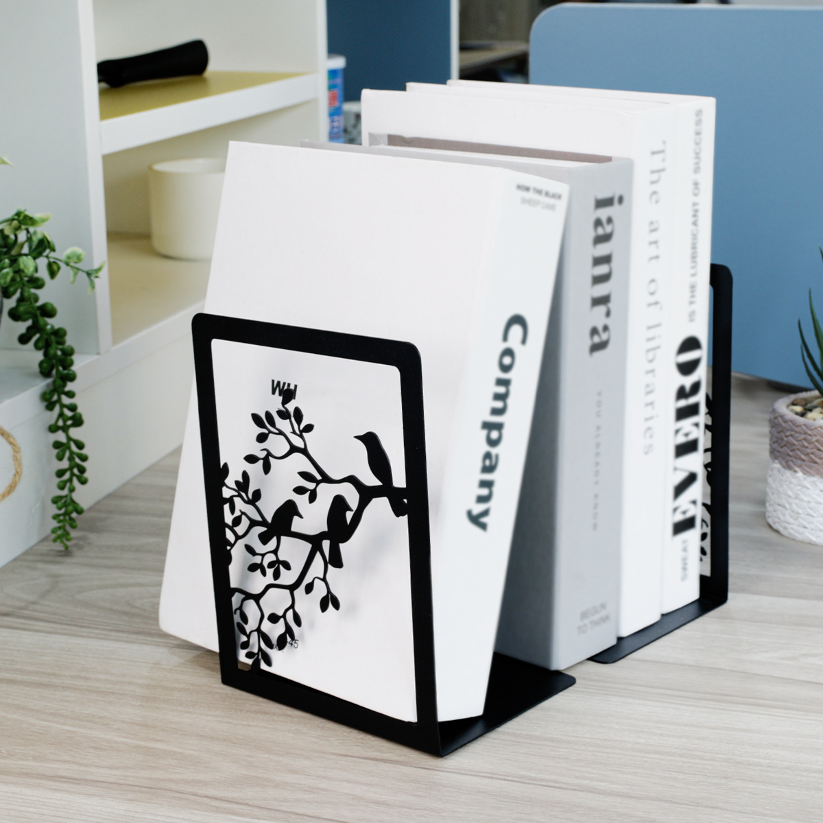 2PCS黑色金属装饰书立创意树枝图案设计书档适用办公桌与学生书桌