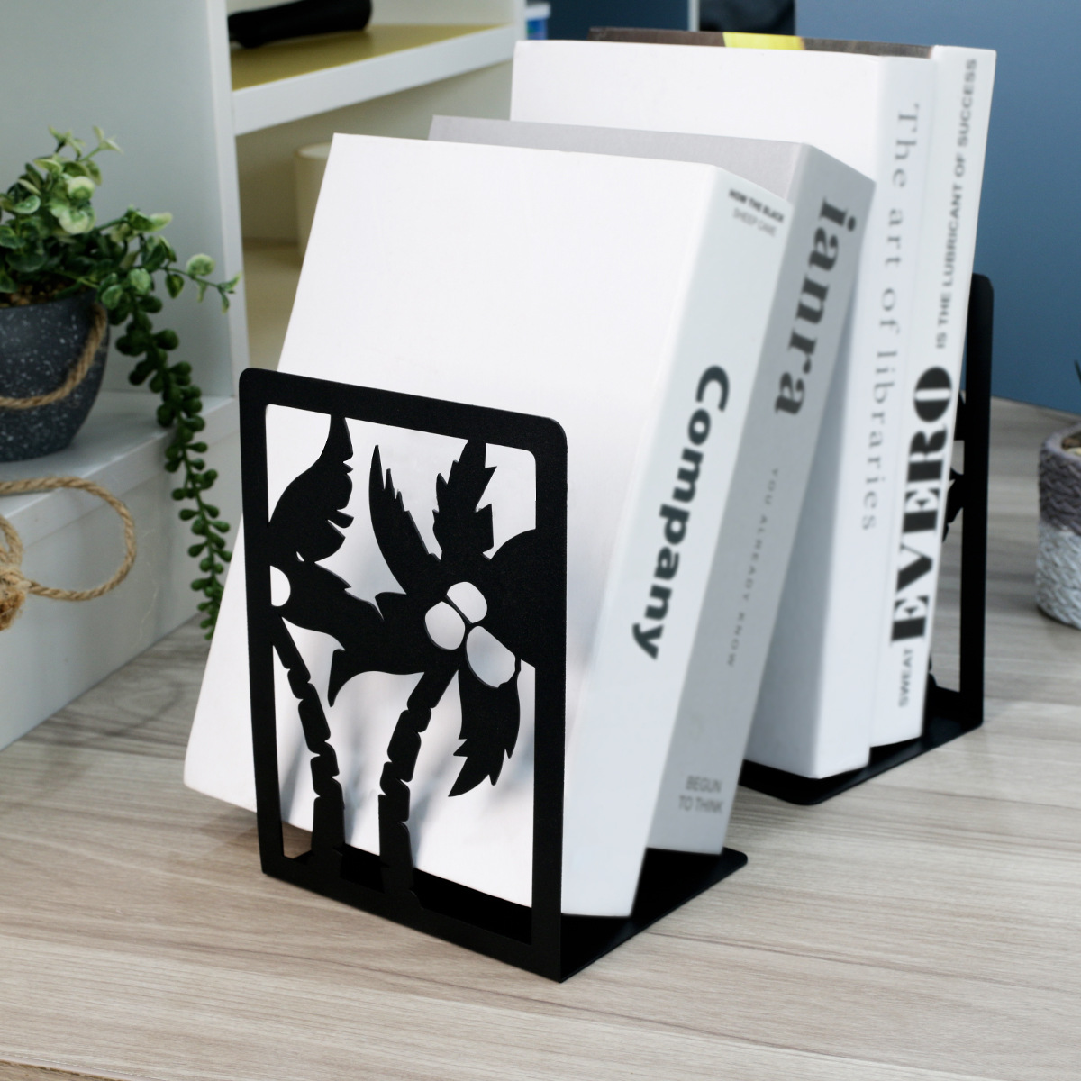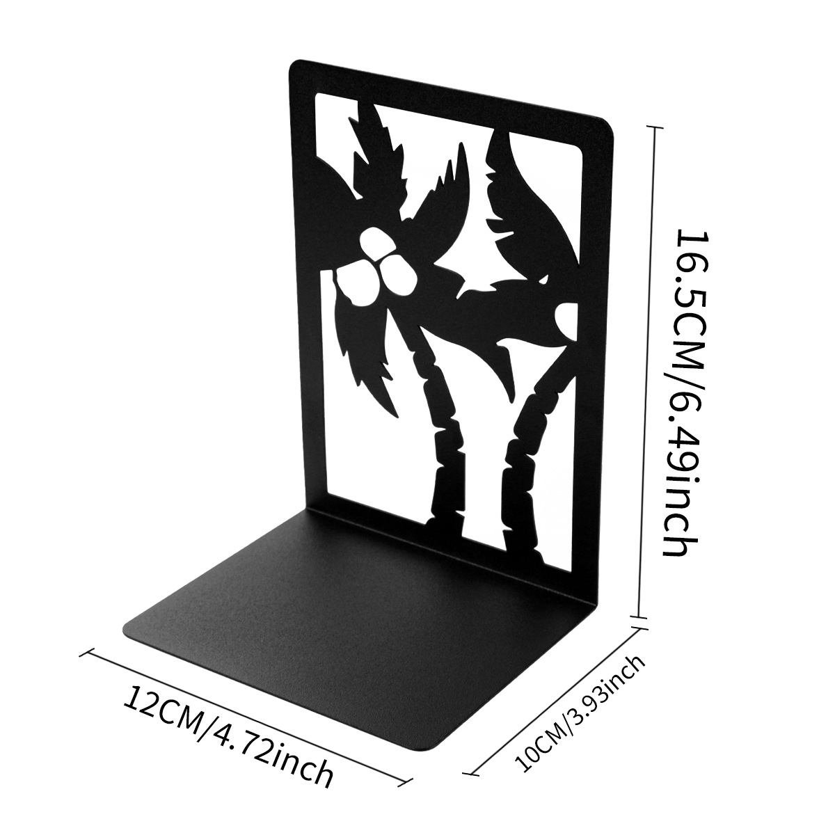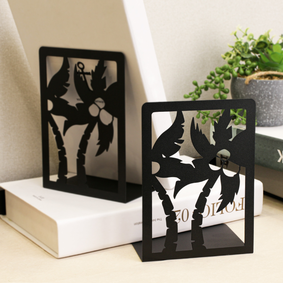 2PCS黑色金属装饰书立创意椰子树图案设计书档适用办公桌面与学生