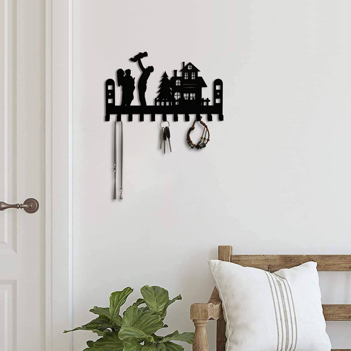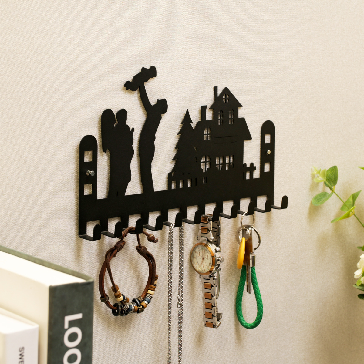 黑色金属钥匙挂钩创意甜蜜之家设计家居壁挂家居墙壁装饰钥匙扣