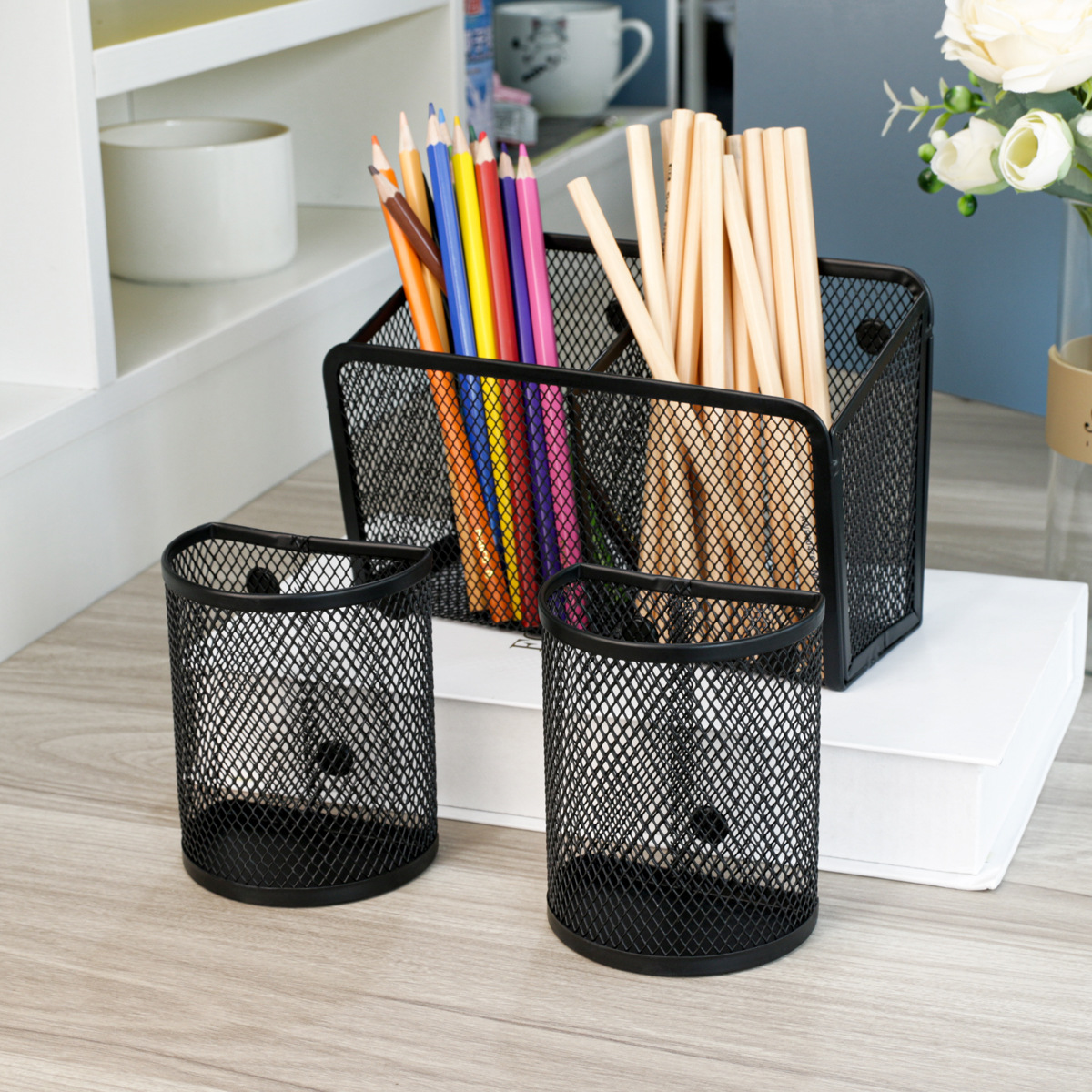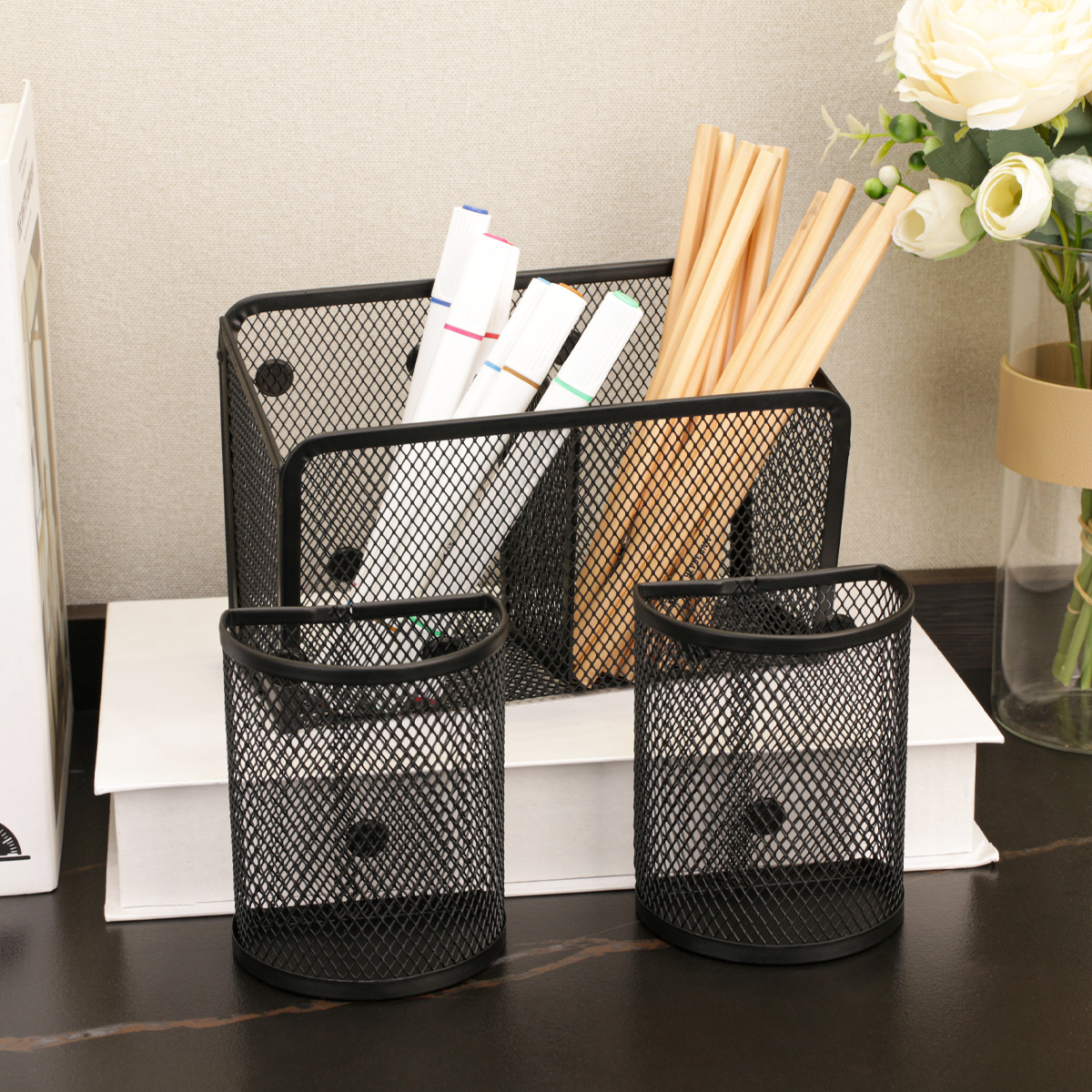 黑色金属网格笔筒简约磁吸文具收纳笔筒面创意网格笔筒