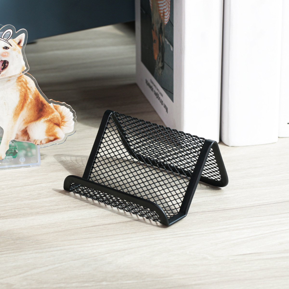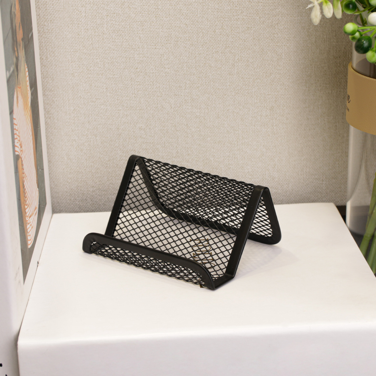 6个装 黑色金属网格名片夹简约可容纳50张名片夹桌面摆放式名片夹