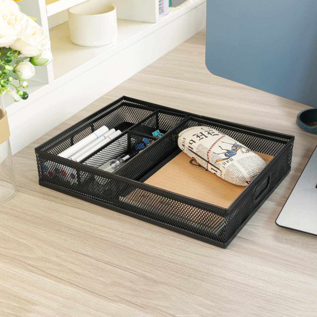 黑色金属网格文件托盘多功能3件套可拆分收纳整理器适用学生书桌