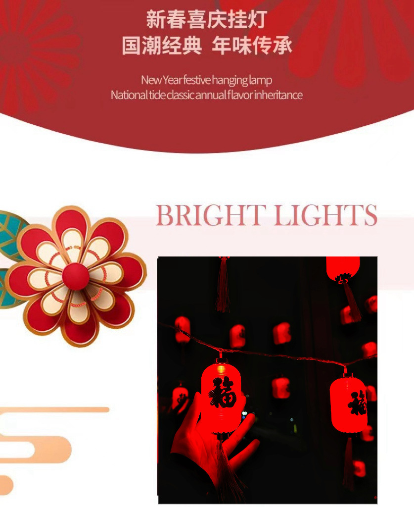 新款春节led红灯笼新年彩灯 满天星户外氛围过年装饰布置灯串小灯