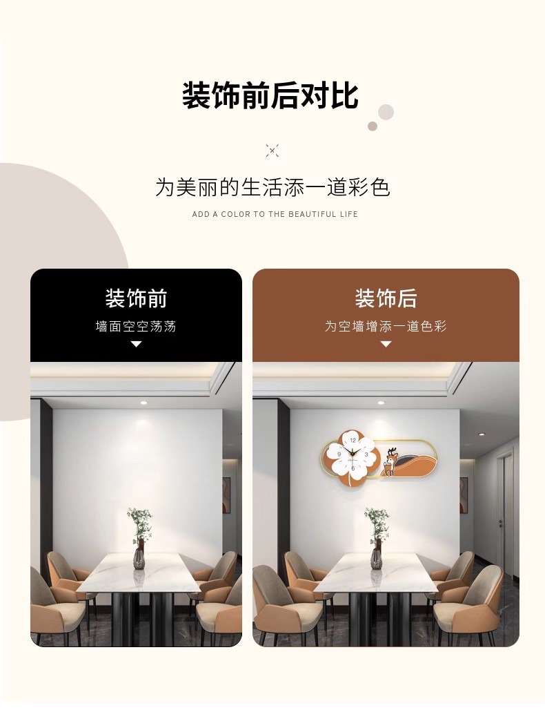 餐厅挂钟现代简约网红挂表客厅家用钟表挂墙创意2023新款时钟装饰