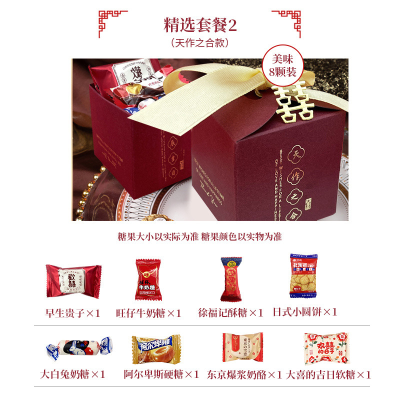 结婚喜糖批发礼盒装成品含糖婚礼手提伴手礼搭配满月混合糖果散装