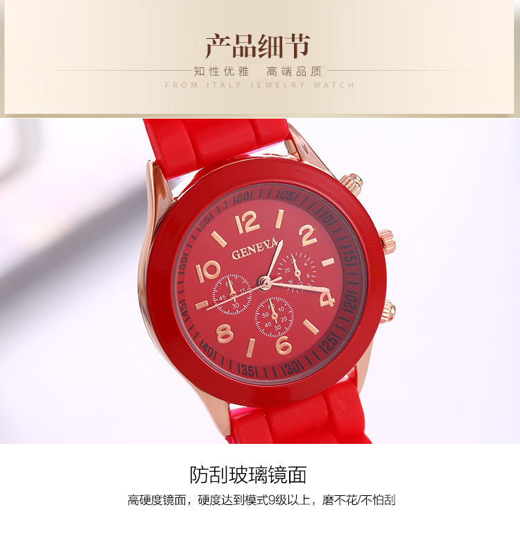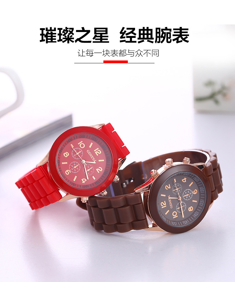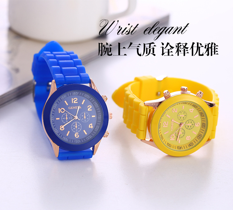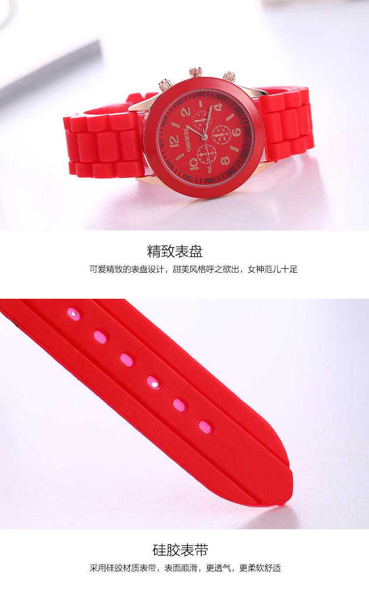 外贸热卖款geneva日内瓦硅胶手表男女学士款时尚靓丽彩色果冻表