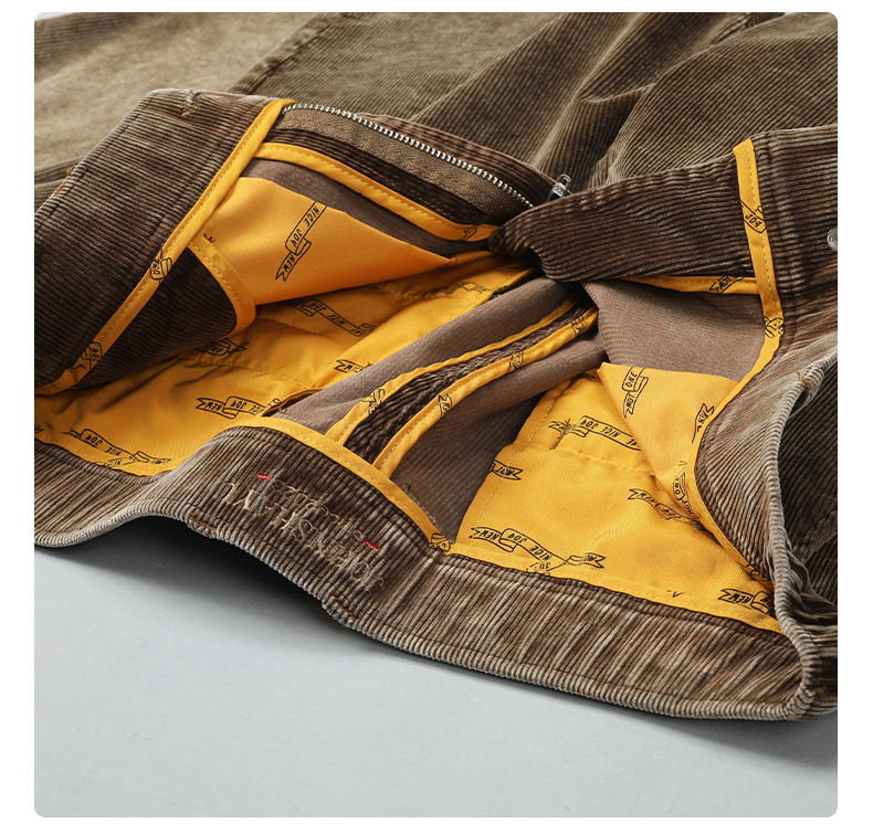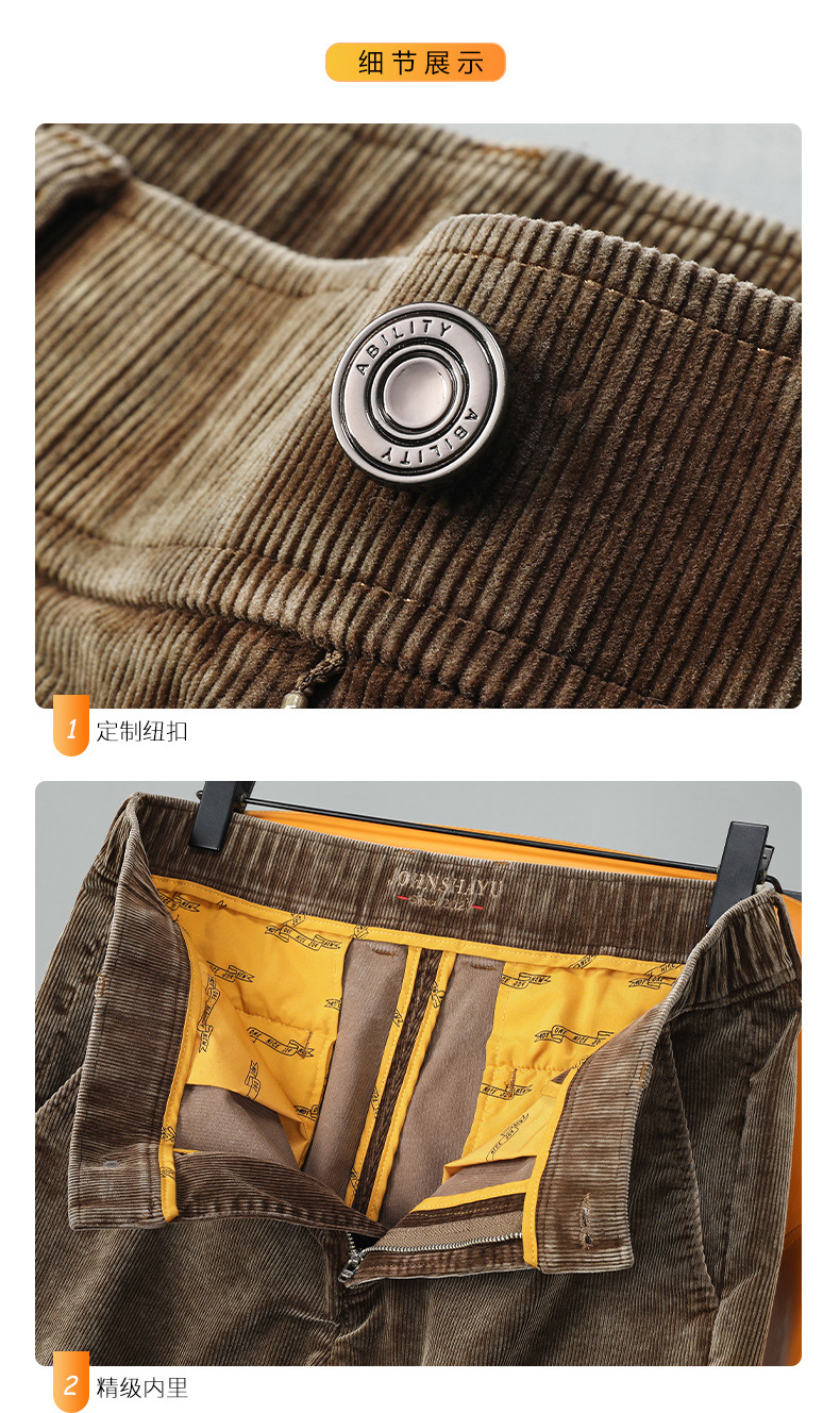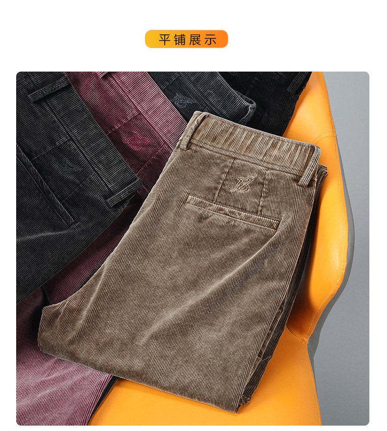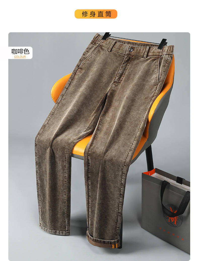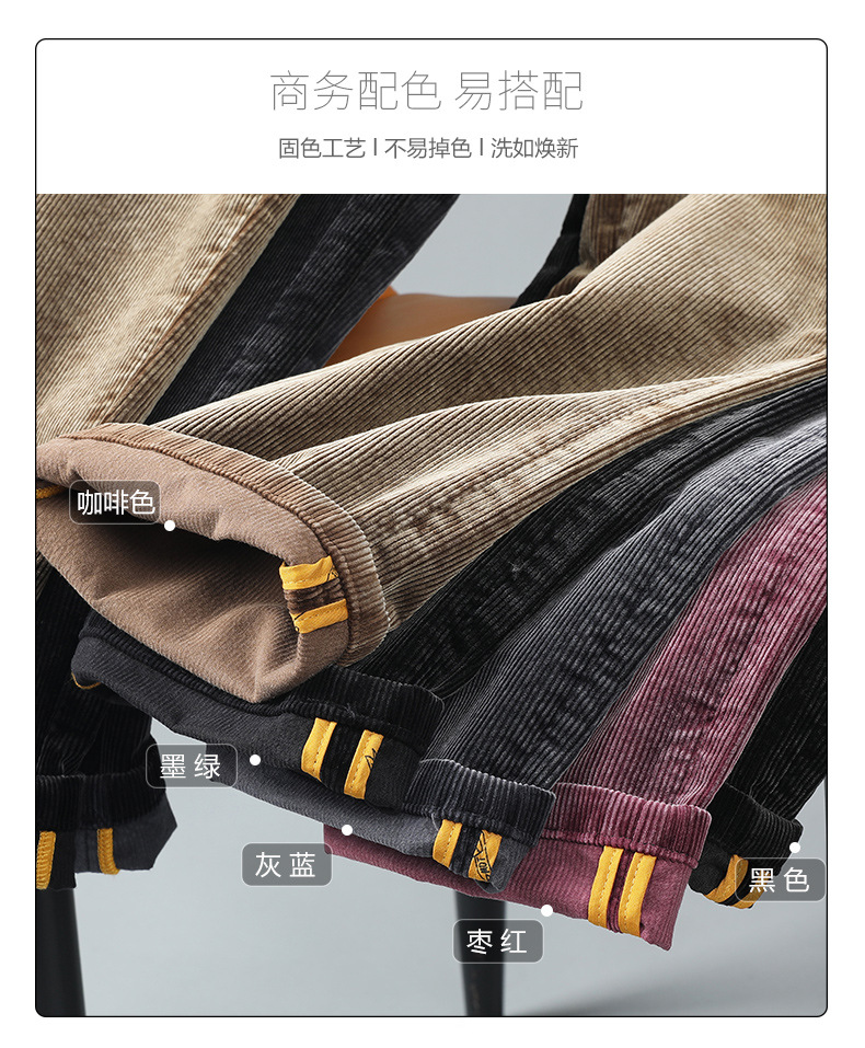 2023新款冬季灯芯绒潮牌男士休闲裤 加绒休闲纯色宽松男士直筒裤