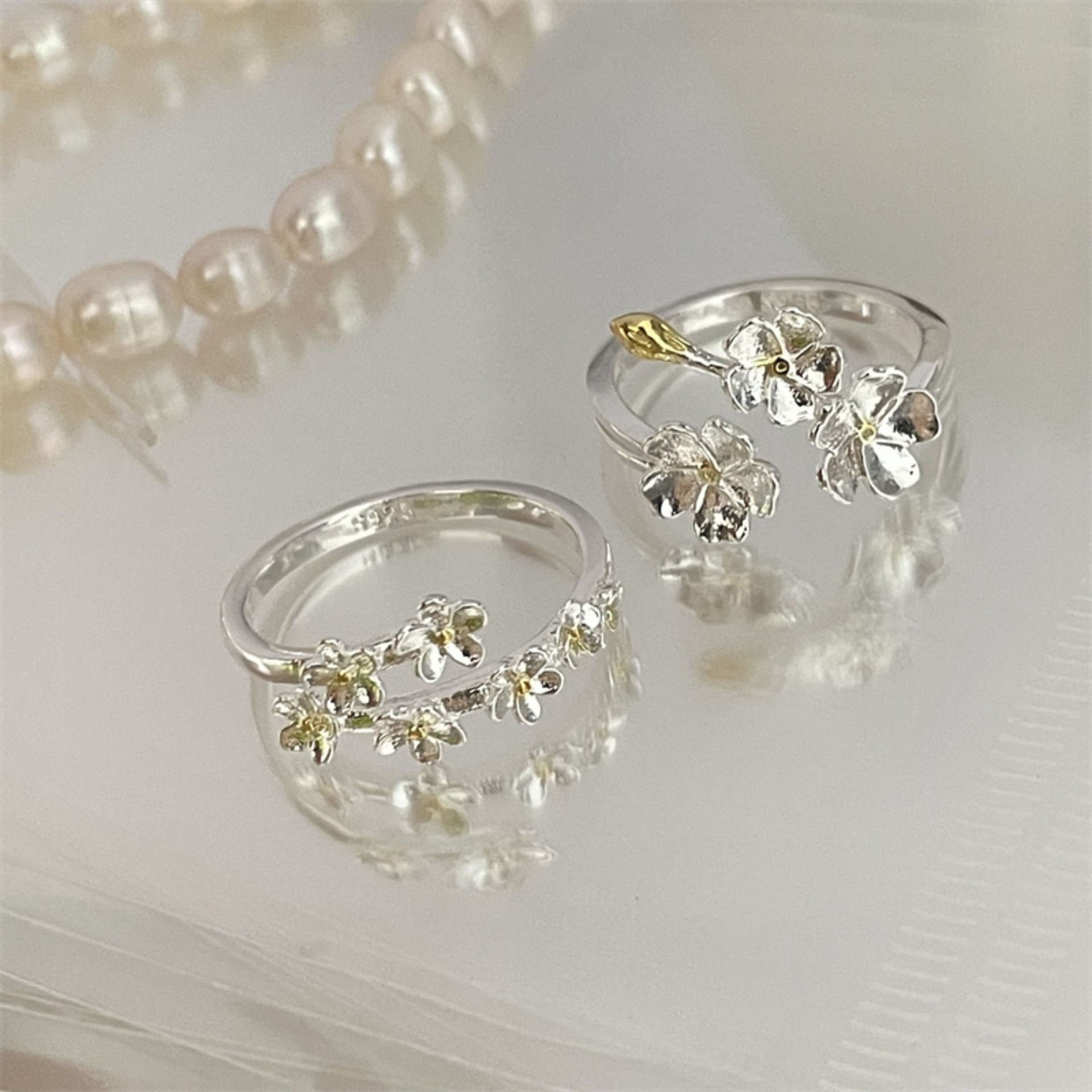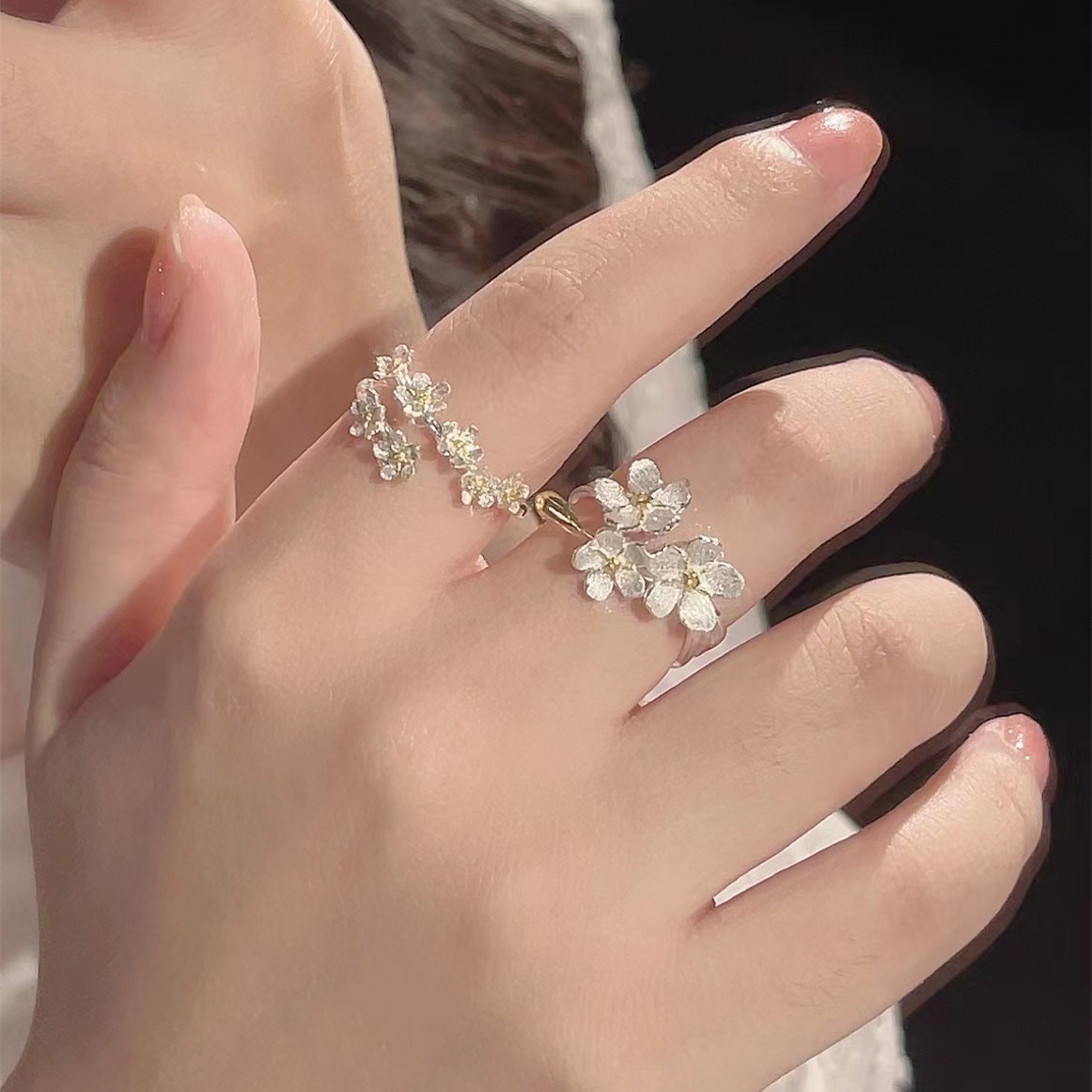 立体花朵戒指银色鸢尾花古风中世纪法式复古宫廷欧式美式开口手饰
