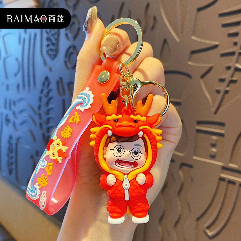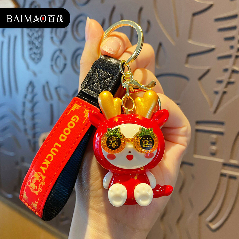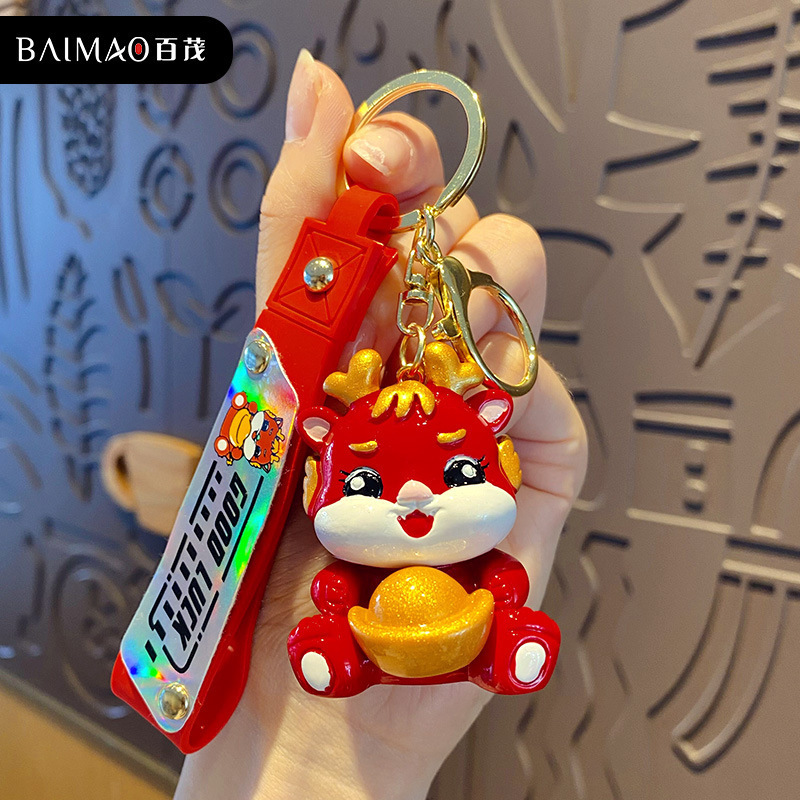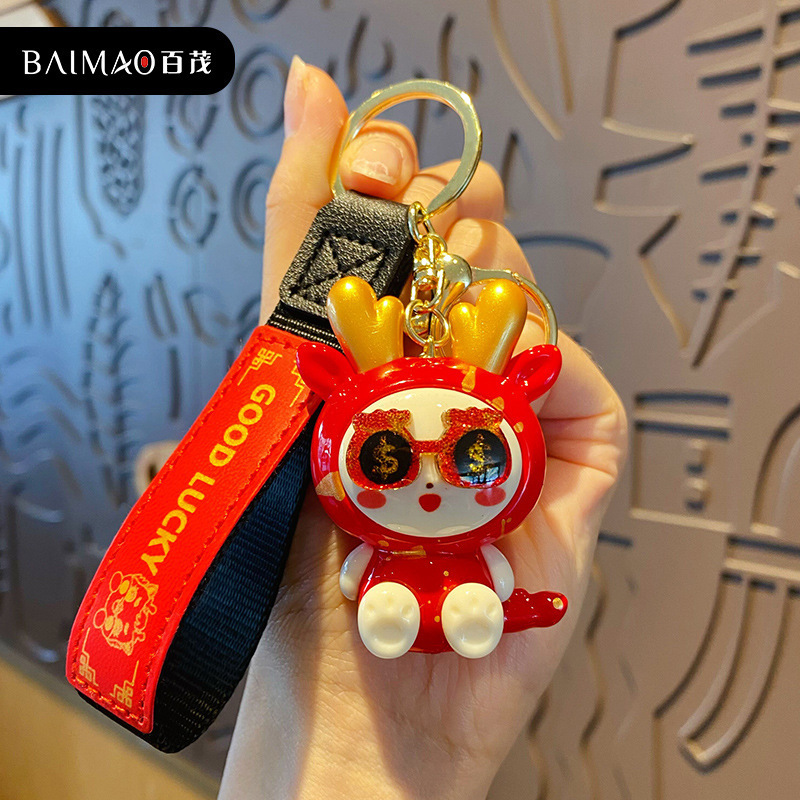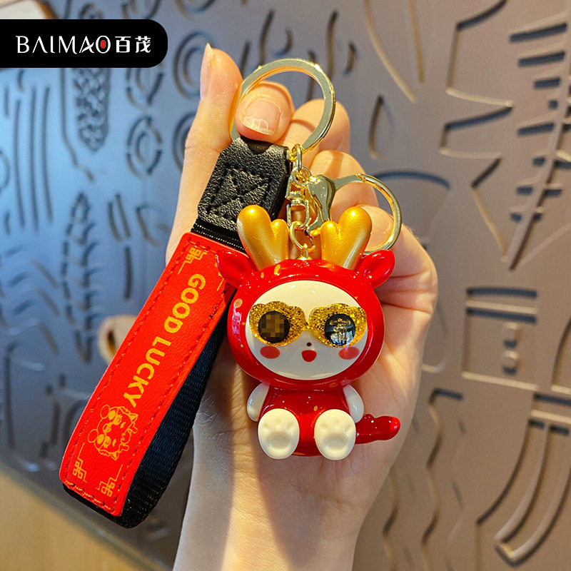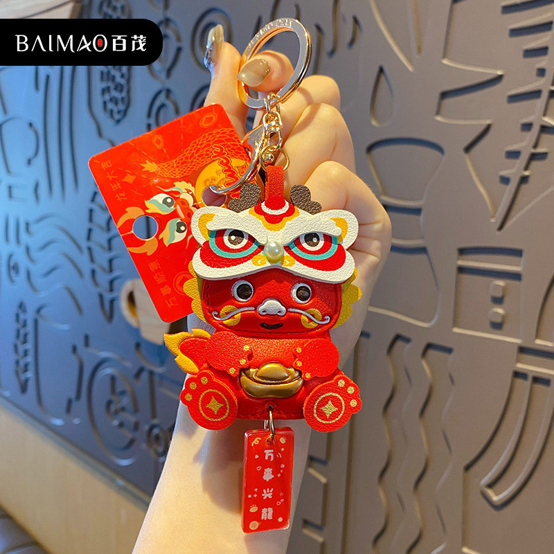 百茂正版醒狮辰龙龙年钥匙扣女可爱精致柴犬公仔书包挂件新年礼物
