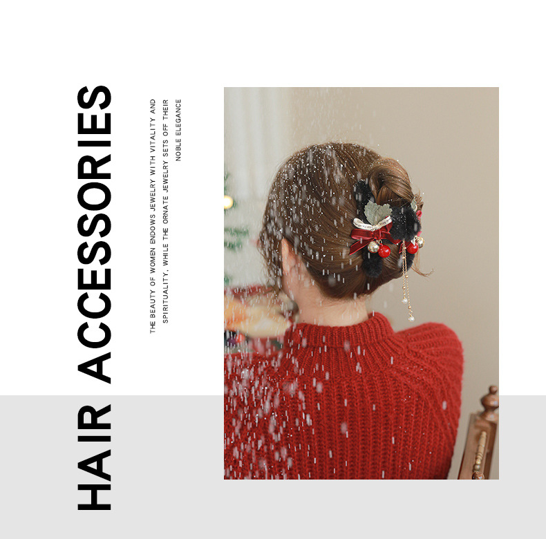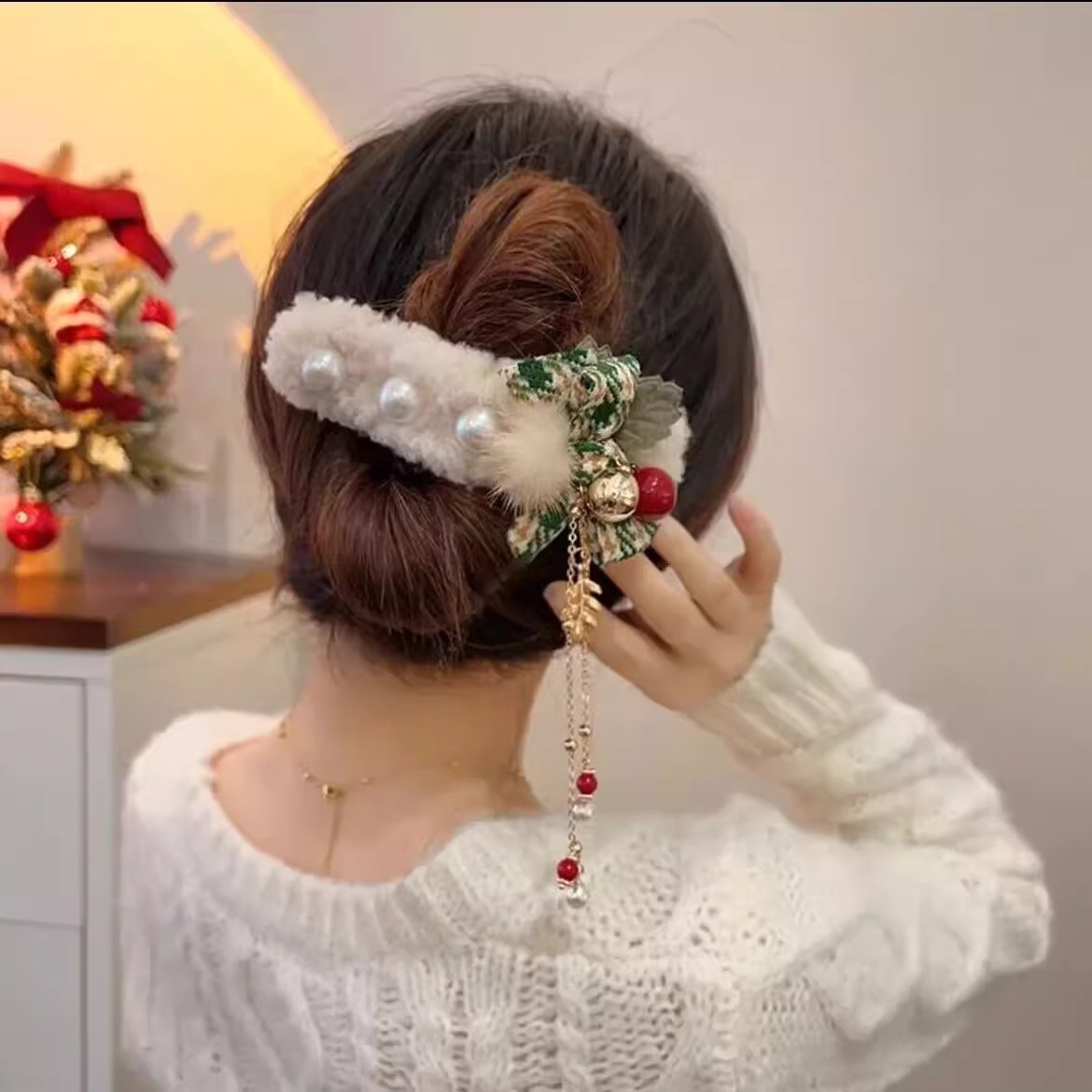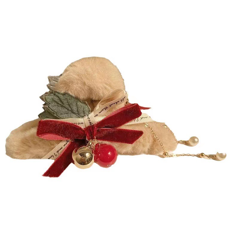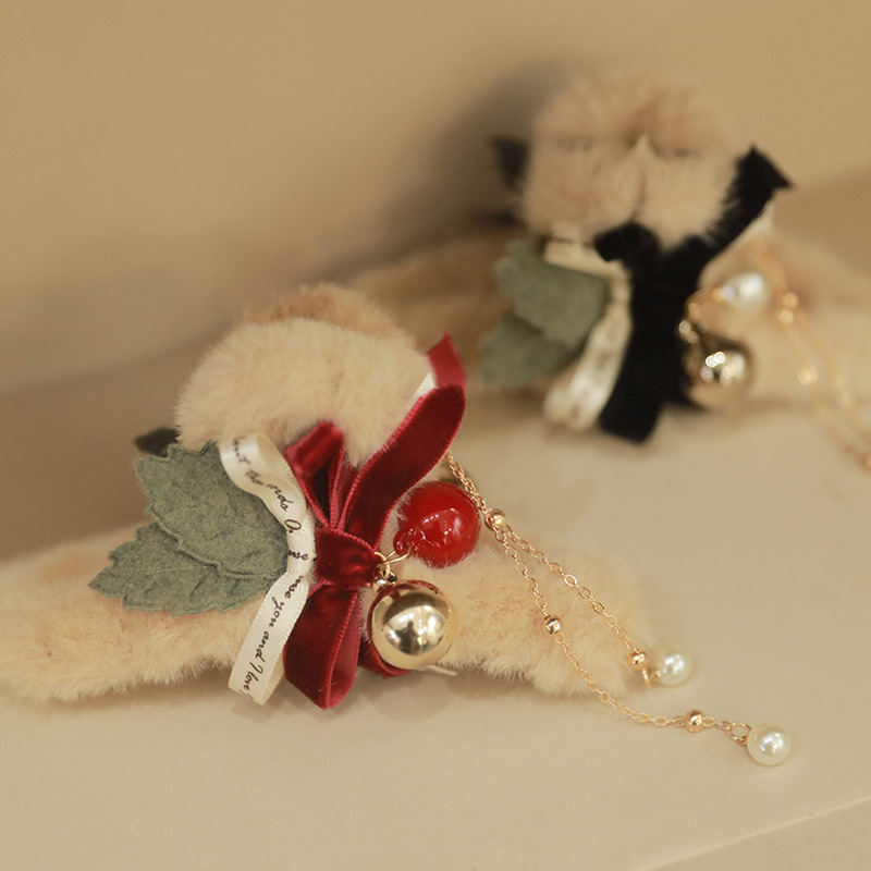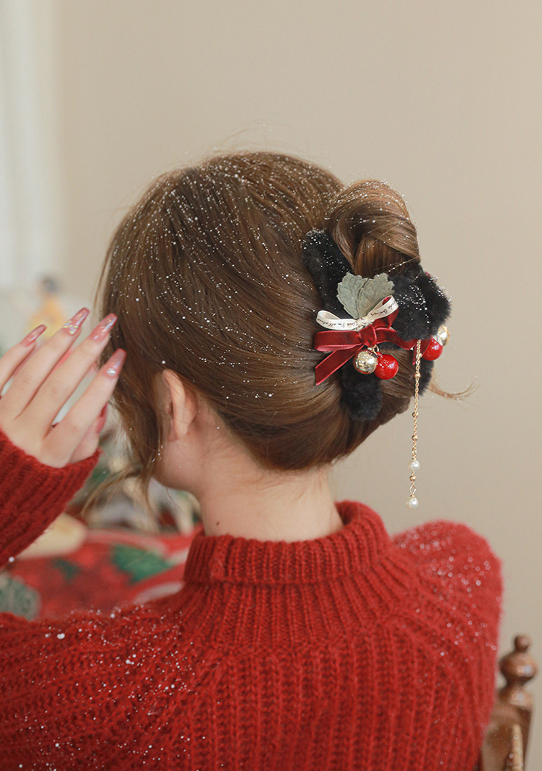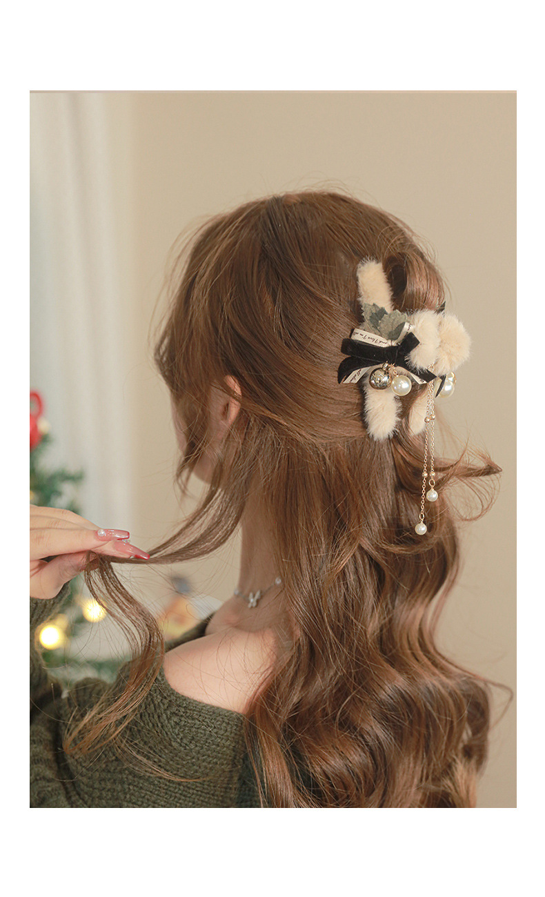 圣诞节气质毛绒抓夹秋冬女后脑勺蝴蝶结流苏头饰发夹鲨鱼夹发饰