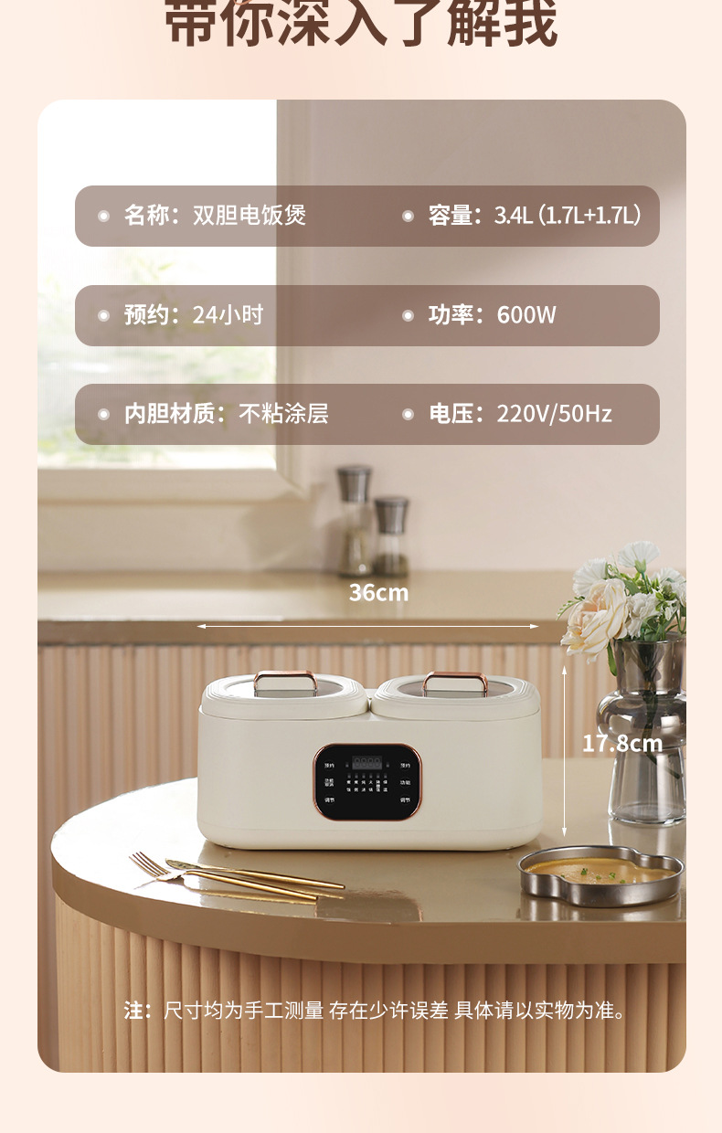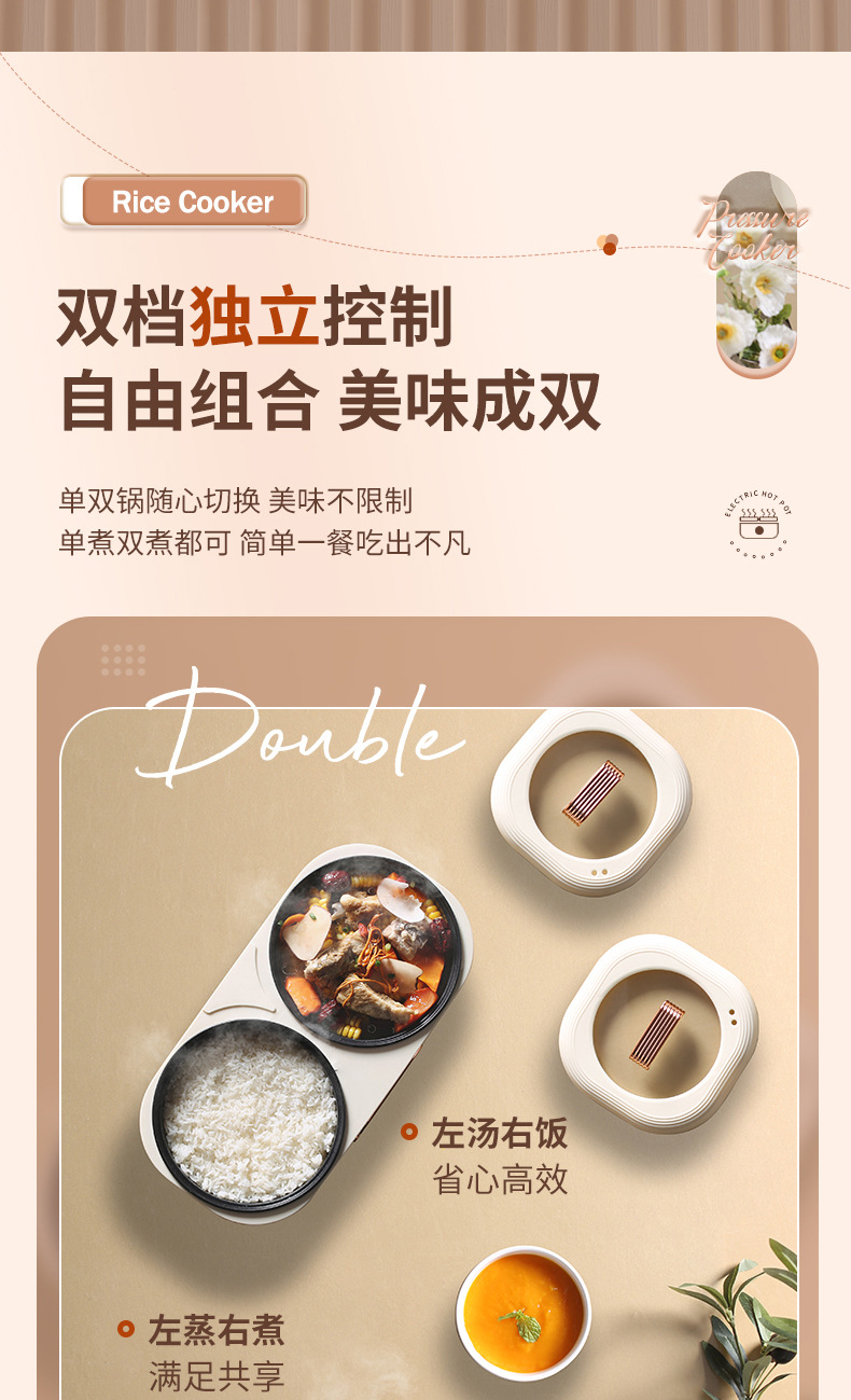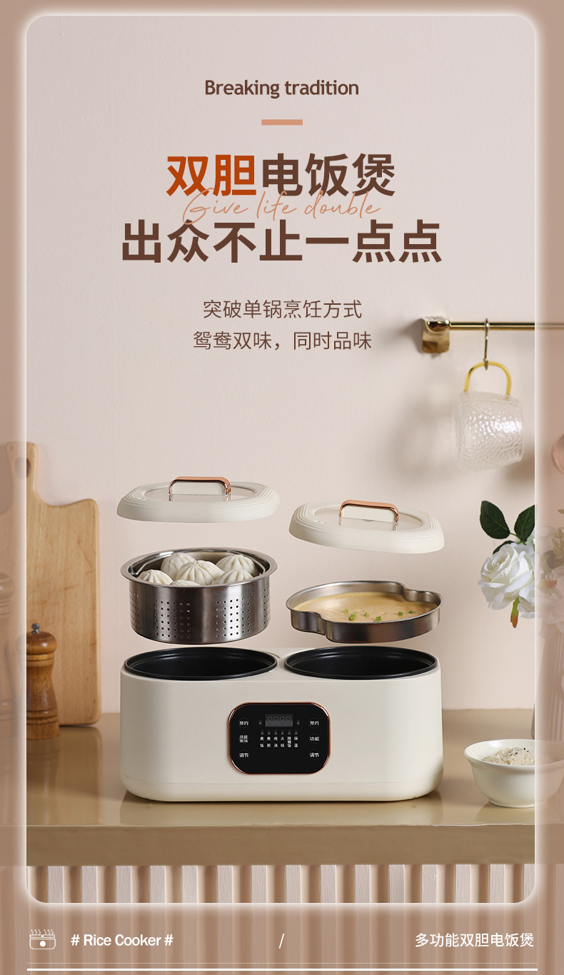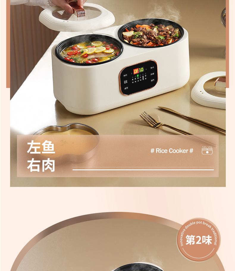 智能预约不粘电饭锅家用蒸煮一体鸳鸯电煮锅网红多功能双胆电饭煲