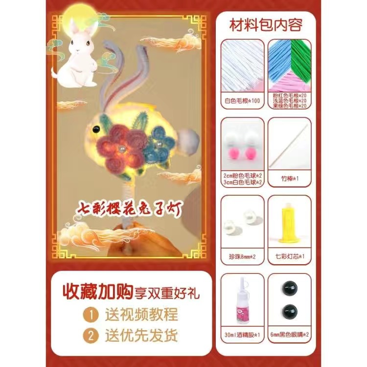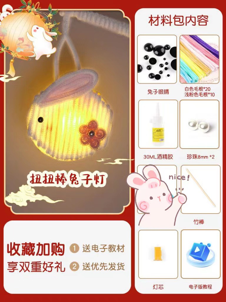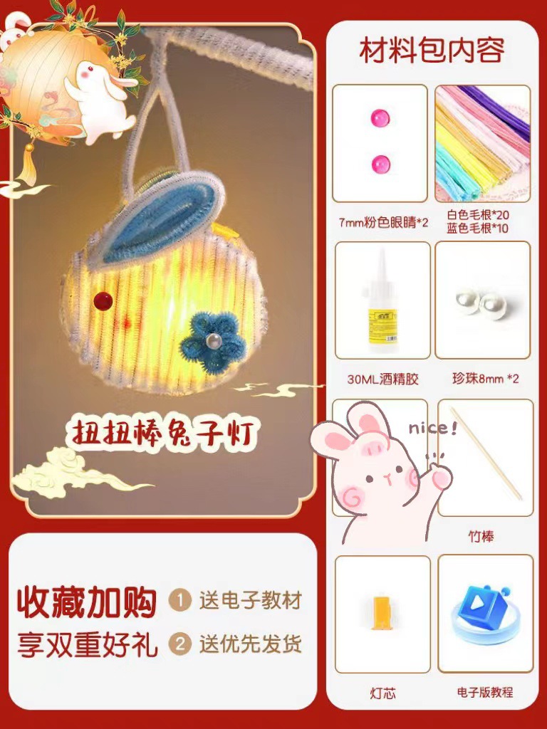 兔子灯加密扭扭棒DIY材料包手提发光送闺蜜中秋国庆新年礼物