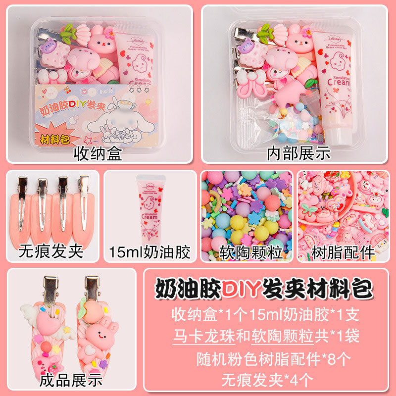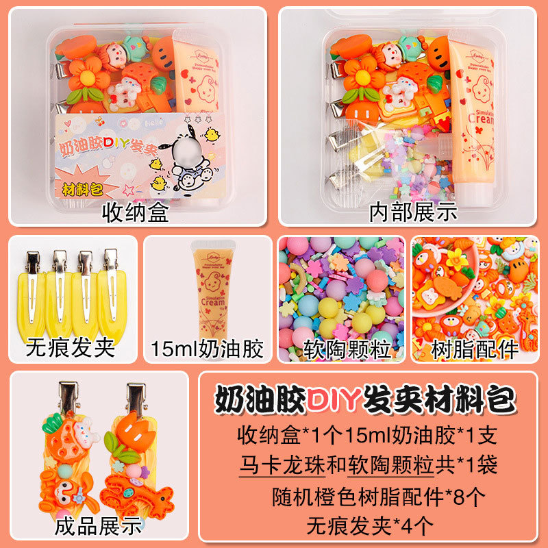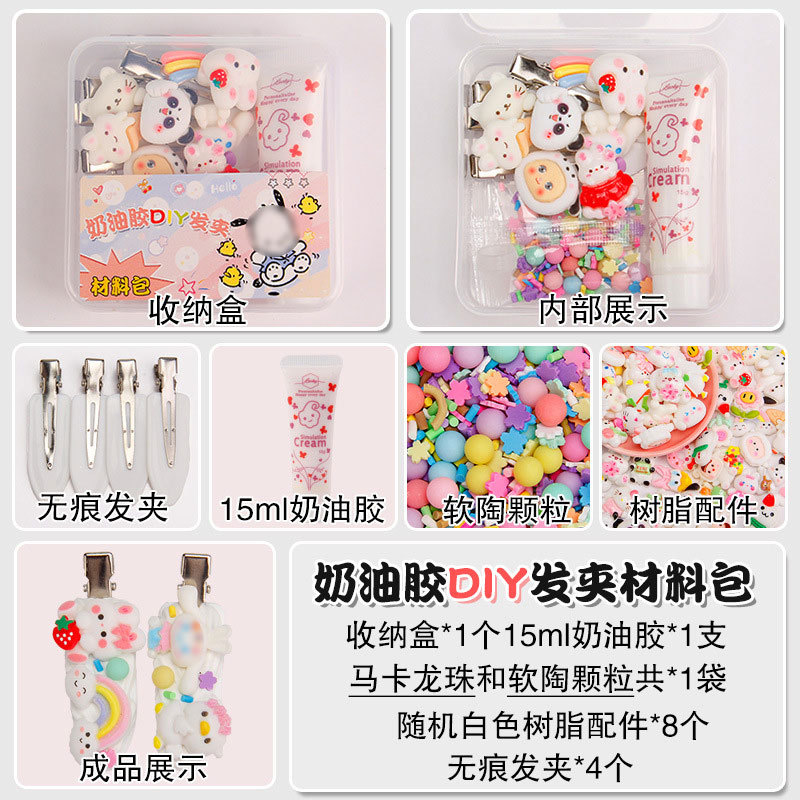 15g奶油胶发夹DIY手工包材料包可爱树脂配件夹子套装摆摊儿童玩具