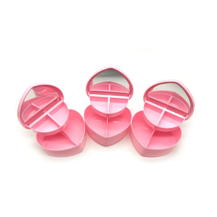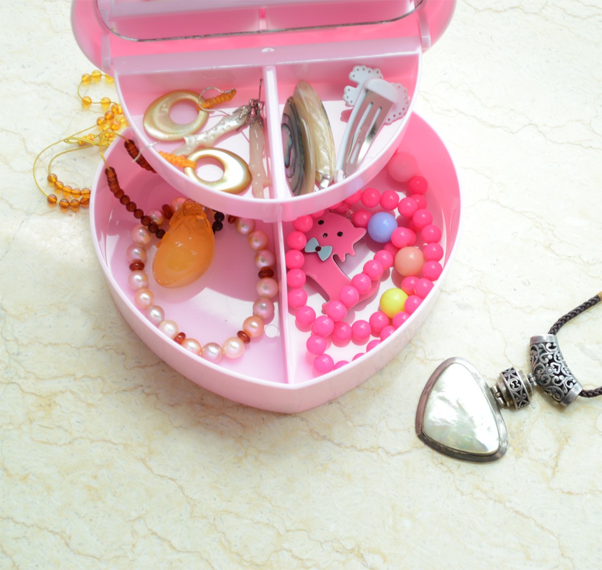 卡通可爱儿童首饰收纳盒创意宝宝女孩生日礼物爱心型化妆盒带镜子