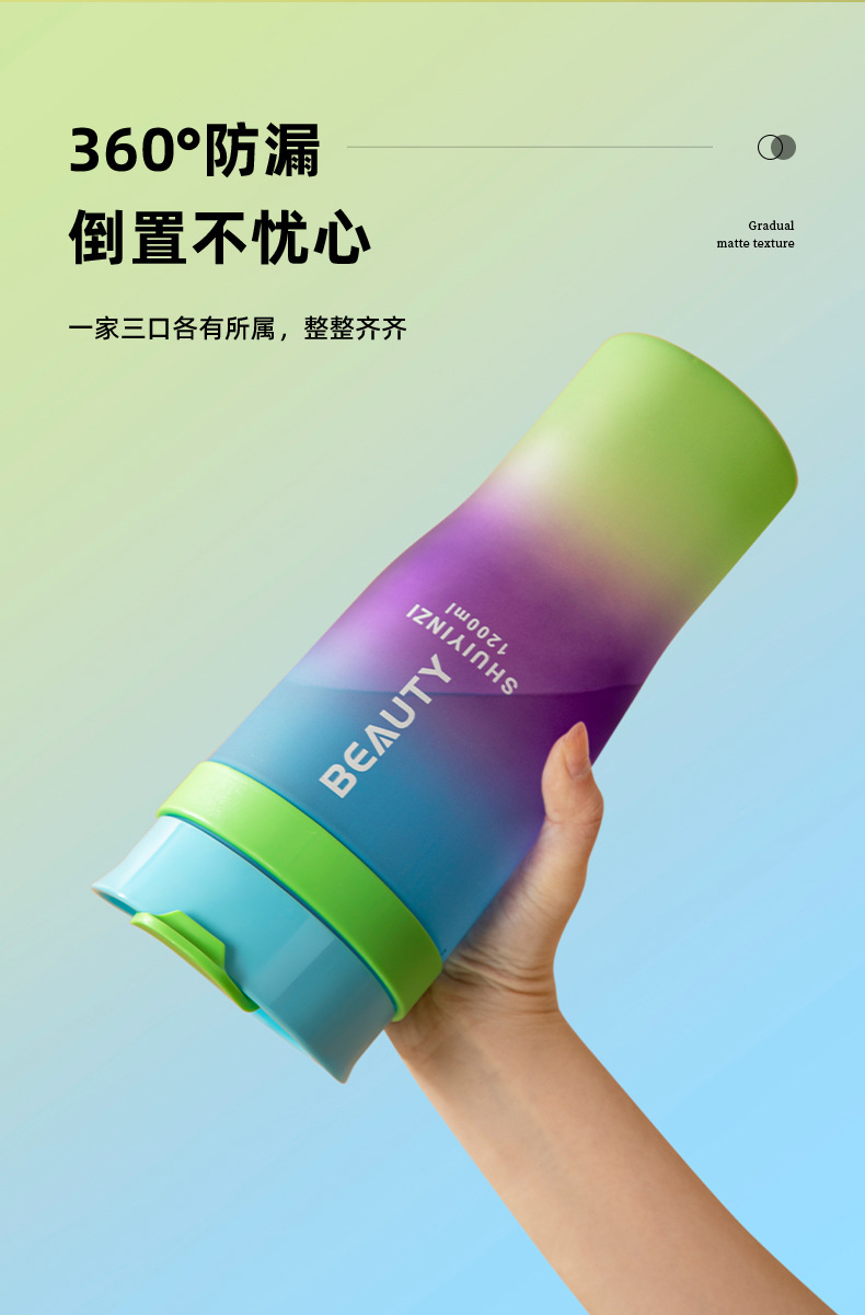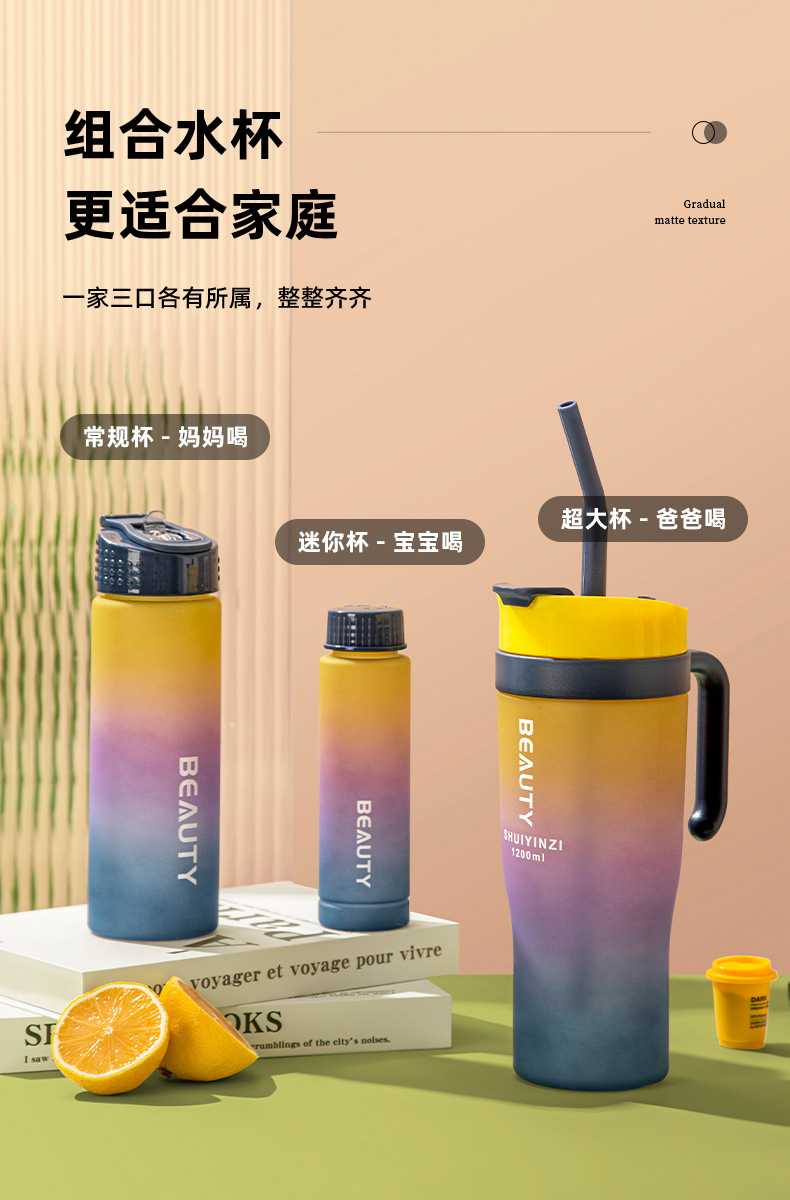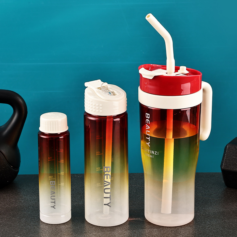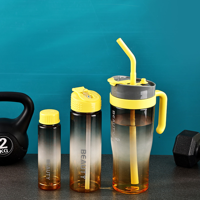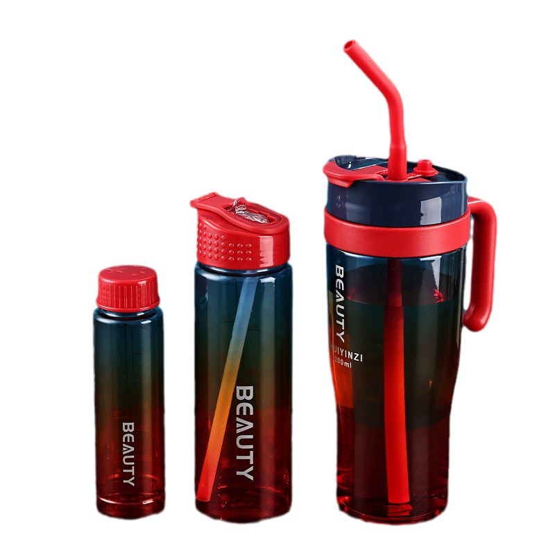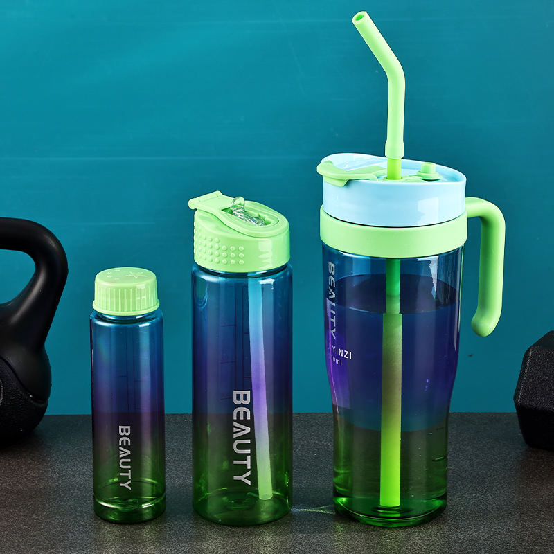 厂家大容量渐变色汽车杯磨砂透明塑料水杯三件套便携吸管杯直饮杯