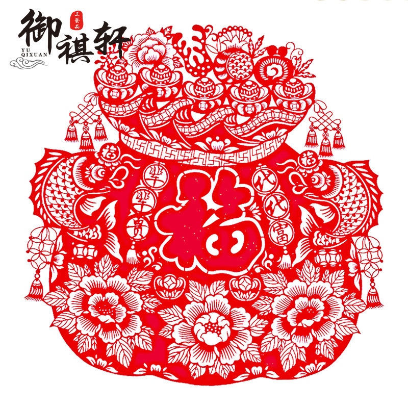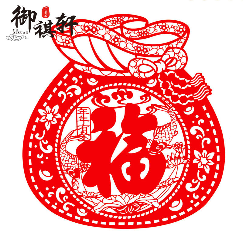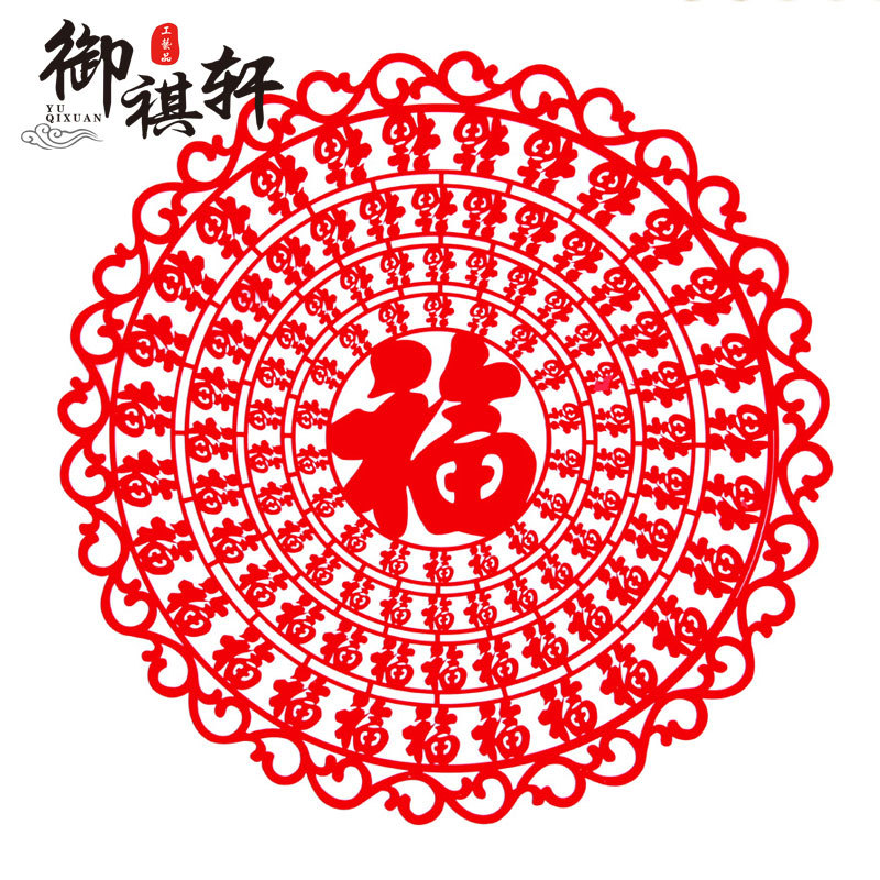 2024龙年窗贴新年画春节装饰植绒布剪纸大窗花玻璃贴乔迁福字贴纸