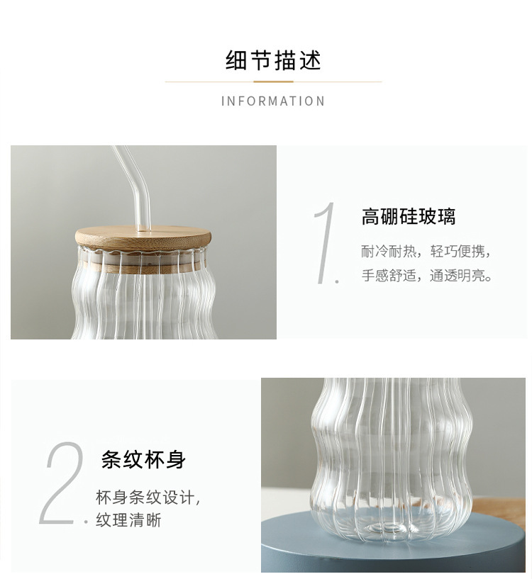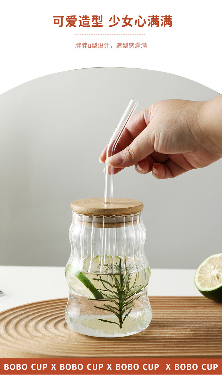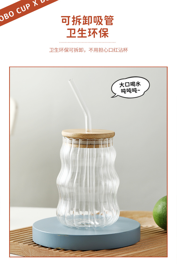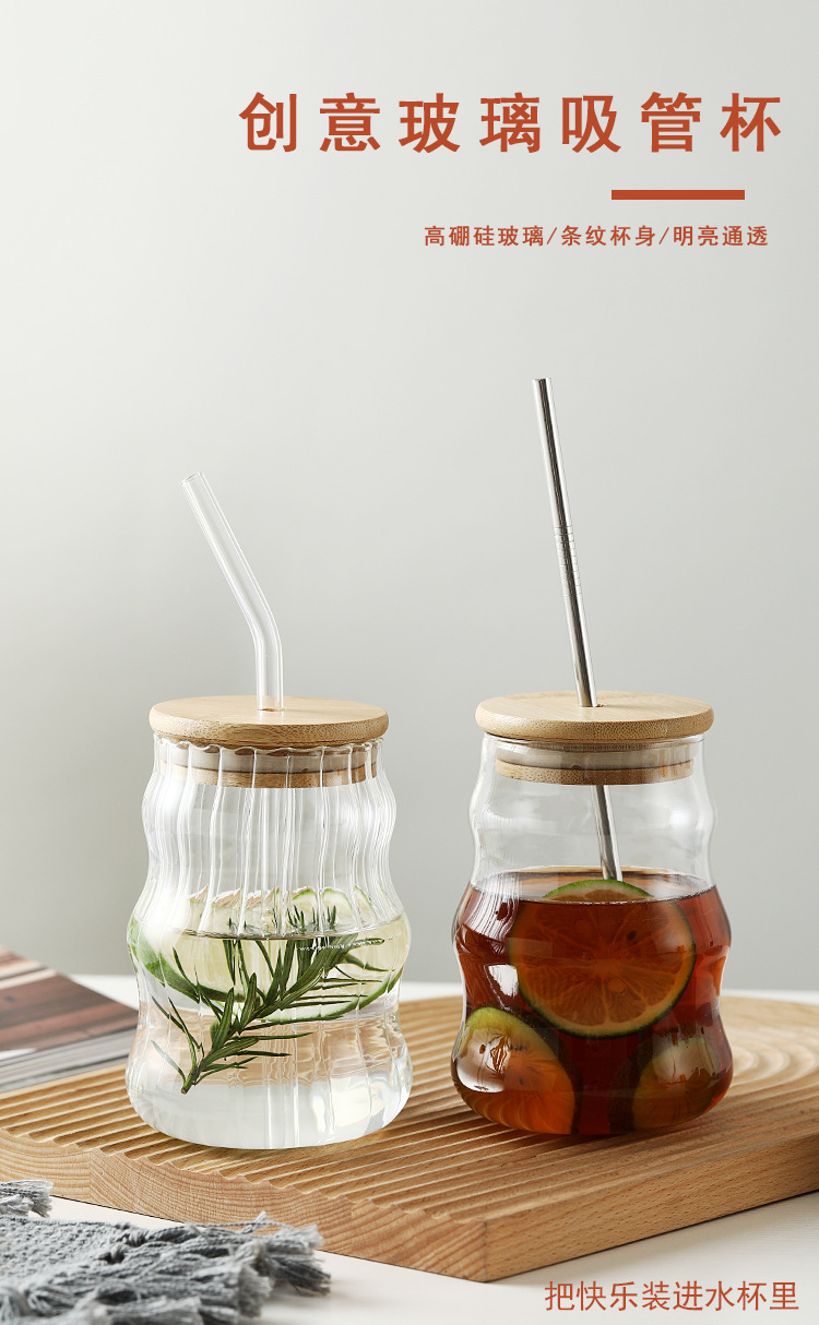 带吸管 ins风高硼硅透明玻璃可乐杯家用女生高颜值果汁饮料单层杯