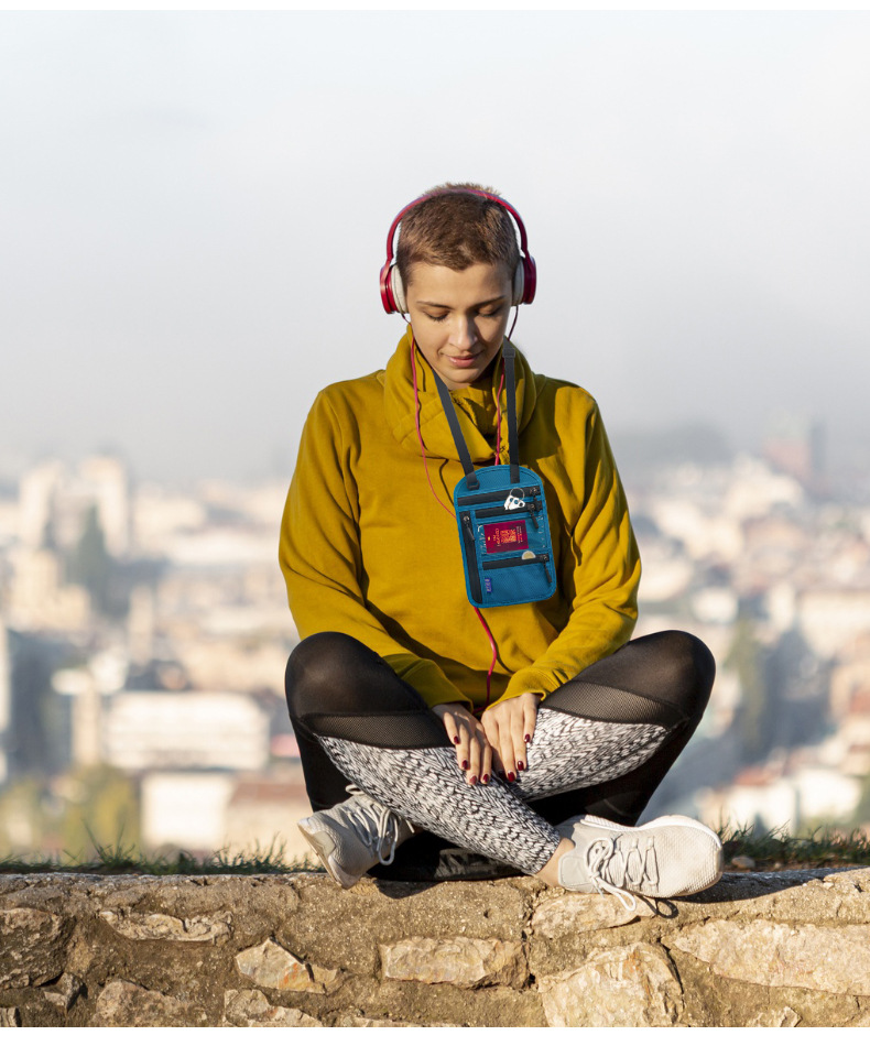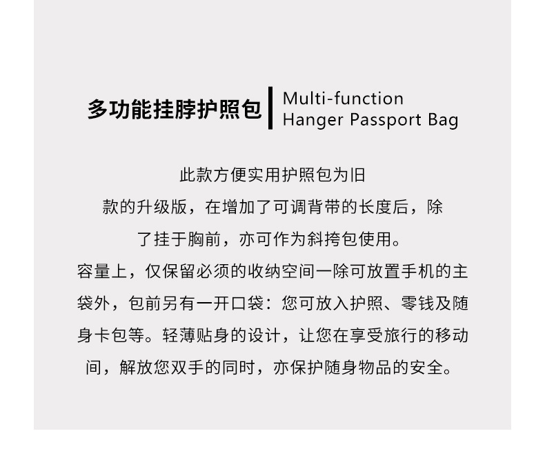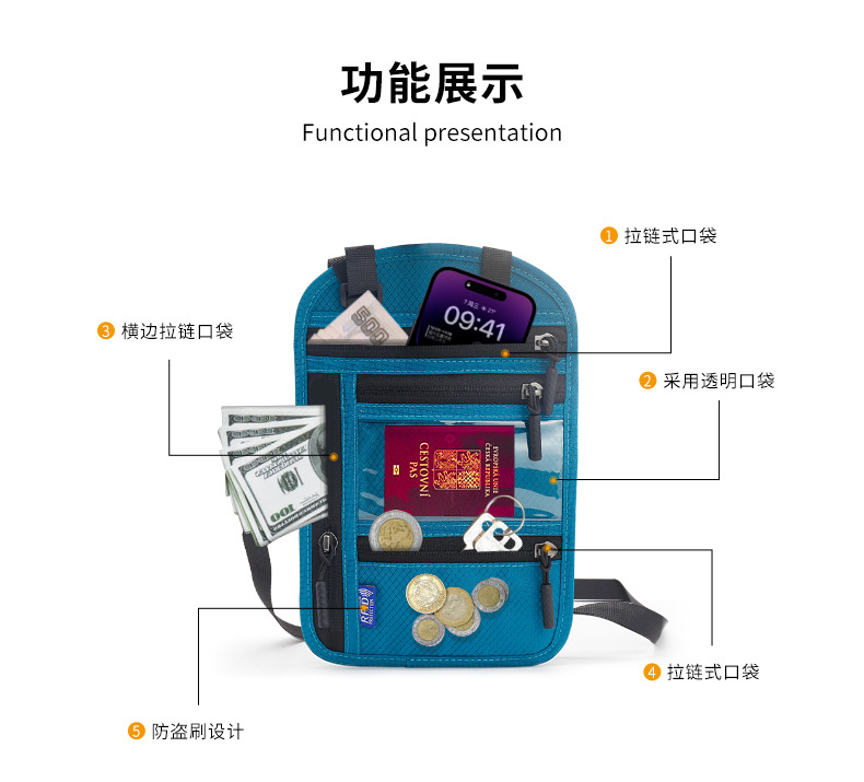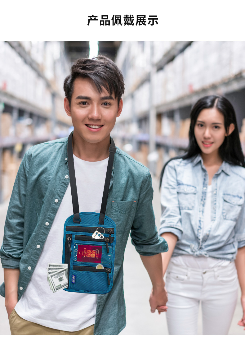 亚马逊多功能挂脖护照包RFID斜挎单肩收纳袋出国机票证件保护套