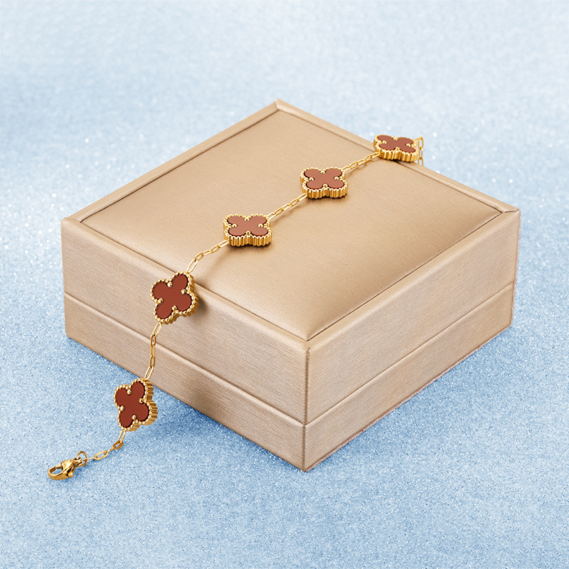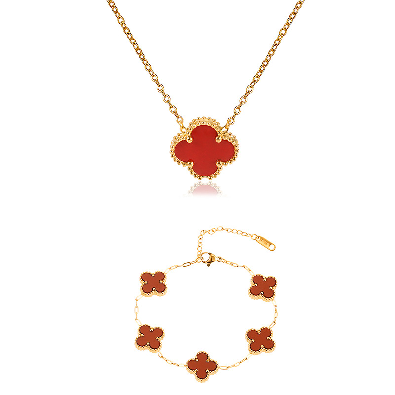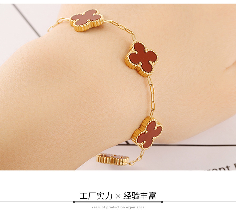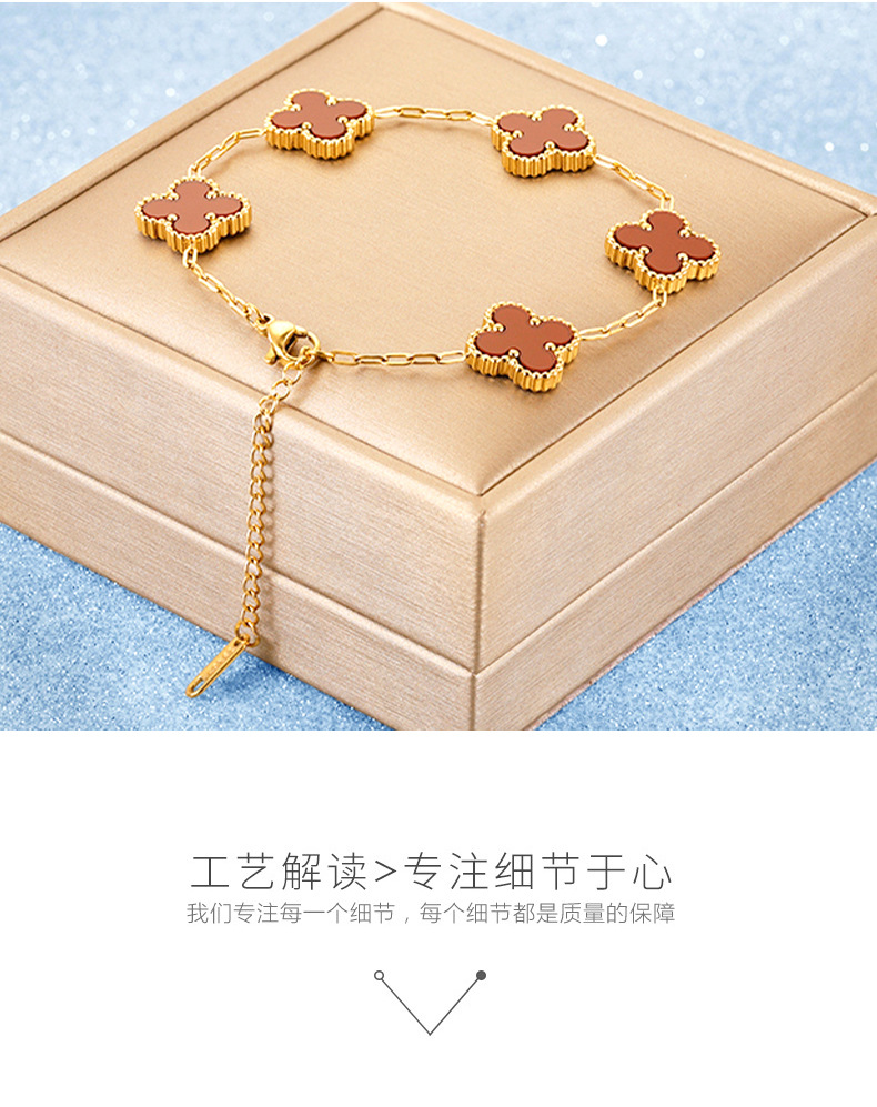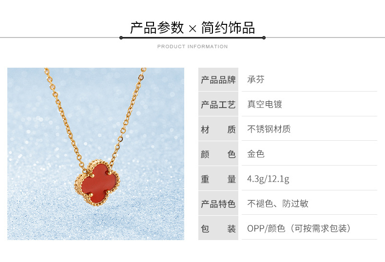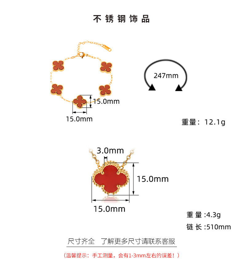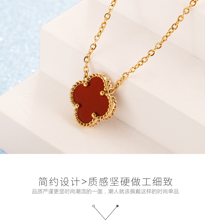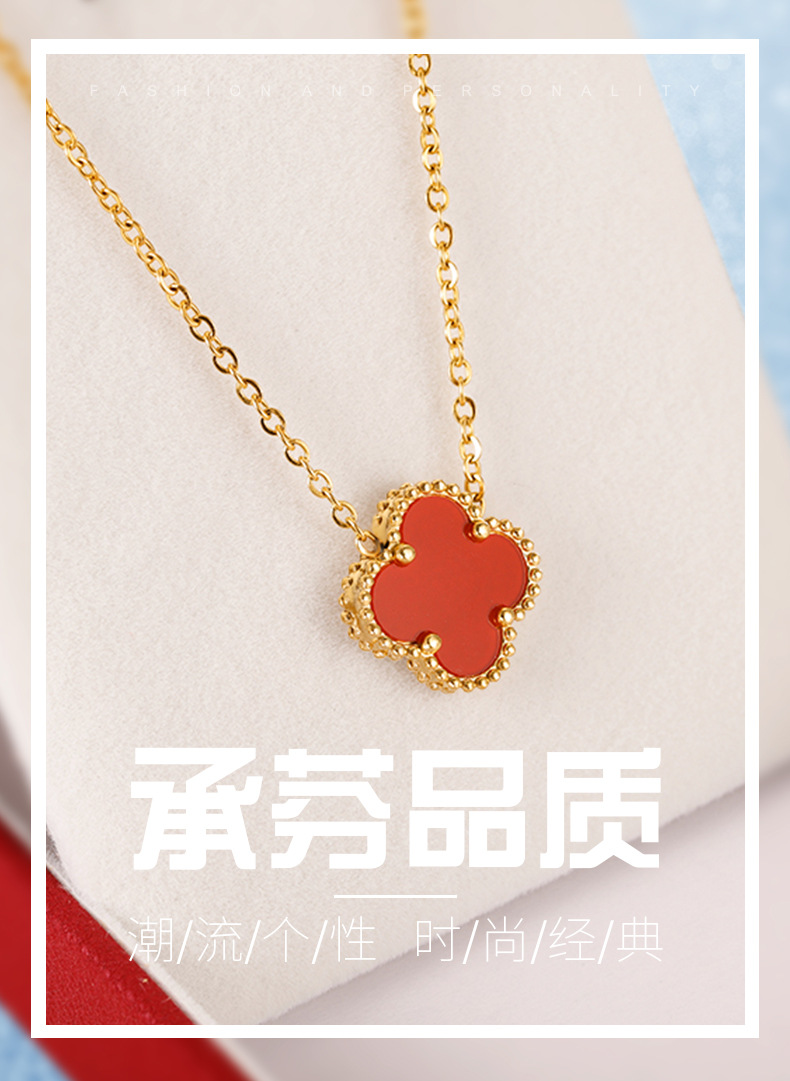 抖音爆款18K金四叶草不锈钢手链小众轻奢幸运草网红项链钛钢手饰
