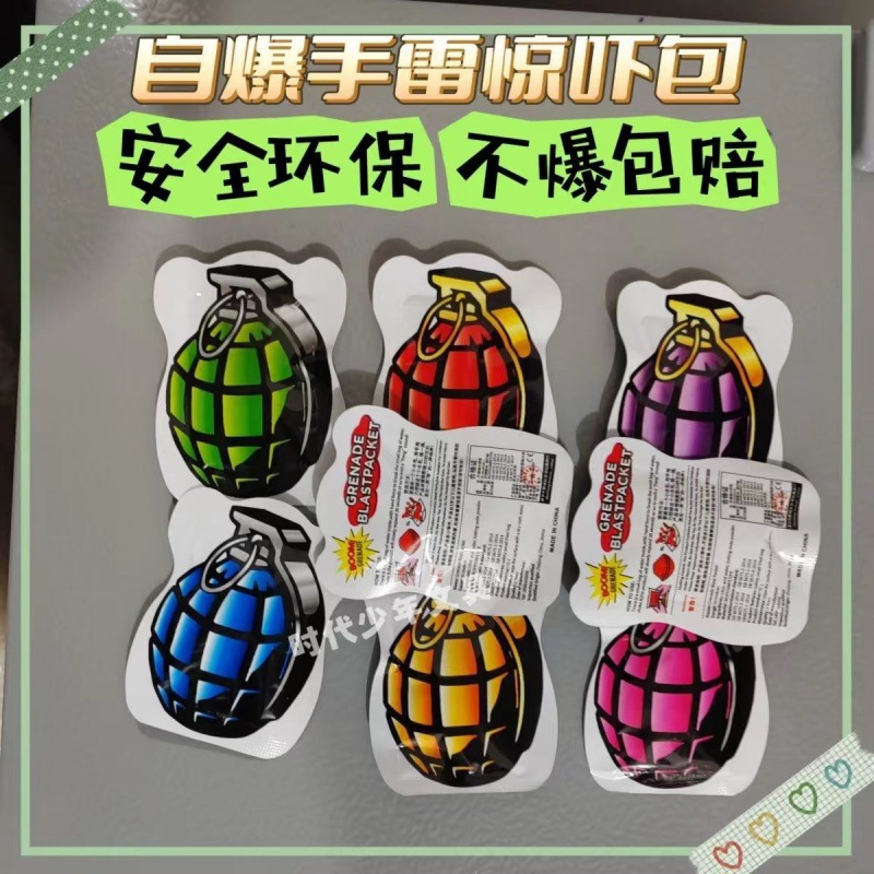 抖音同款自爆手雷整蛊朋友搞笑仿真惊吓包自动充气小彩雷儿童玩具