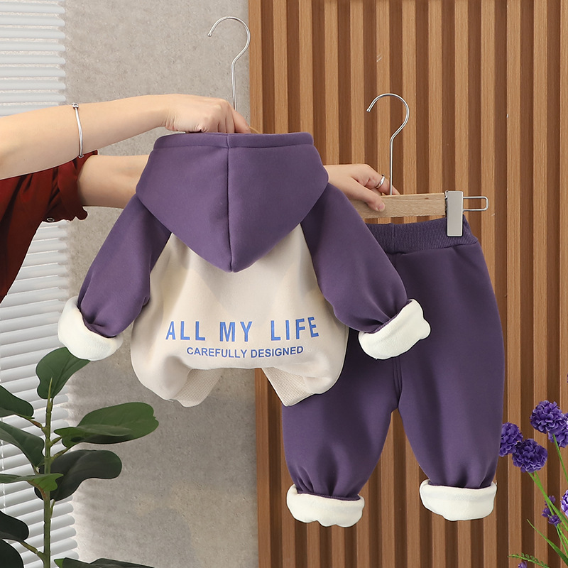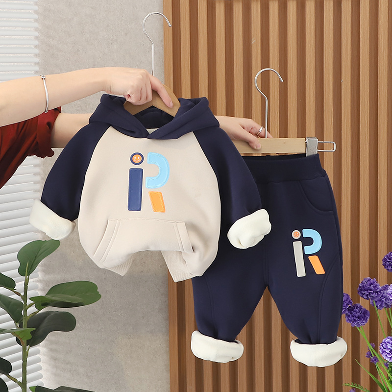 童装宝宝加绒加厚套装秋冬季男童冬装运动两件套洋气婴儿小童衣服
