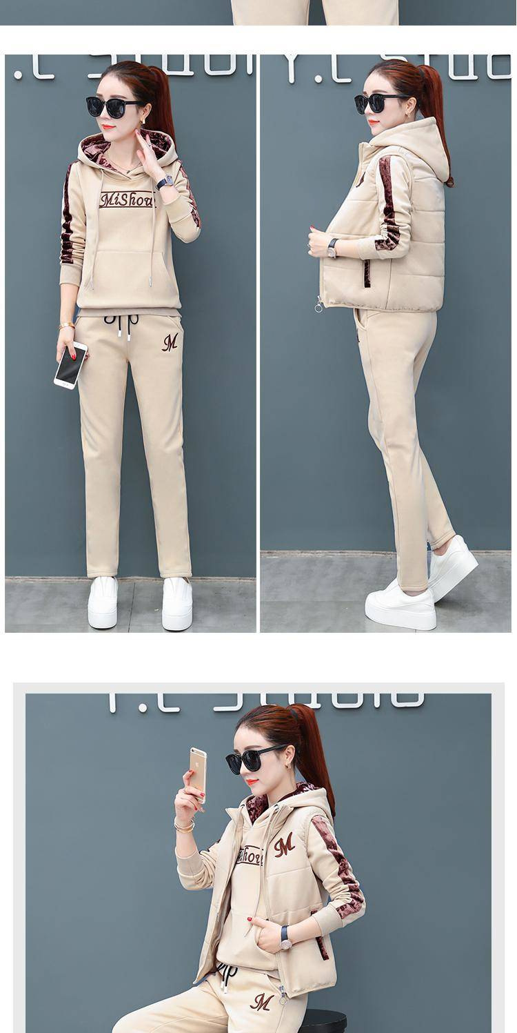 加绒加厚运动服女秋冬季女装新款韩版保暖时尚套装连帽卫衣三件套