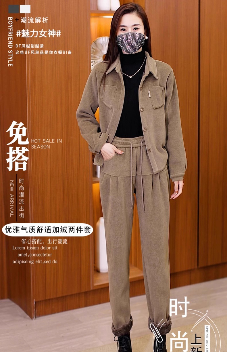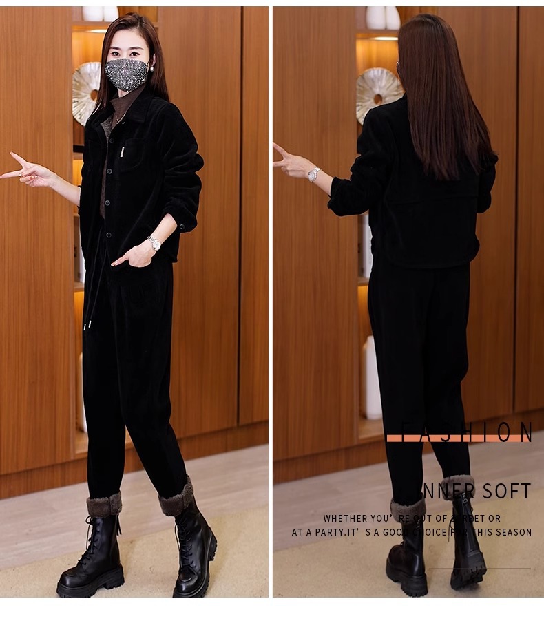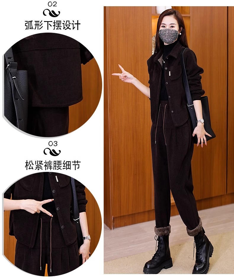 今年流行爆款灯芯绒套装2023冬季新款加绒加厚高级感小洋装两件套