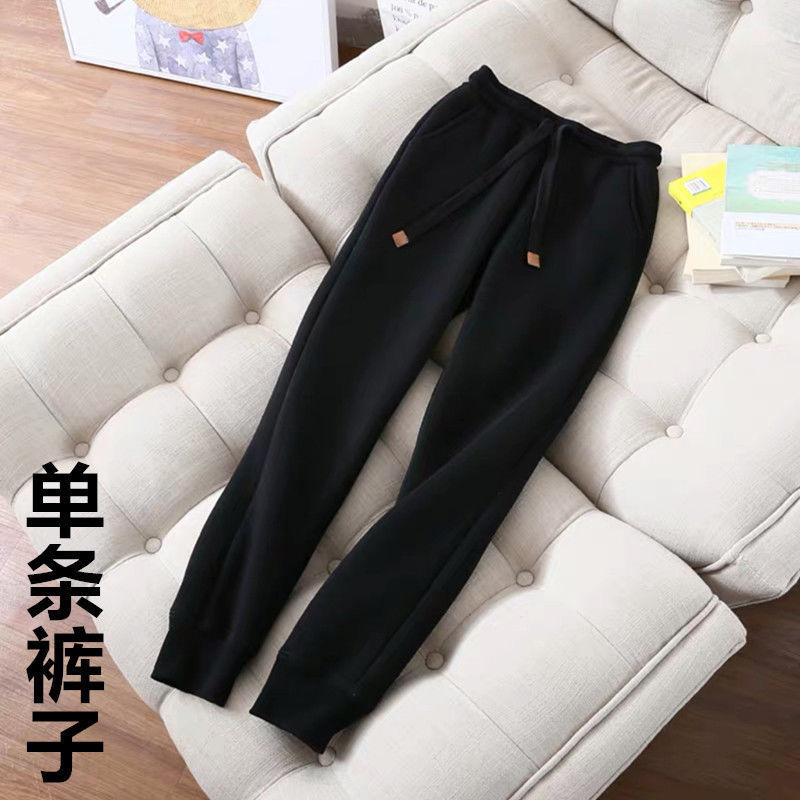 冬款加绒加厚简约纯色运动休闲套装女显瘦长袖连帽短外套运动裤潮