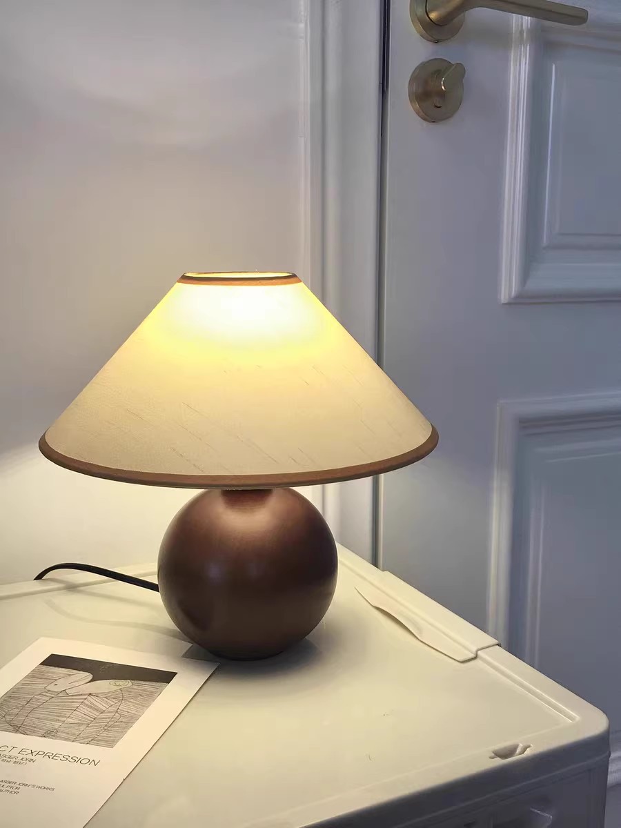 外贸专供中古风实木台灯韩国博主书房北欧侘寂风日式床头小台灯
