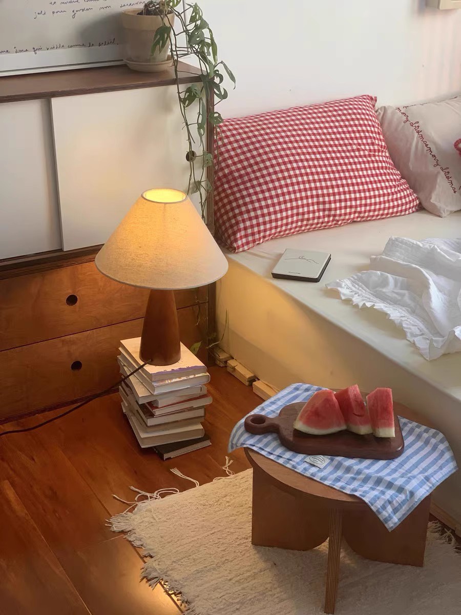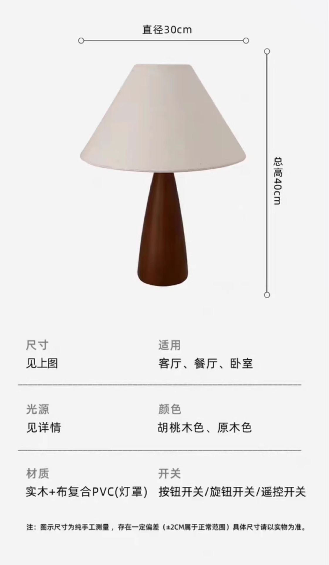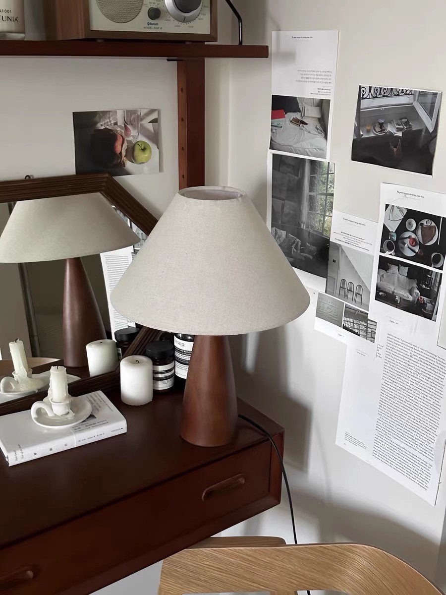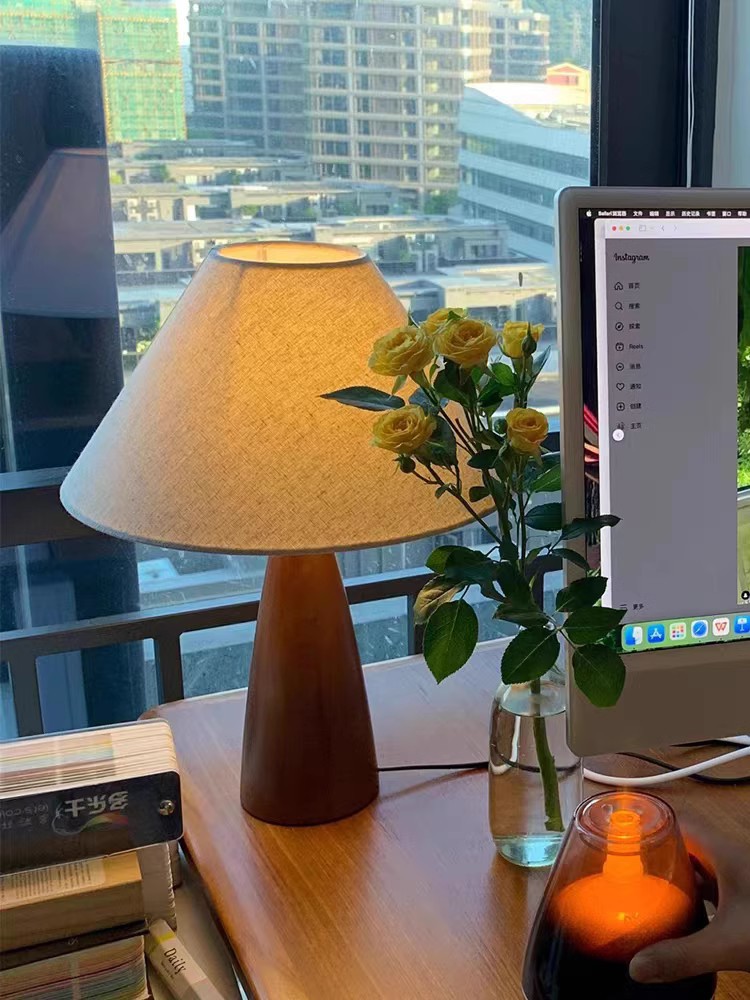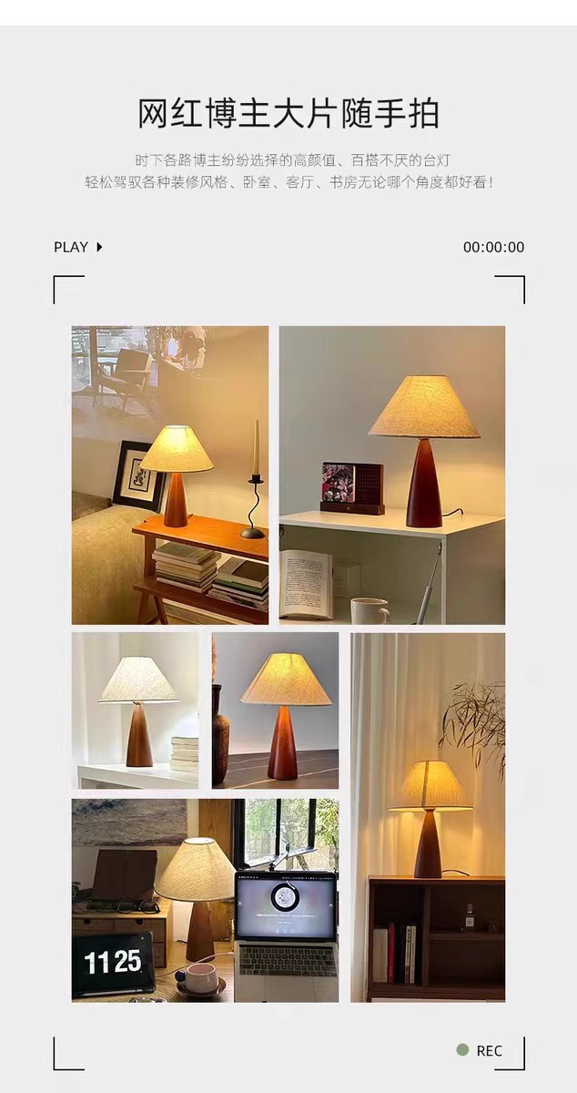 外贸专供美式中古风实木台灯韩式博主侘寂风质感新中式气氛床头灯