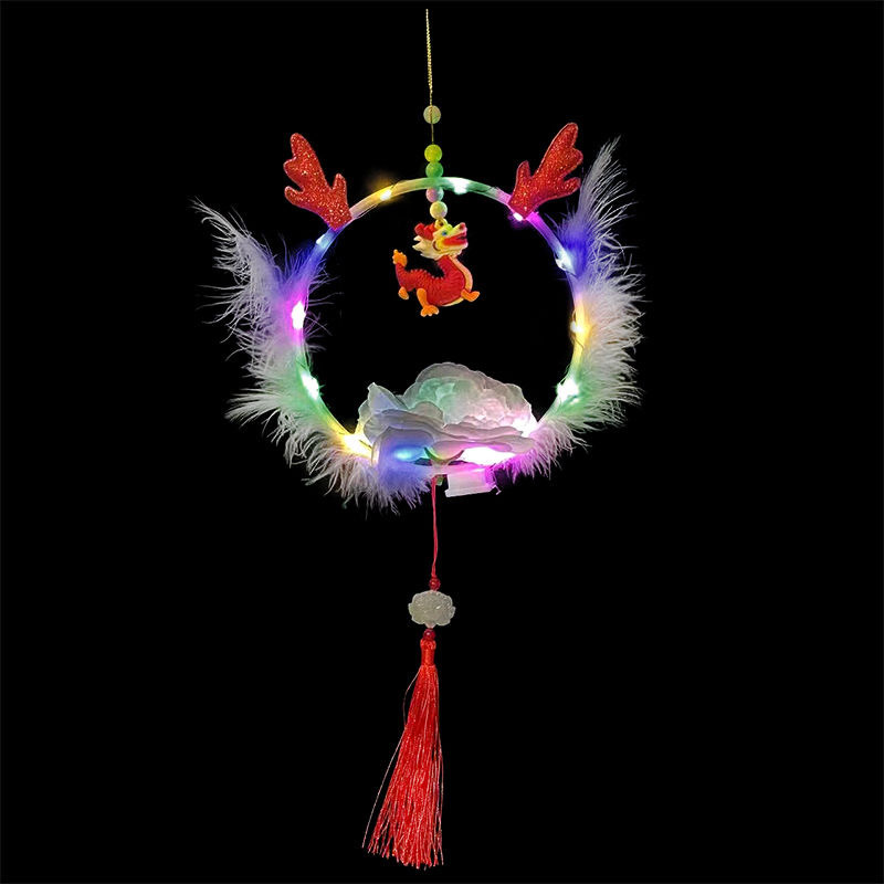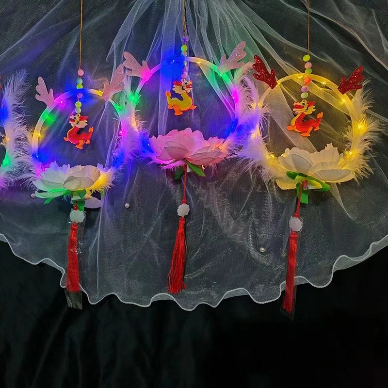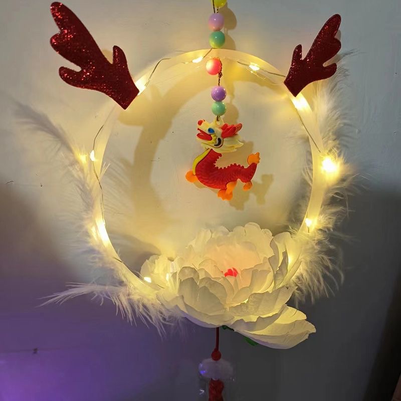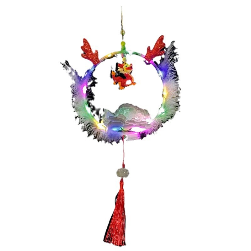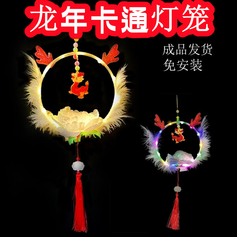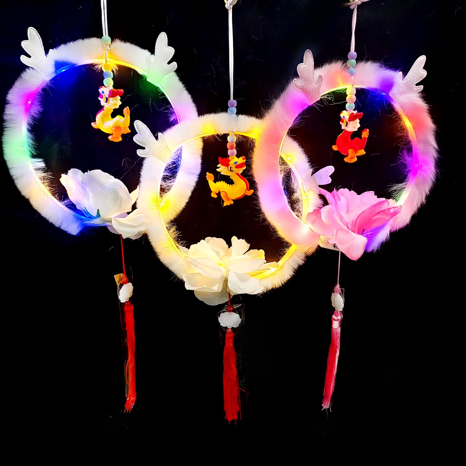 新年灯笼龙年花灯手提发光闪光玩具过年古风龙角灯笼发光玩具批发