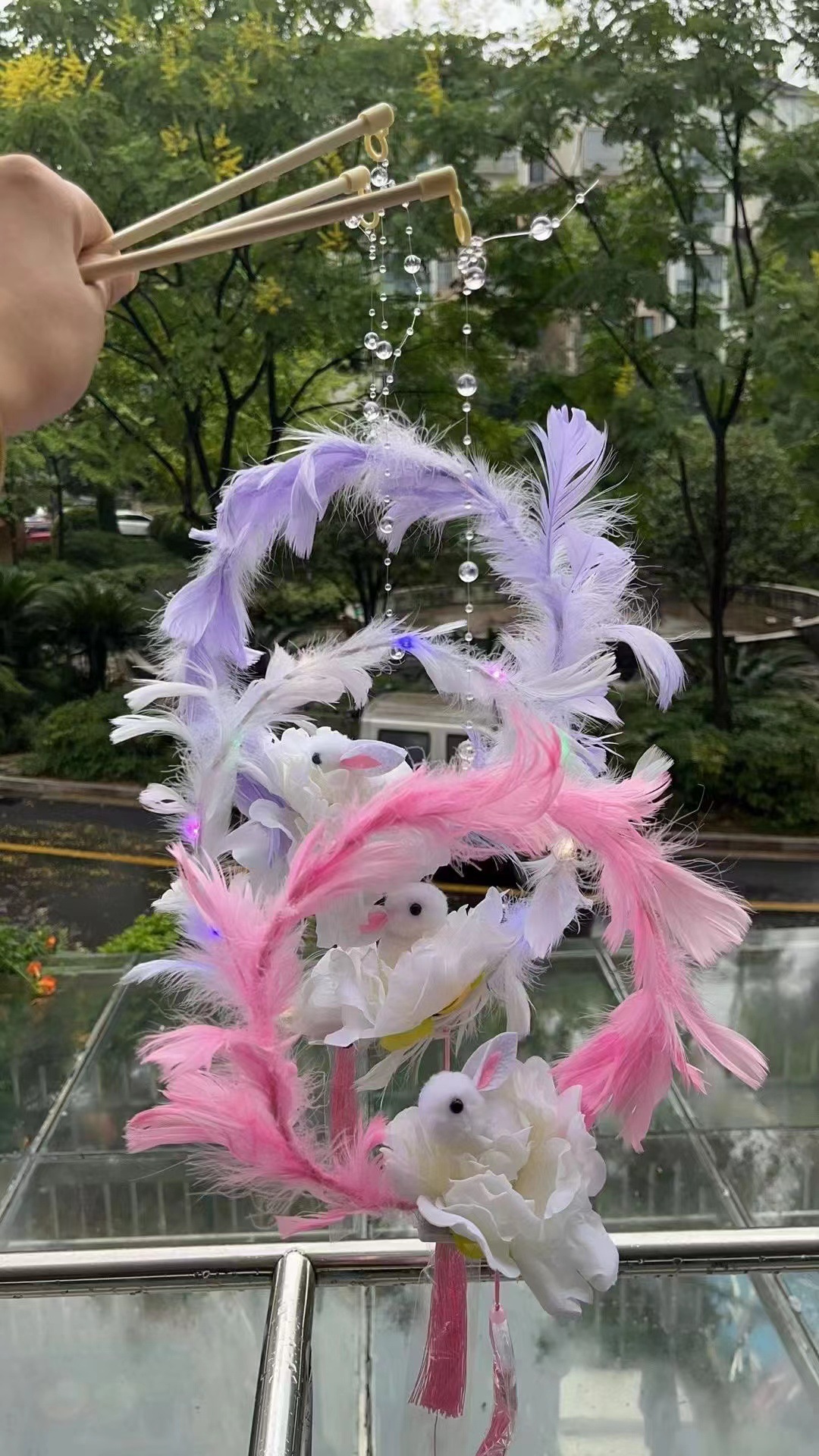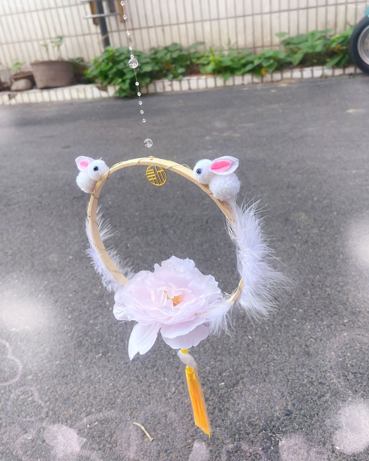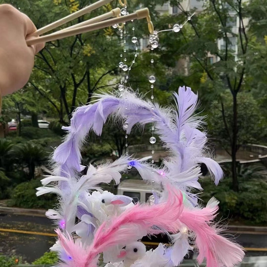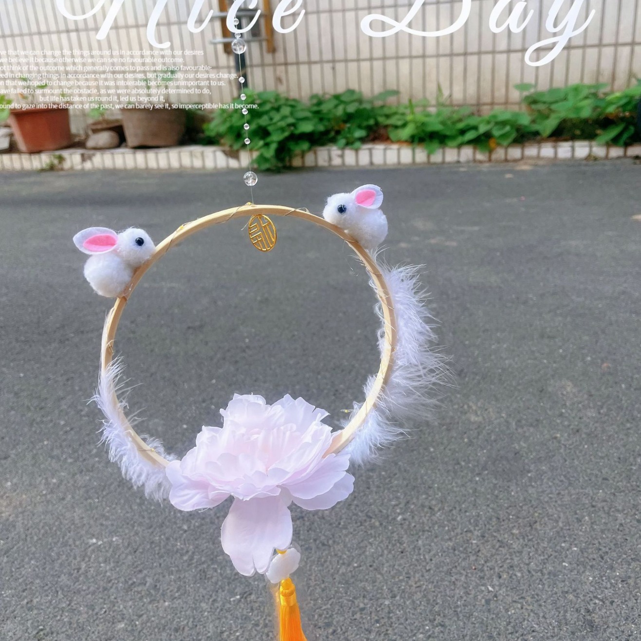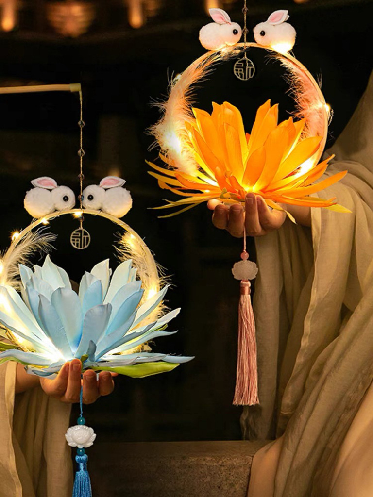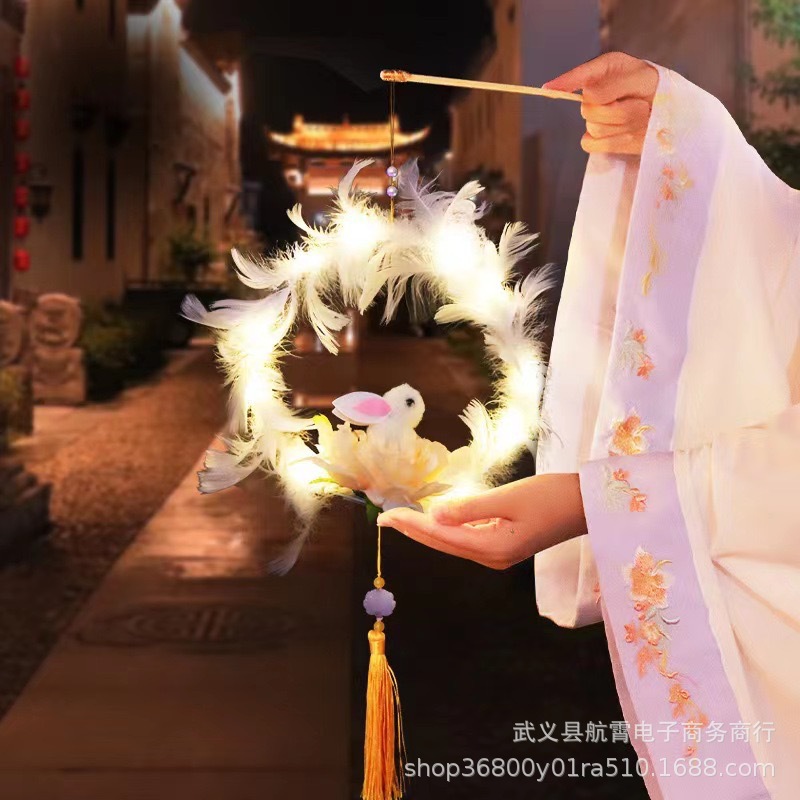 中秋节古风儿童昙花手提灯笼手工成品羽毛灯笼中式发光玉兔荷花摆