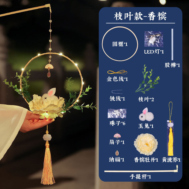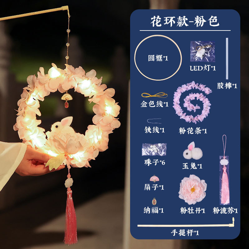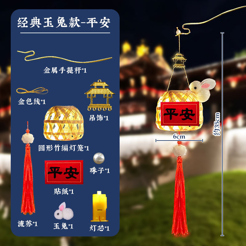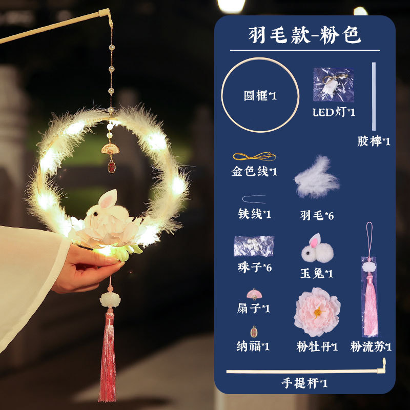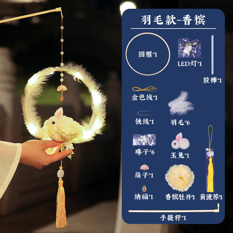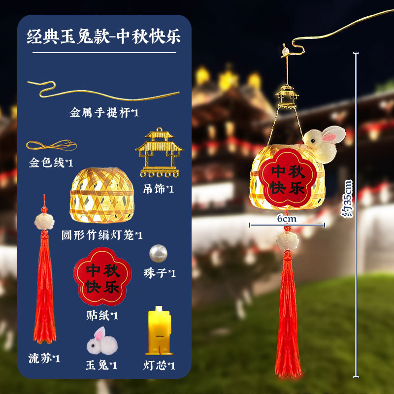 中秋元宵节灯笼儿童手提月玉兔子花灯手工制作diy材料汉服装挂饰