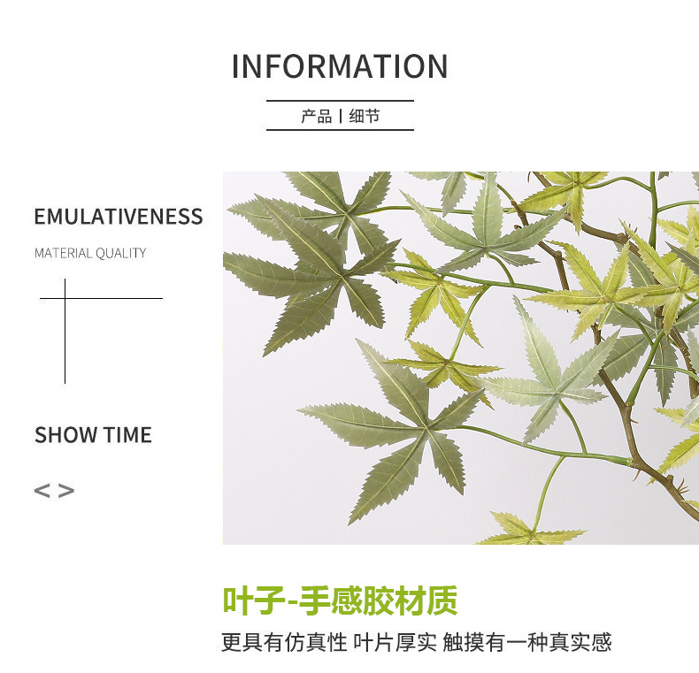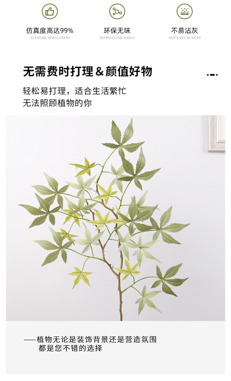 仿真绿植波斯枫叶客厅装饰 树枝树叶家居软装 红枫叶花艺插花摆设