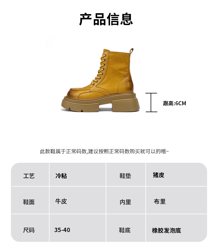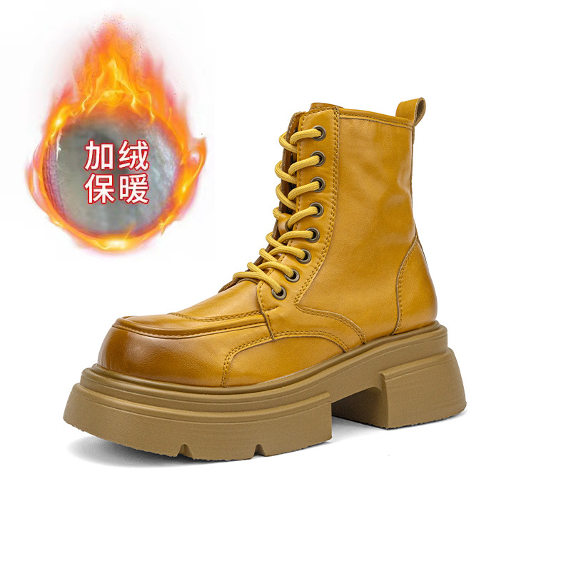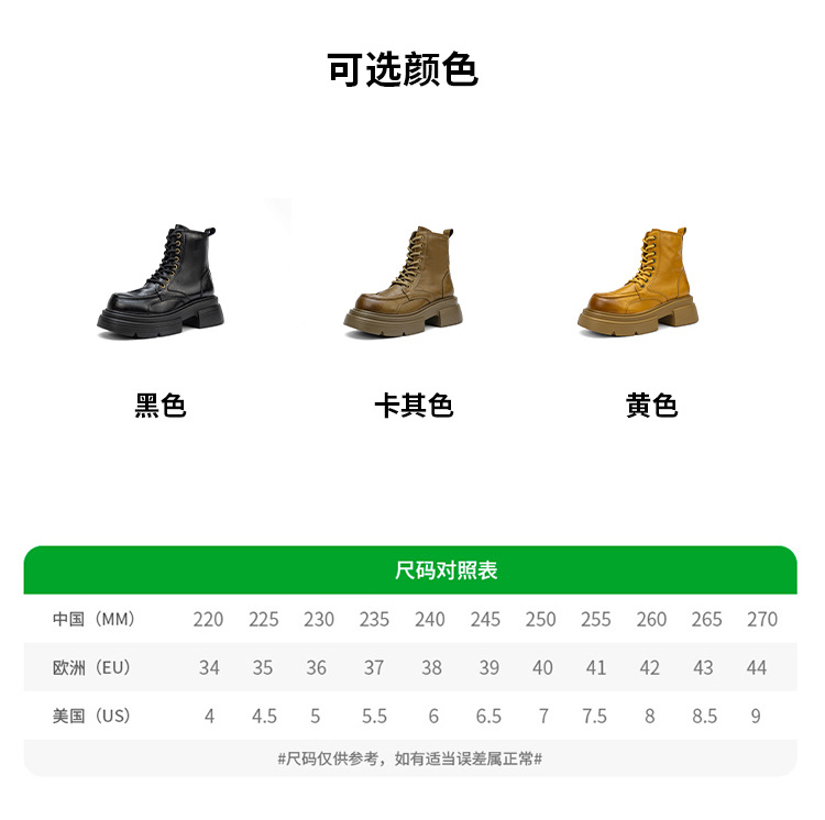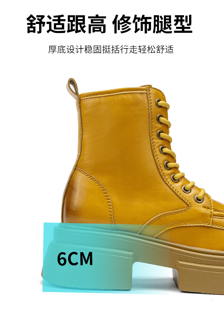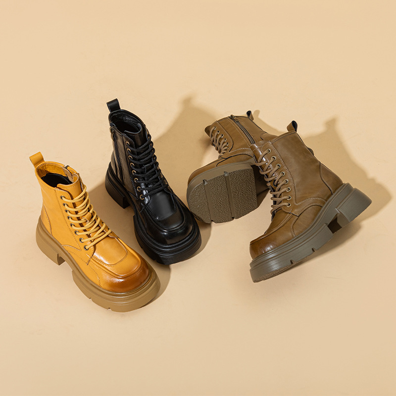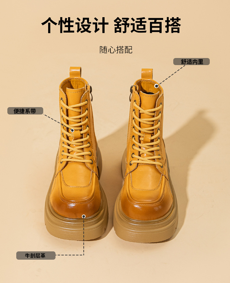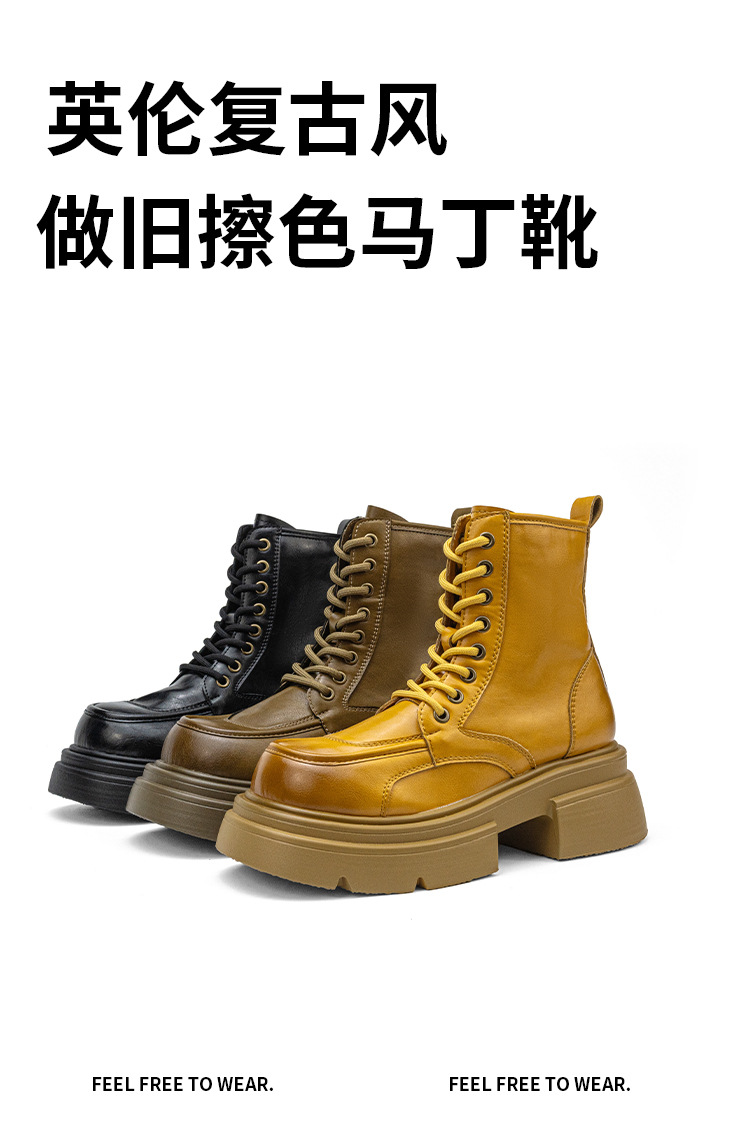 网红爆款厚底马丁靴女新款英伦风真皮擦色短靴休闲复古大黄靴秋
