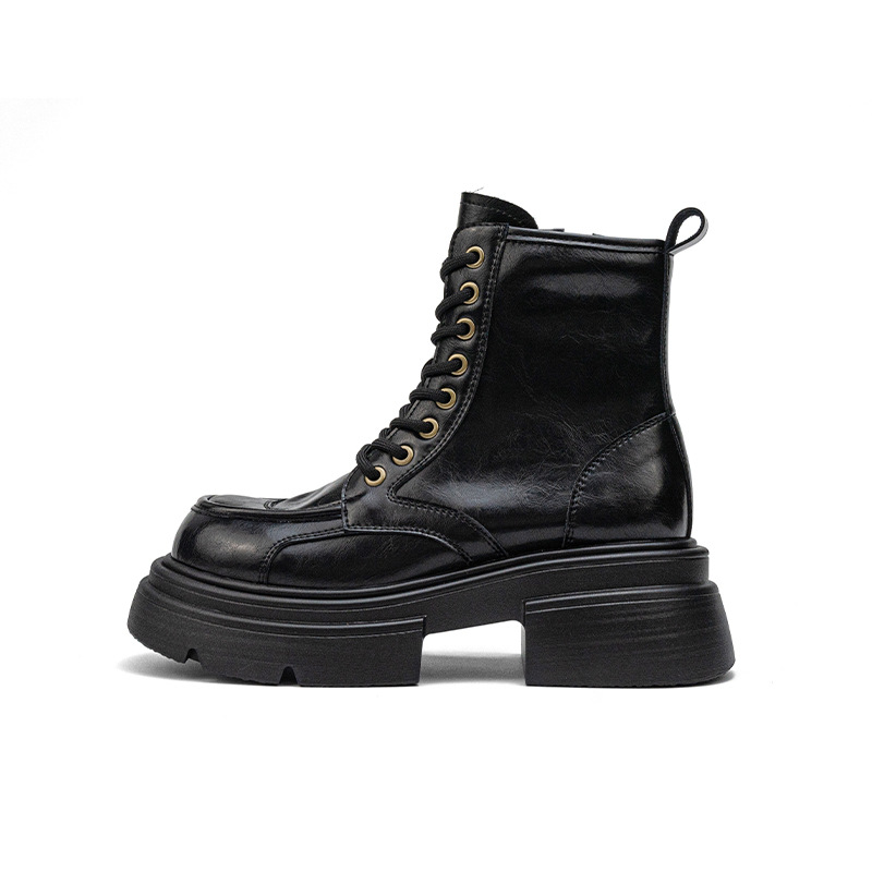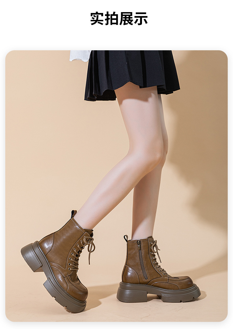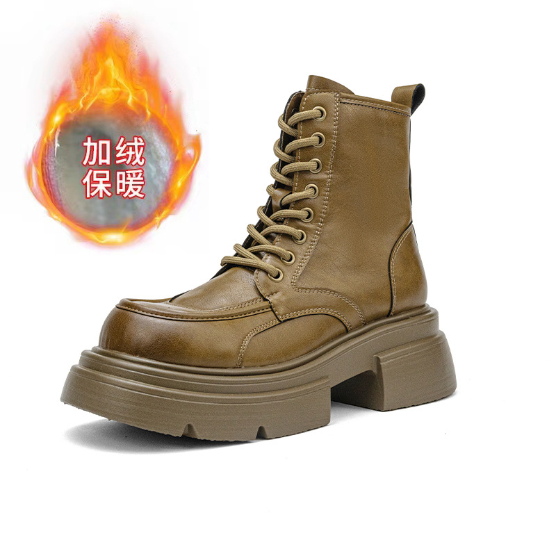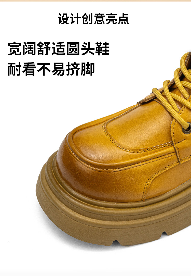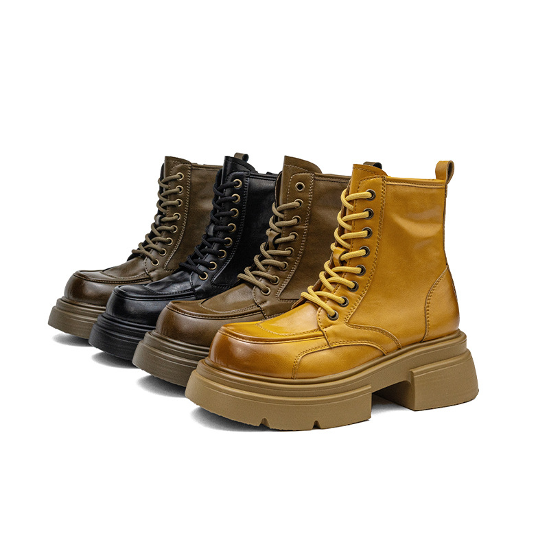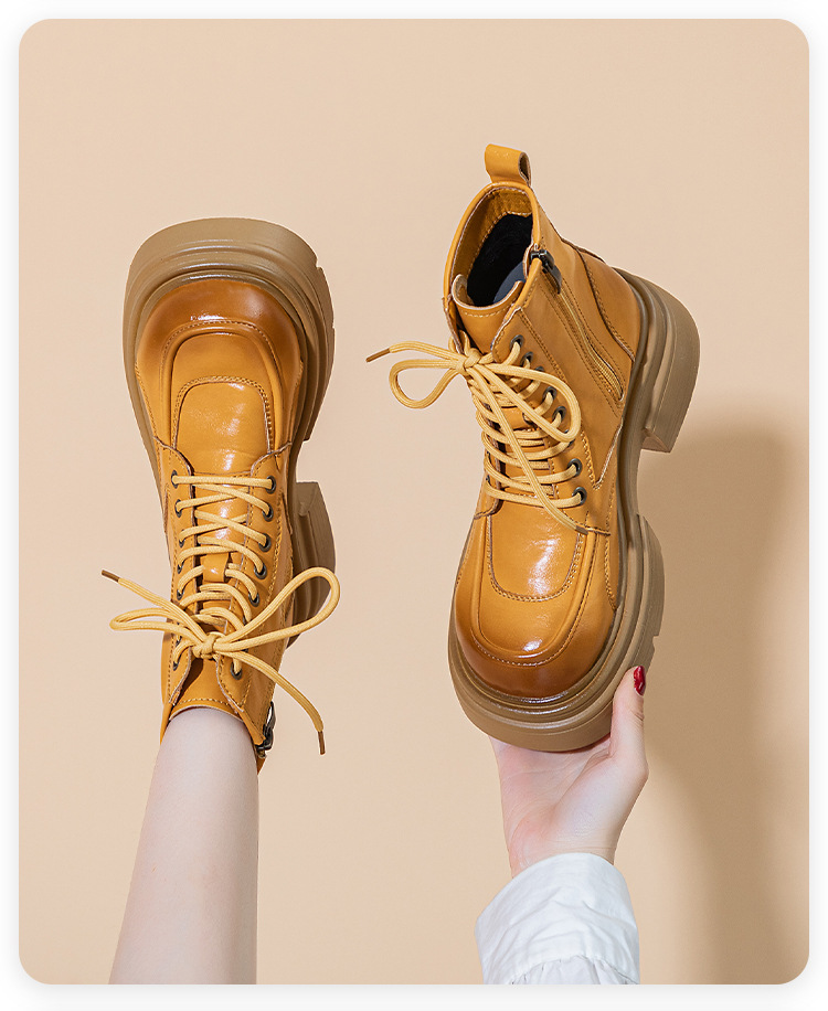 网红爆款厚底马丁靴女新款英伦风真皮擦色短靴休闲复古大黄靴秋