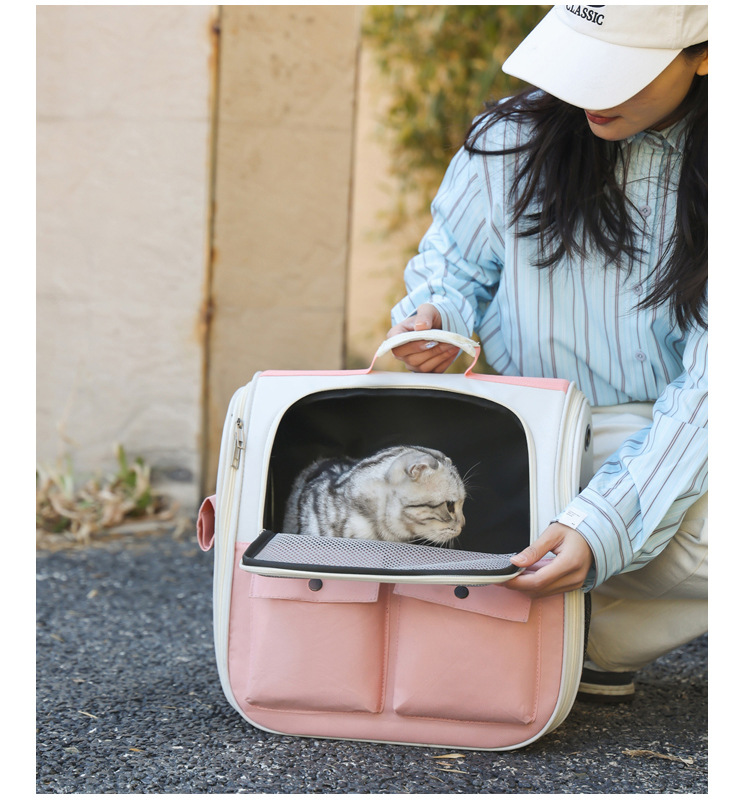 跨境热销猫包 时尚透气方形猫背包代发 可折叠外出便携宠物包批发