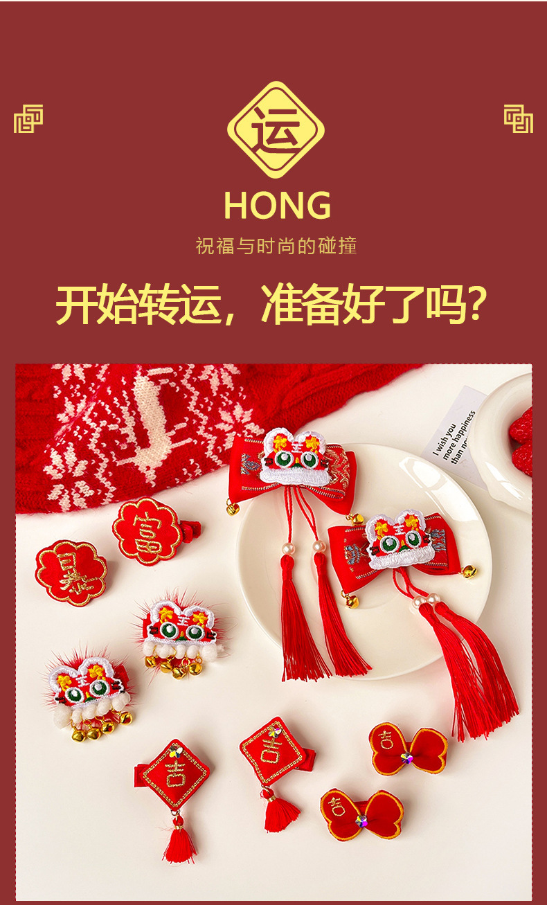 新年发饰可爱儿童发夹全包边不伤发边夹碎发夹中国风拜年头饰配饰