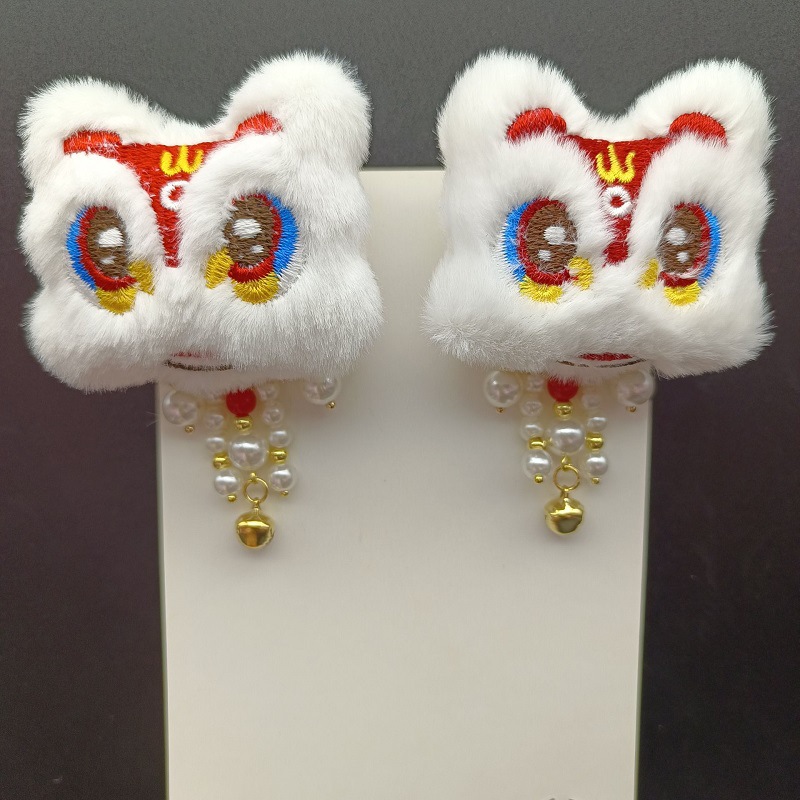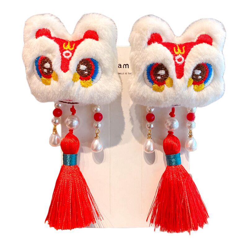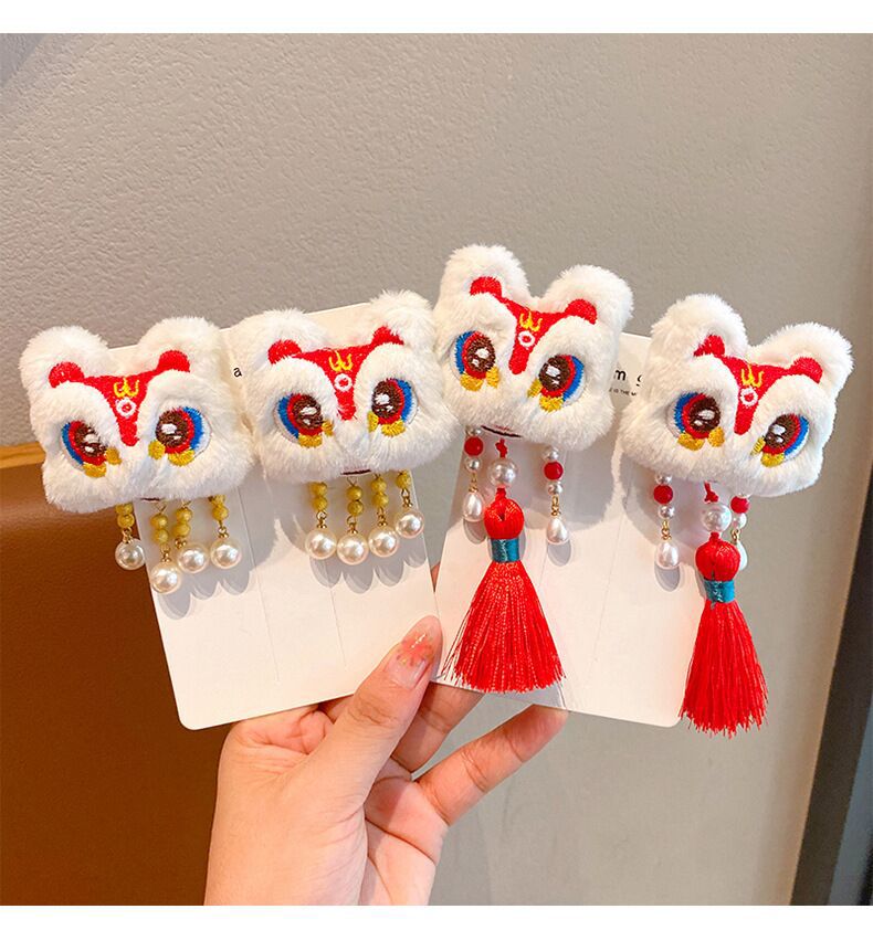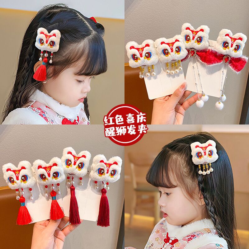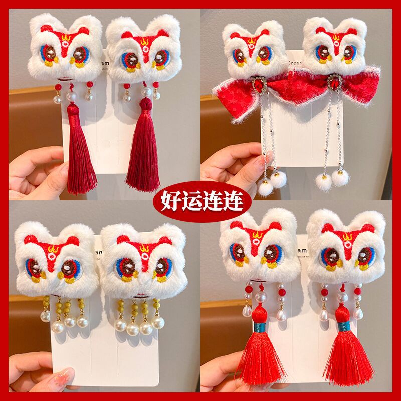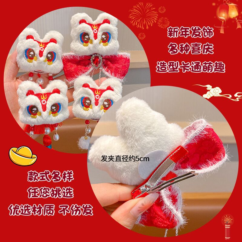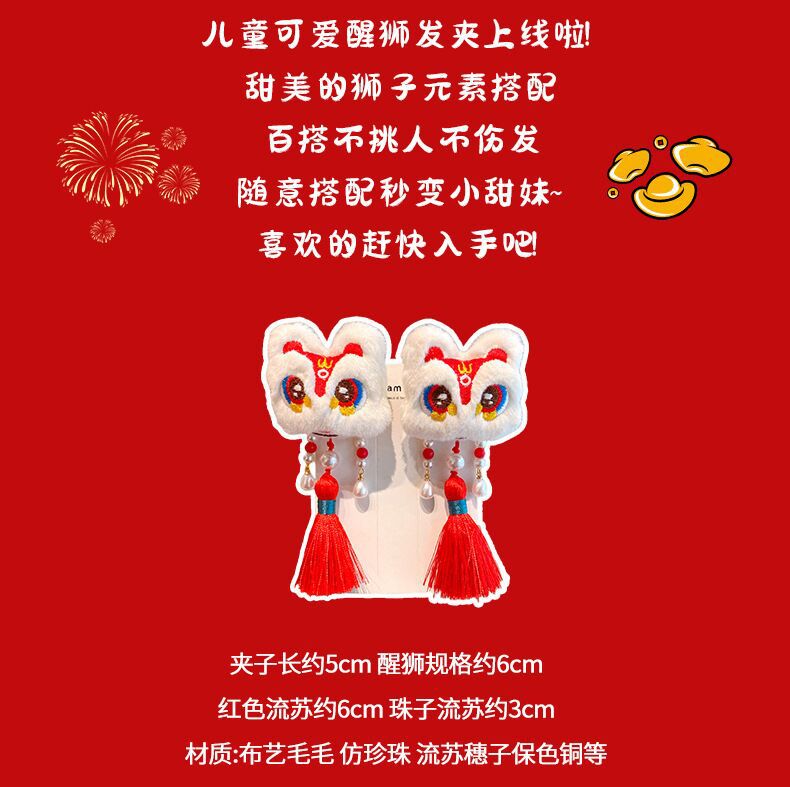 可爱发夹边夹侧边夹子醒狮国风气质汉服头饰儿童发饰布艺新年配饰