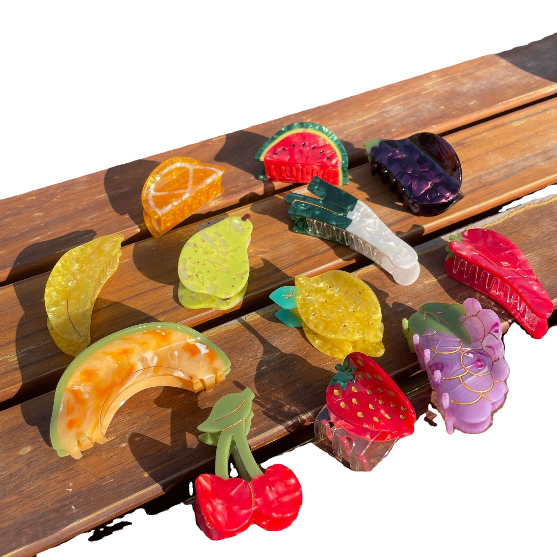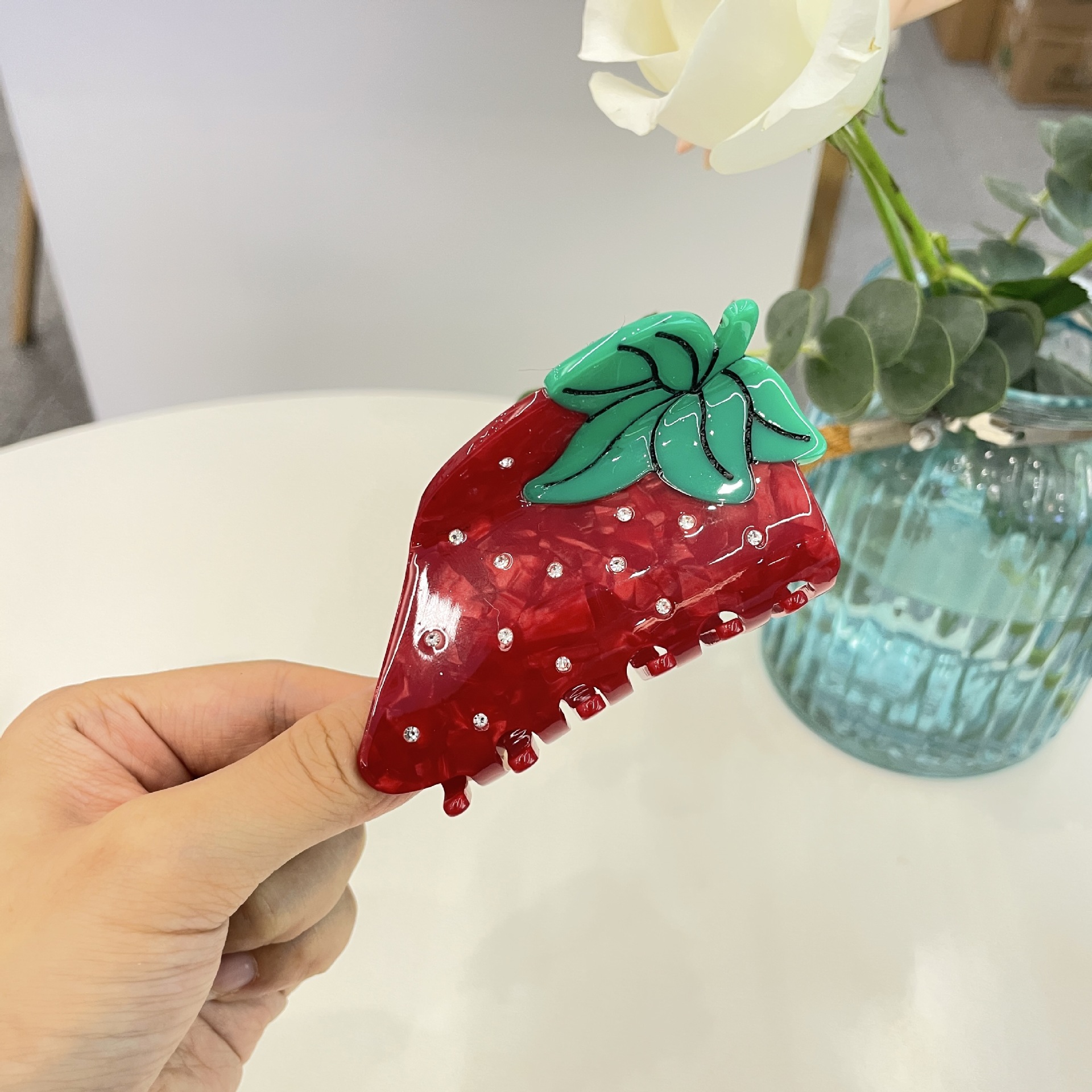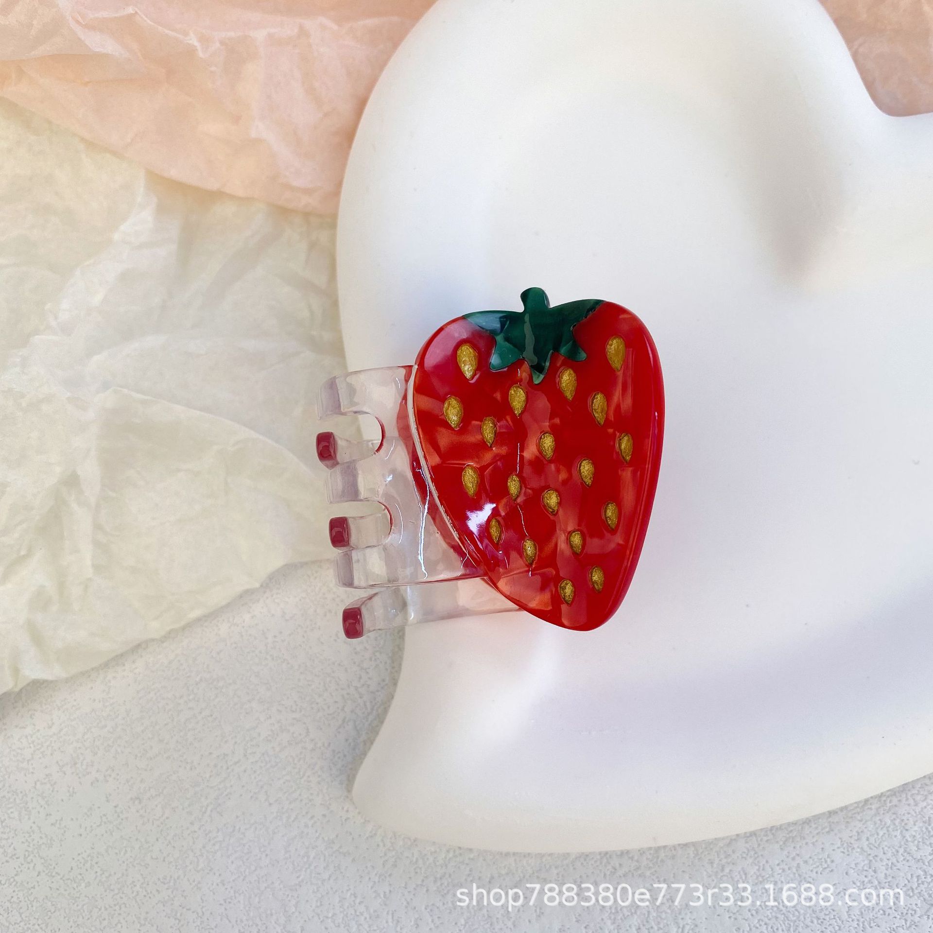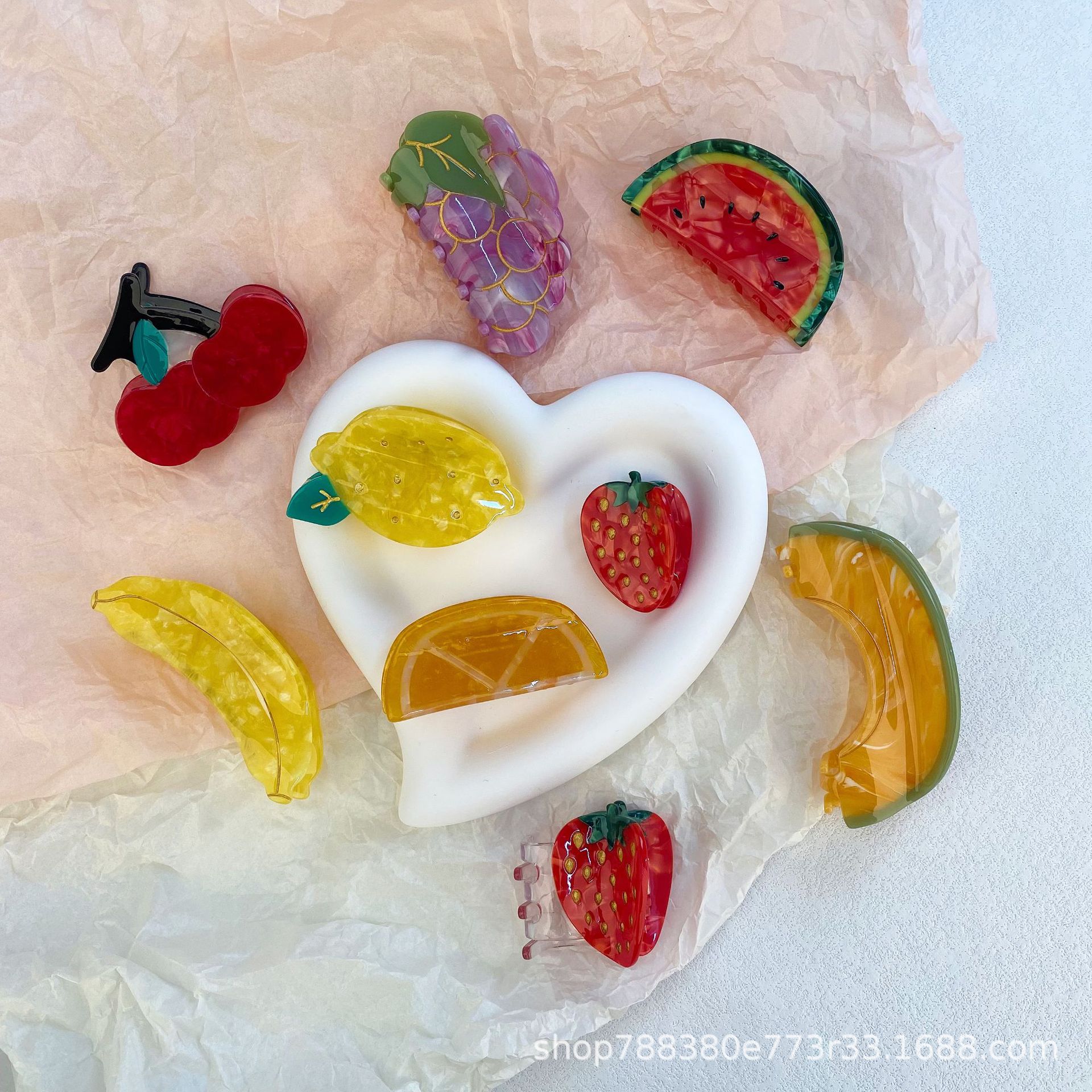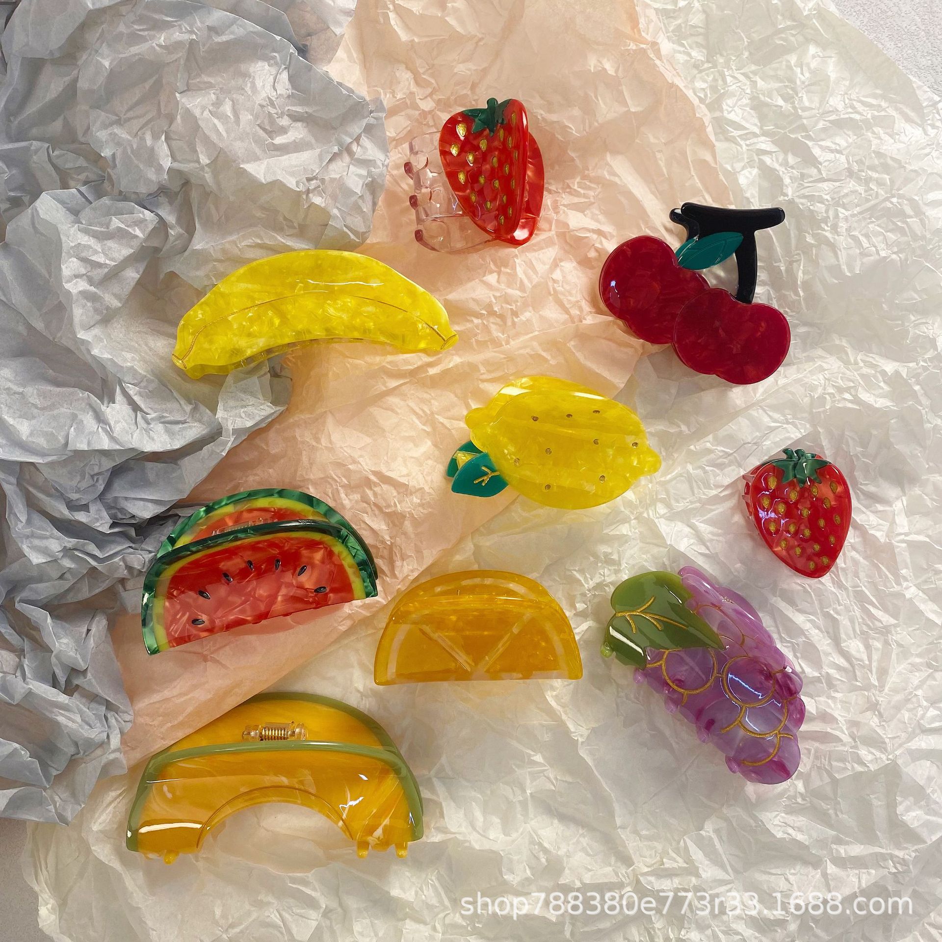 韩版ins风夏季水果草莓食物抓夹中号鲨鱼夹简约发夹气质高马尾夹