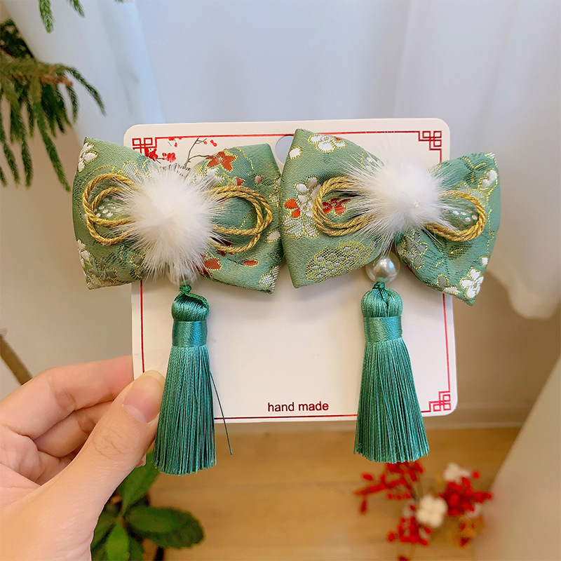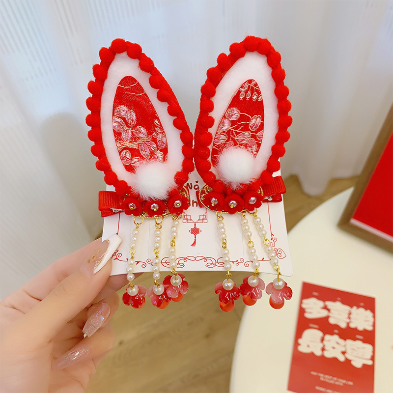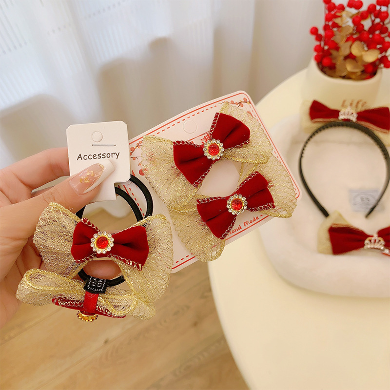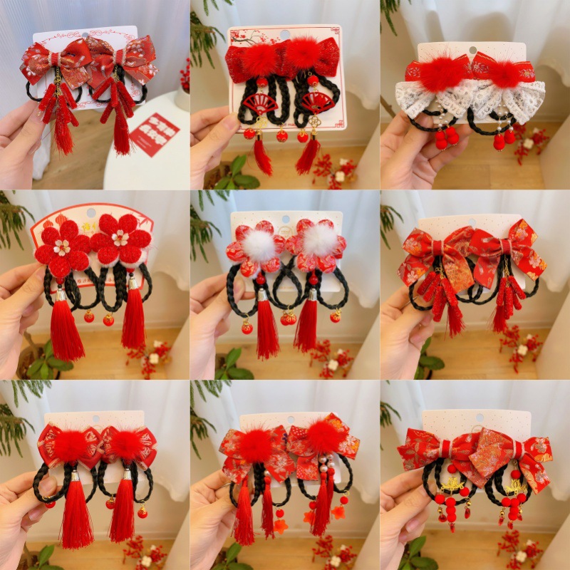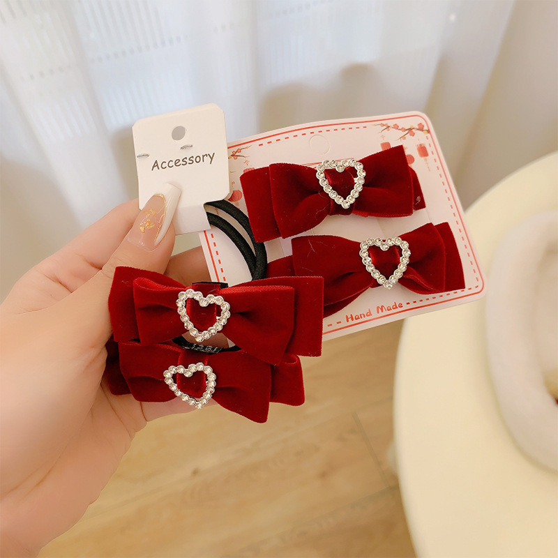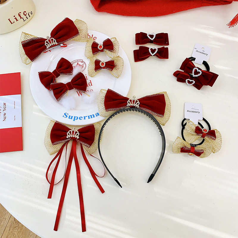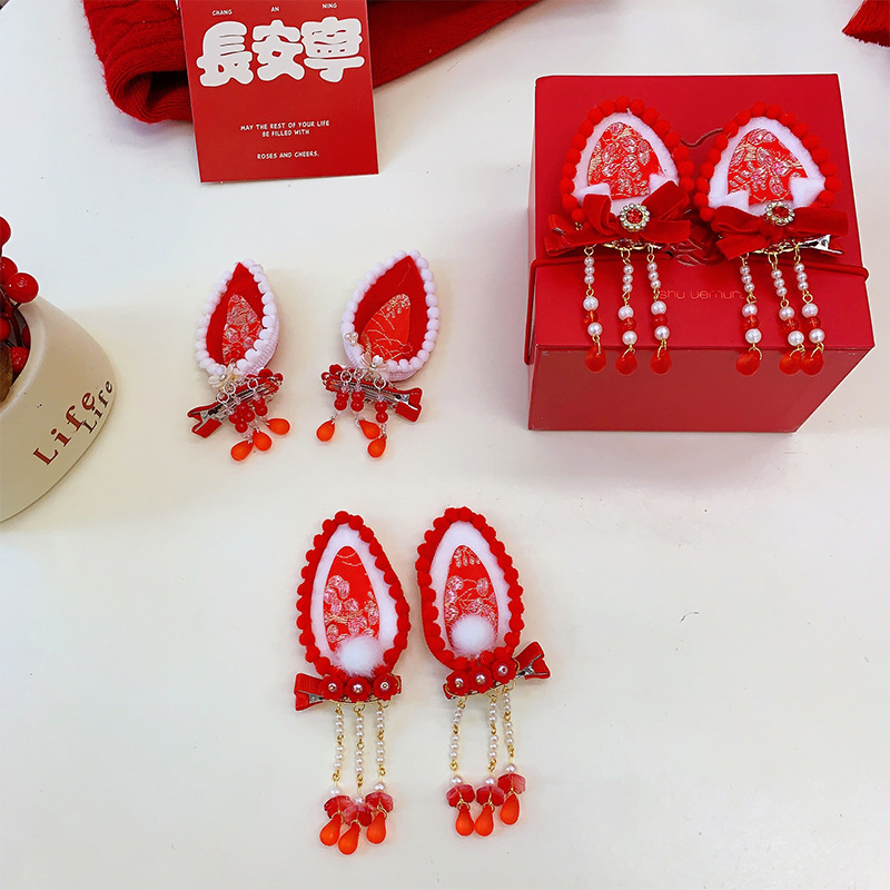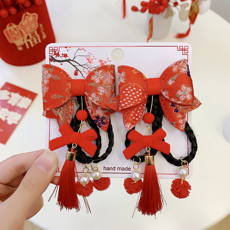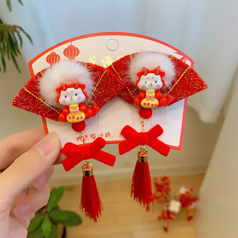 红色新年蝴蝶结发饰可爱儿童毛绒发夹新中式喜庆刘海对夹头饰批发