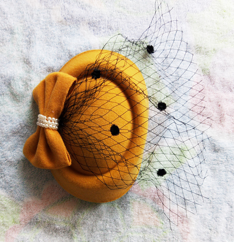 新娘头饰 韩版空姐礼帽发夹头饰 帽子发卡面纱 亚马逊蕾丝蝴蝶结