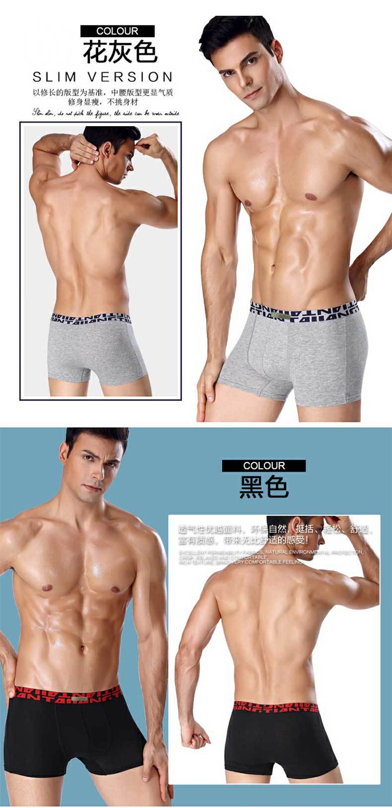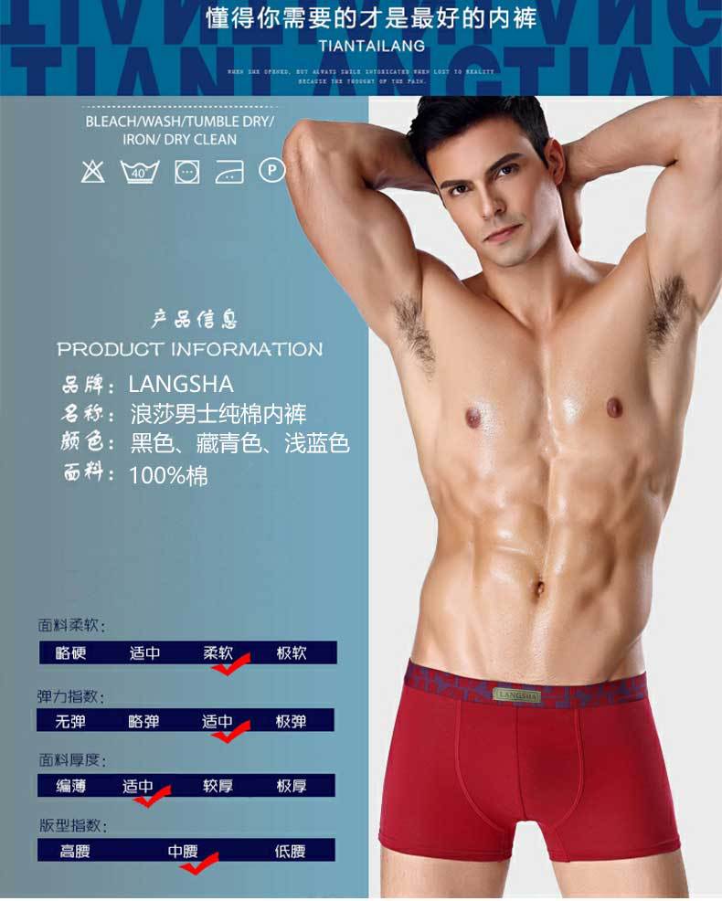 浪莎男士内裤纯棉平角裤纯色四角裤舒适透气【商超专供 2条/盒】